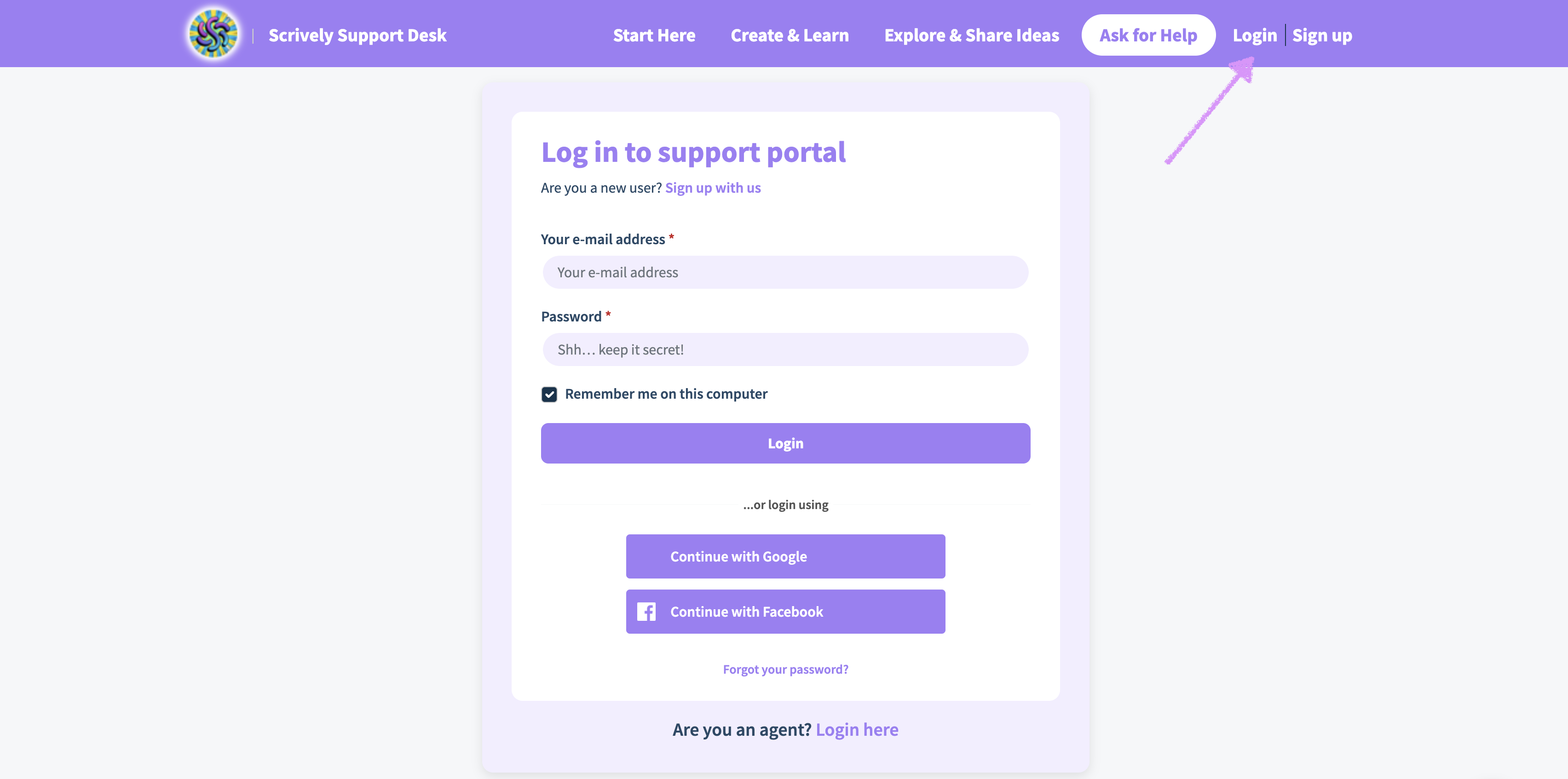 To keep your helpdesk profile current, log into your customer support account at support.scrively.com.