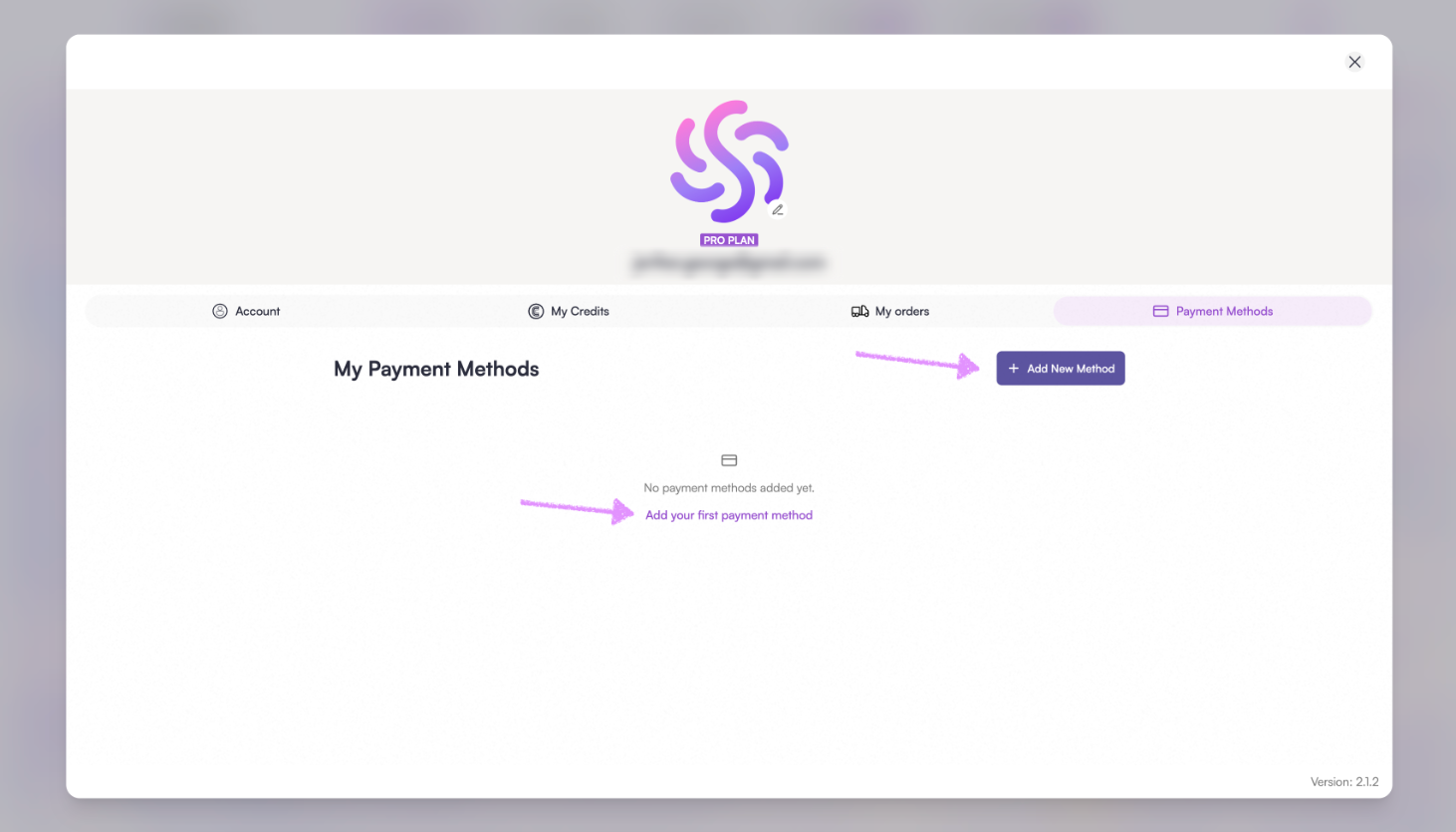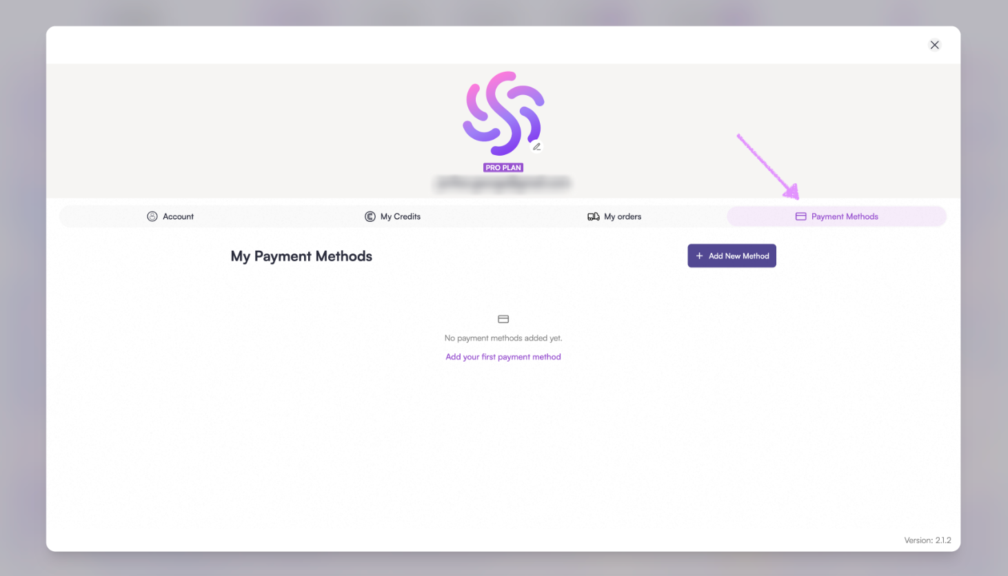 Click on "Add New Method" or "Add your first payment method."