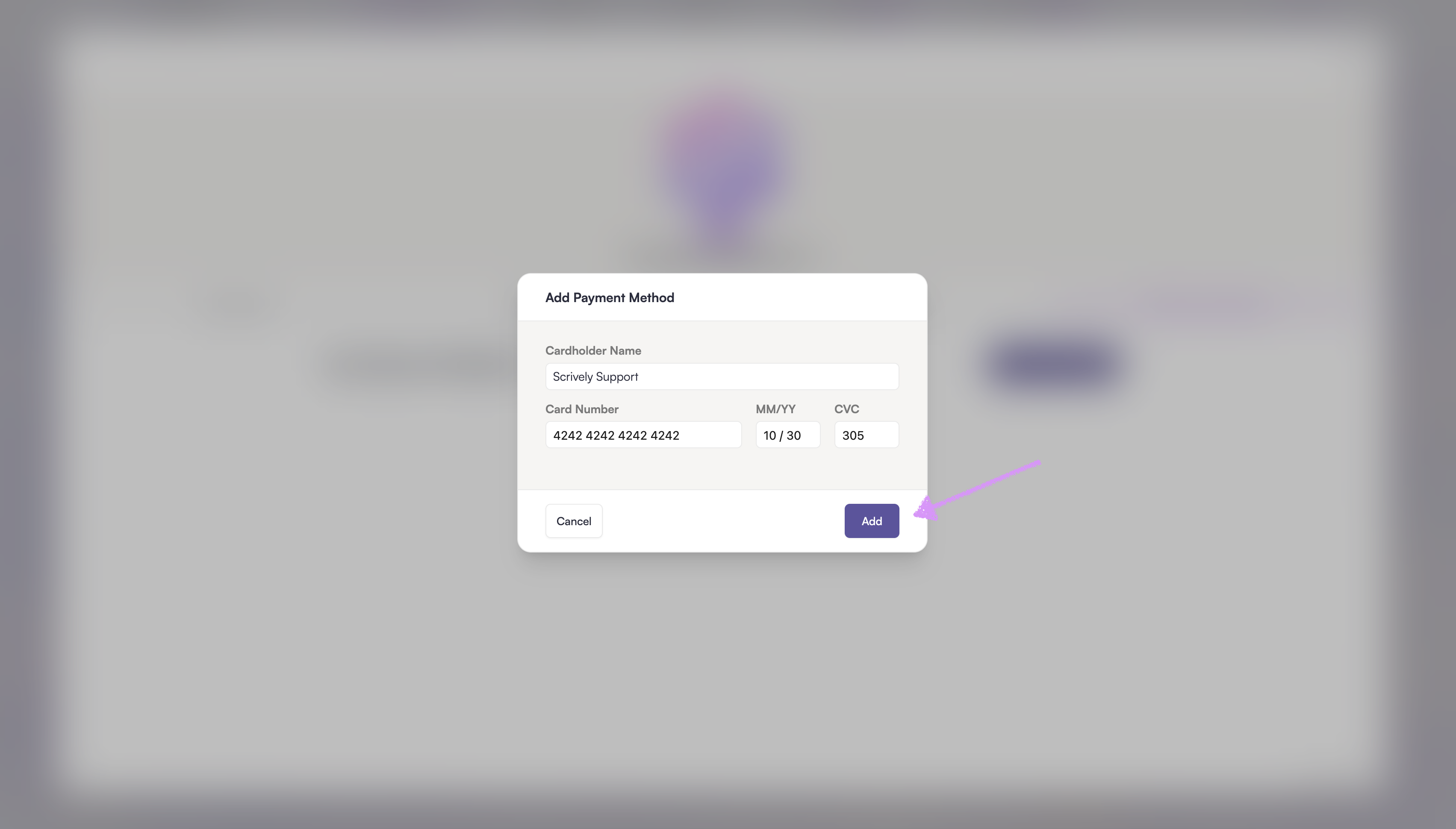 Your payment method will be added to your account. Hover over the card details to view available options, including “Set as default.” You can add multiple payment methods.