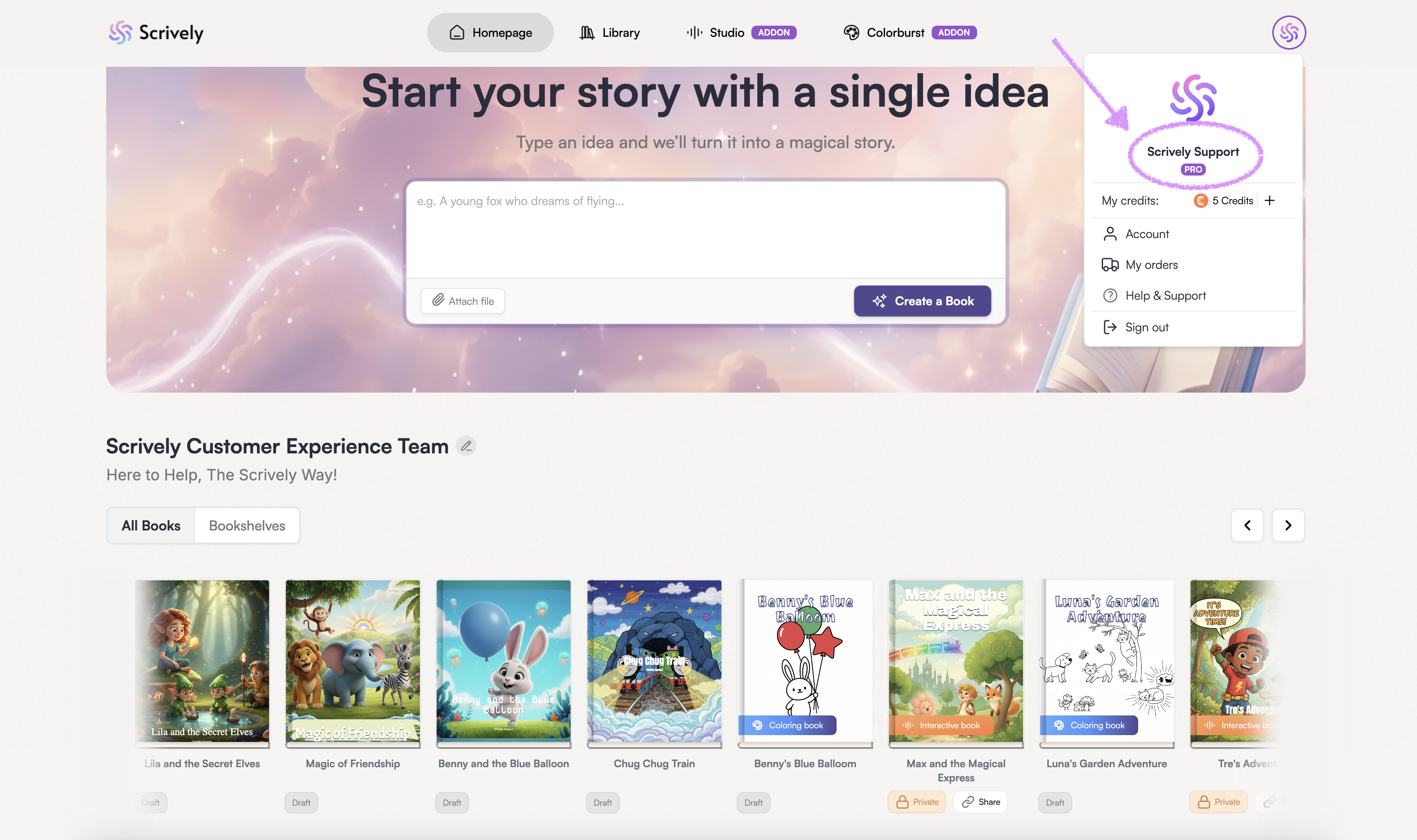 To view your plan details, click your avatar in the top-right corner of the Scrively Homepage.
