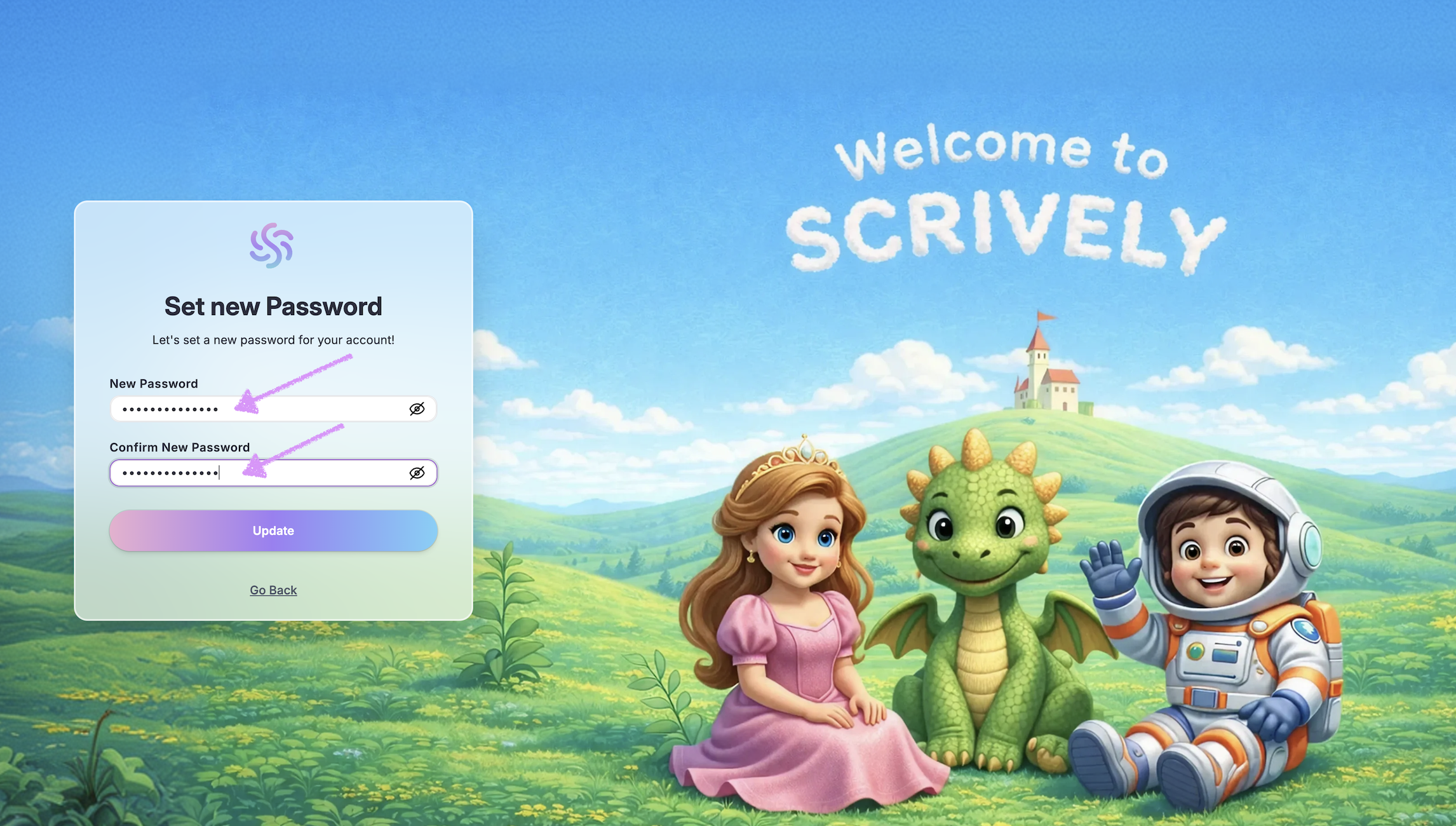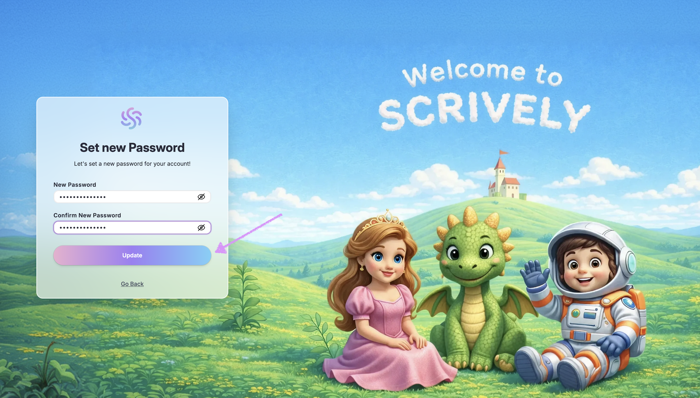 Click on "Update." You’ll be redirected to the login page where you can sign in with your new password.