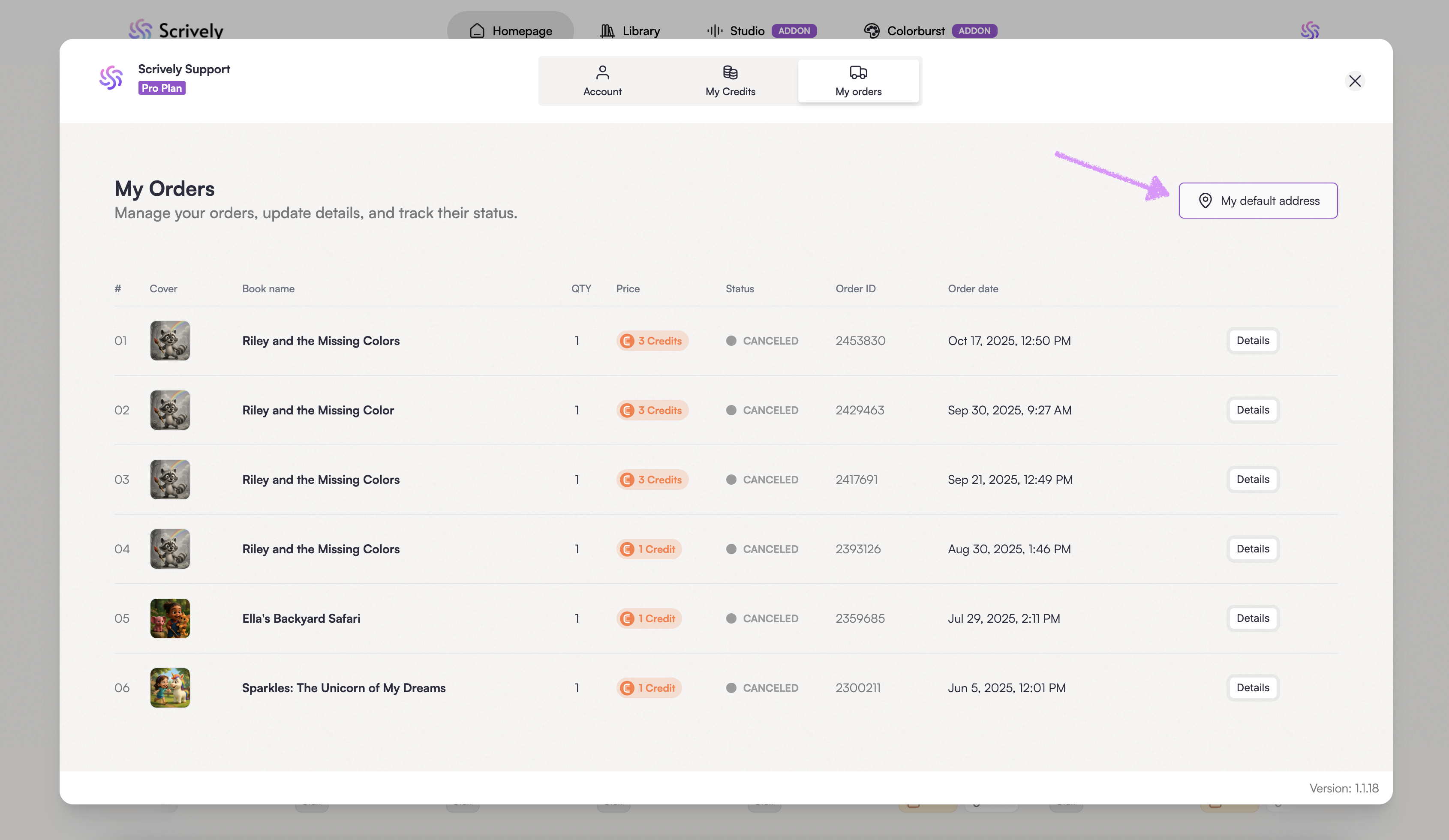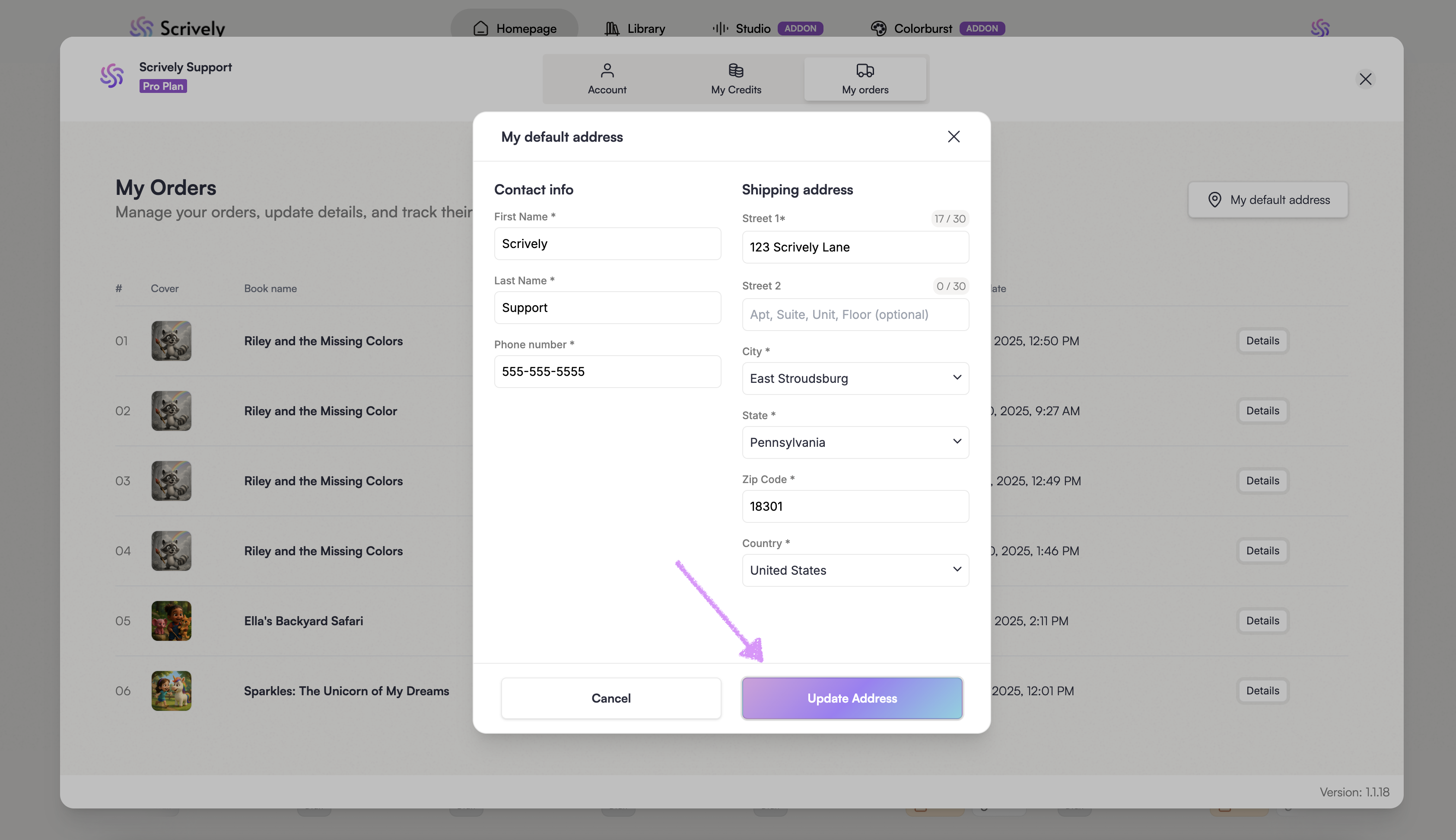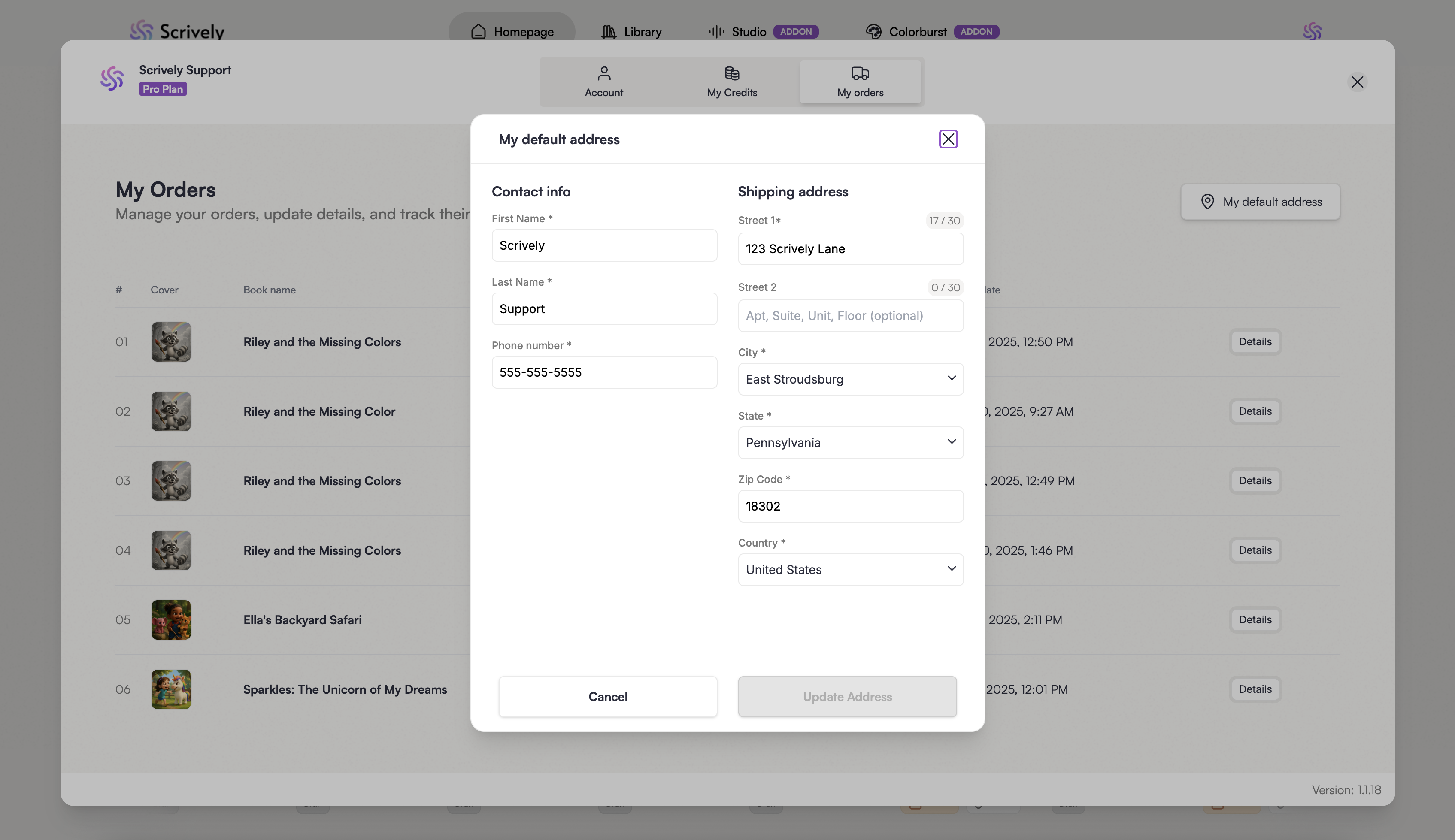 Setting a default address ensures that your Scrively account details are always accurate for your orders.