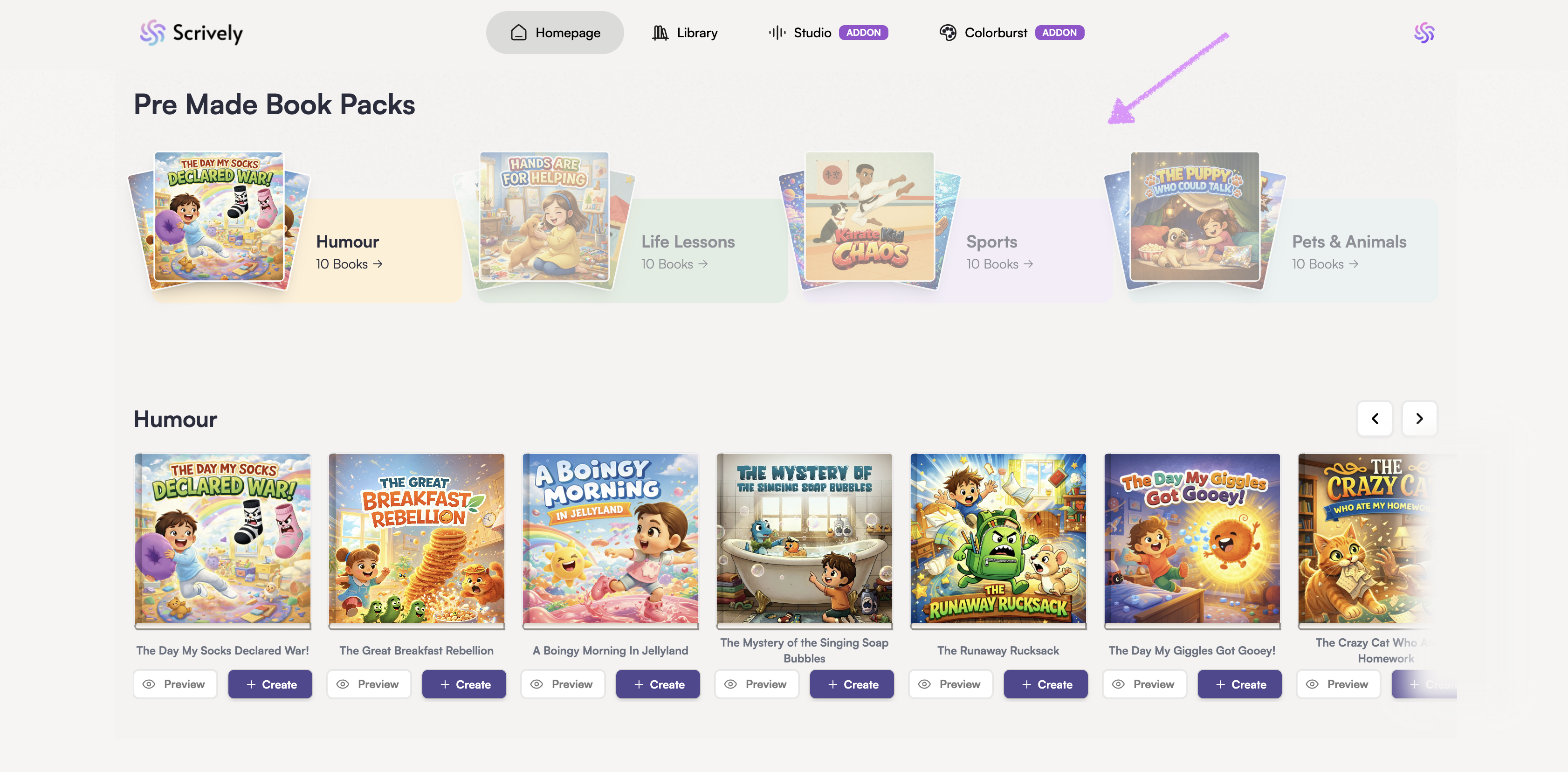 As you scroll down the homepage, you’ll see a list of available premade books that you can use.