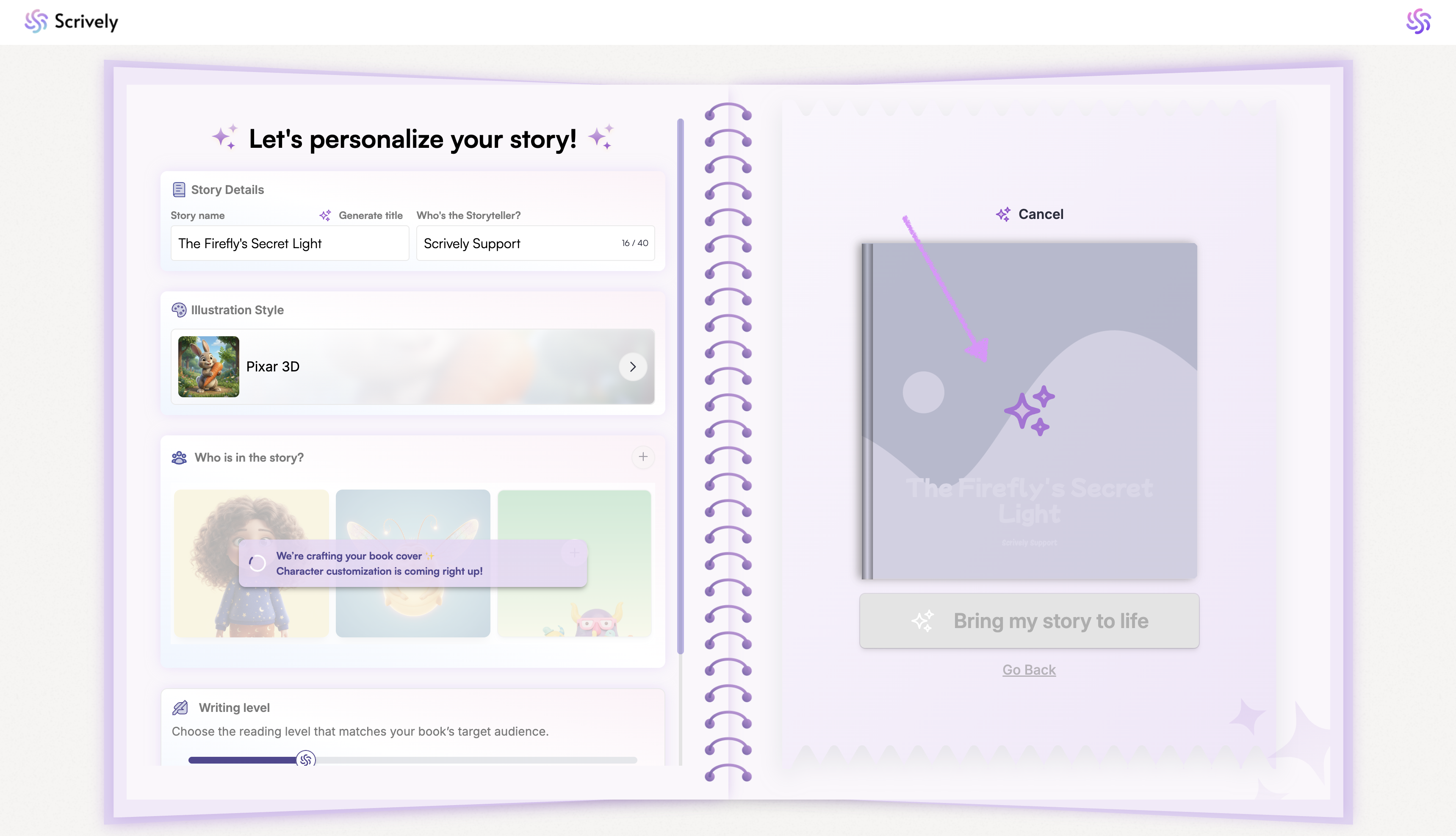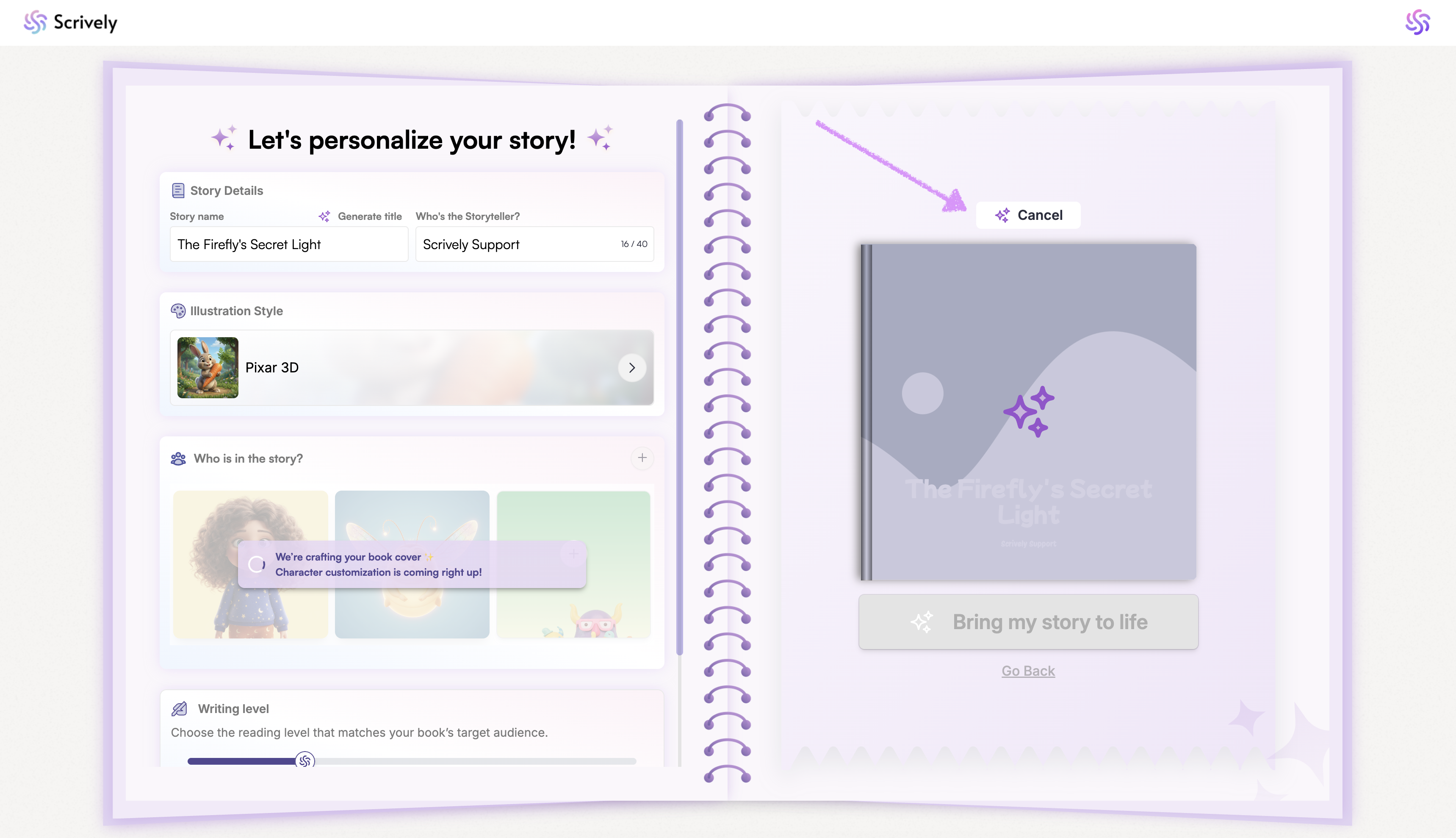Scrively will begin by generating the characters for your storybook.