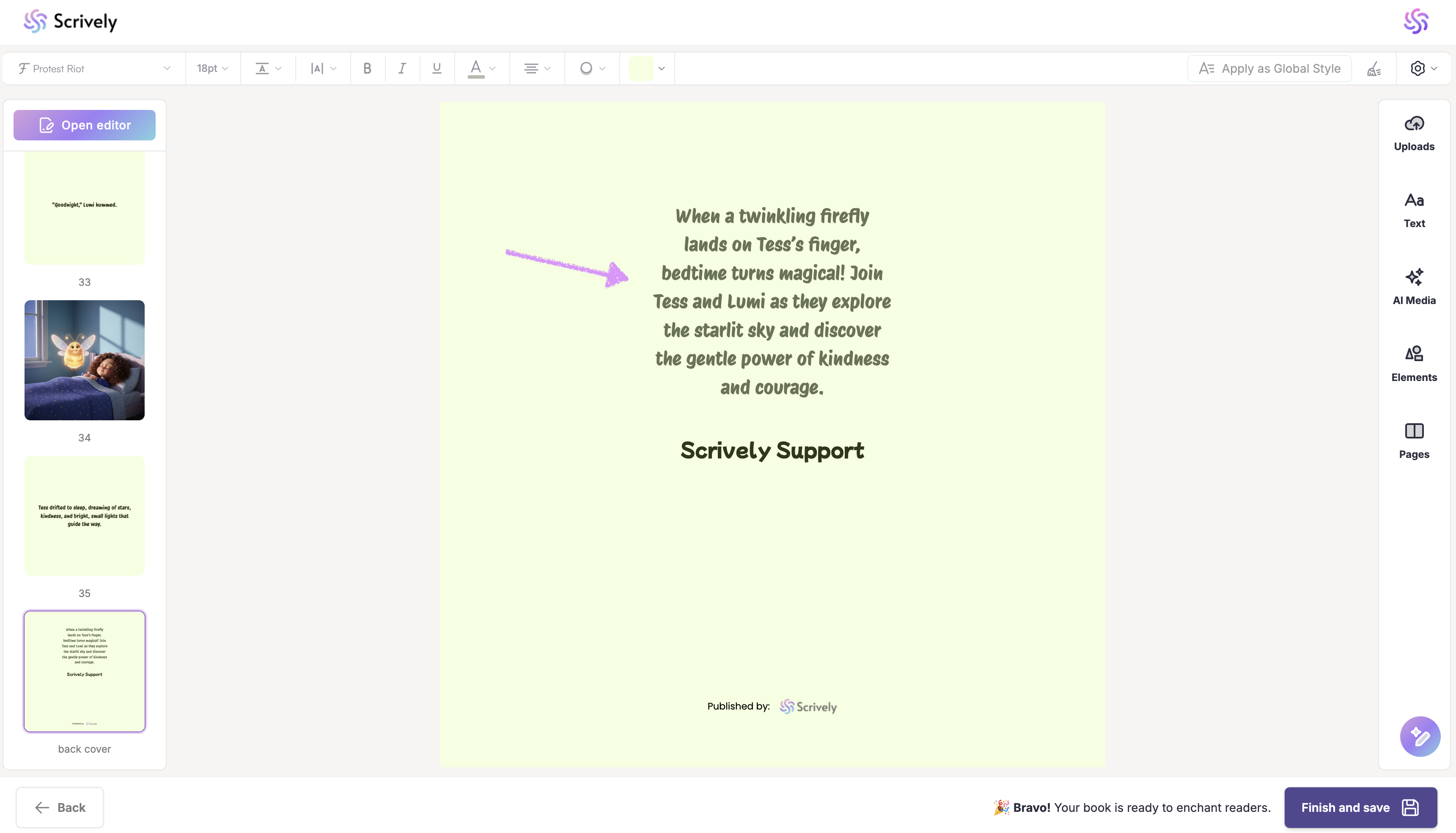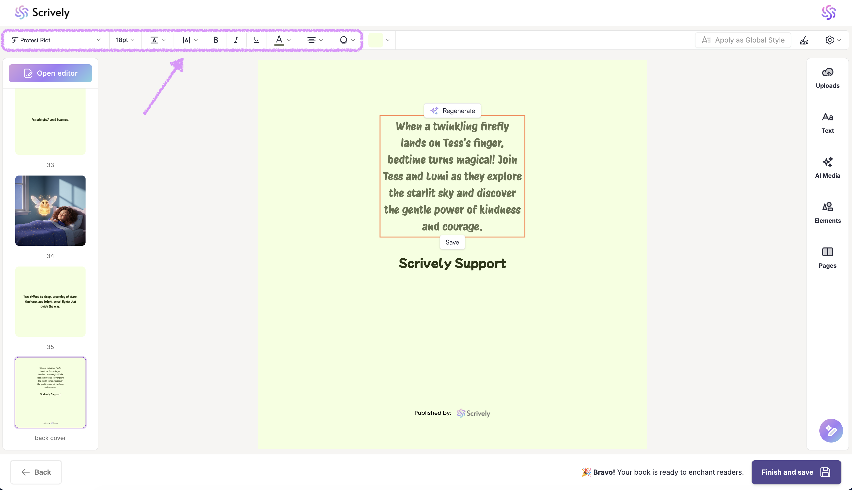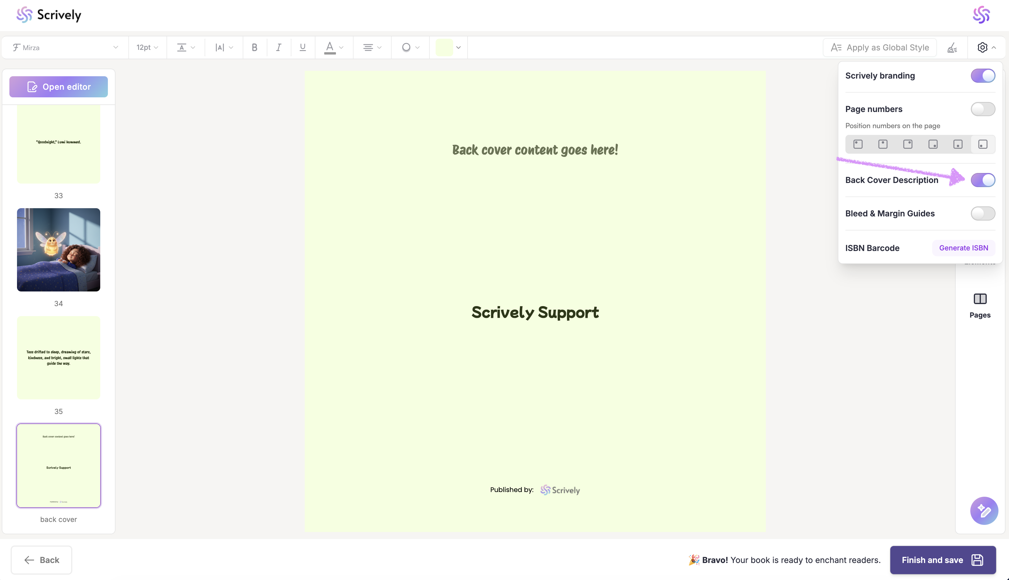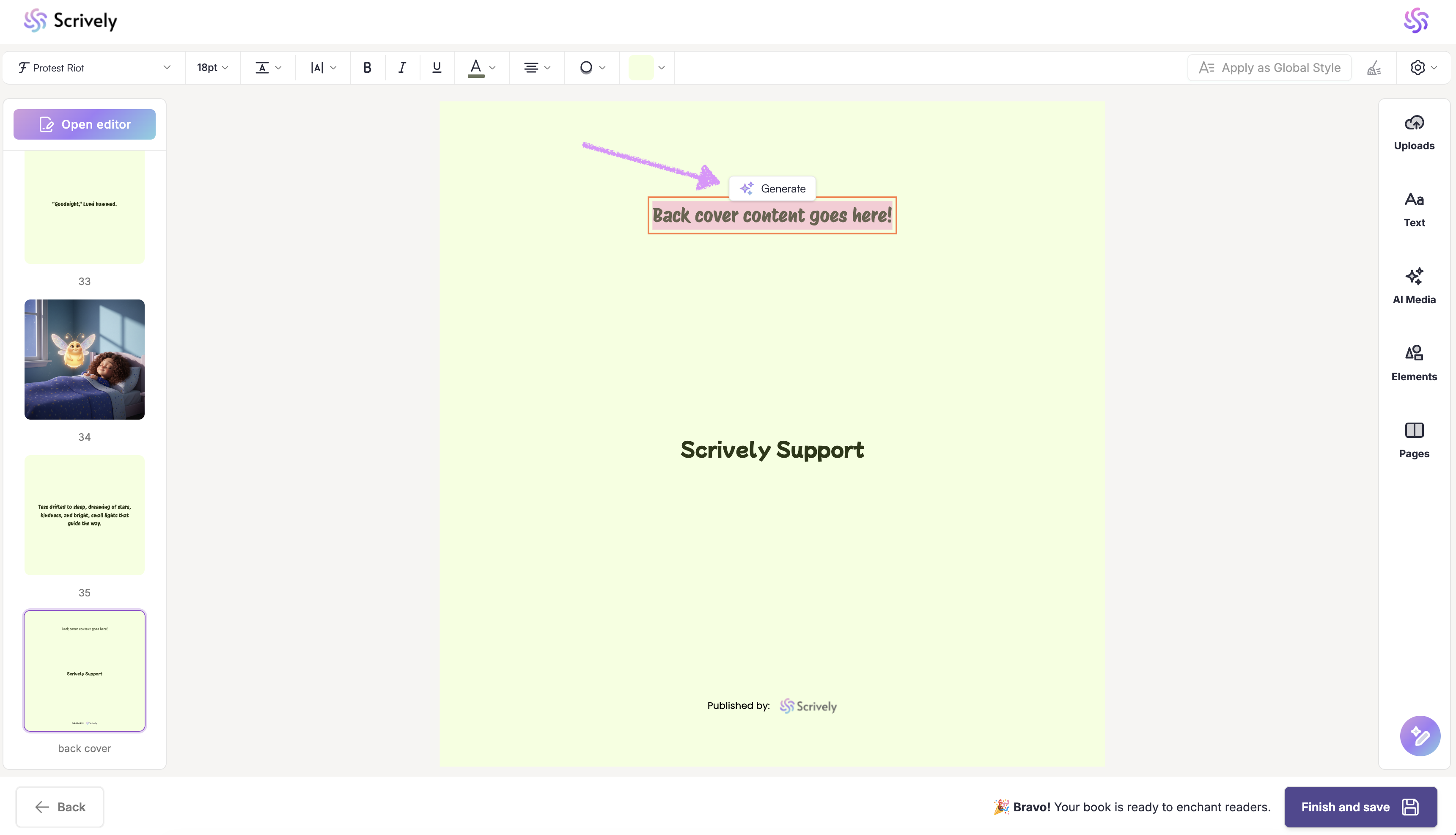 Alternatively, let Scrively do the writing for you. Click on “Generate” to have a compelling back cover blurb created based on your story.