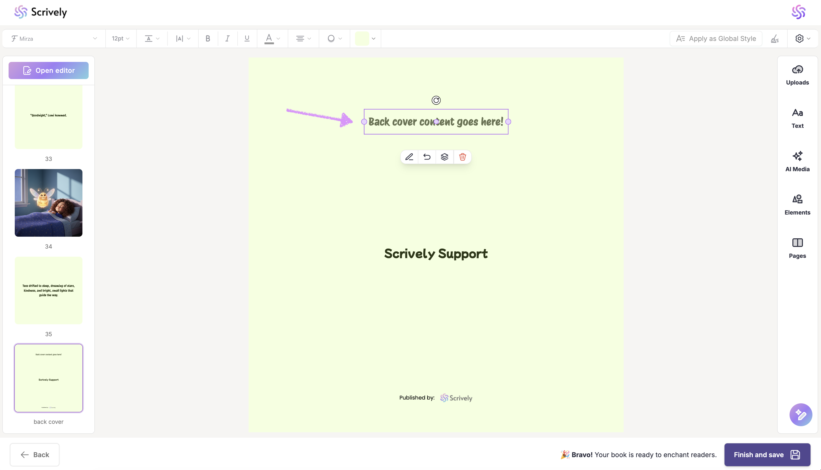 If needed, you can also click on the author’s name text block to adjust the formatting or delete it. Next, check out our guide on formatting your book's page numbers.