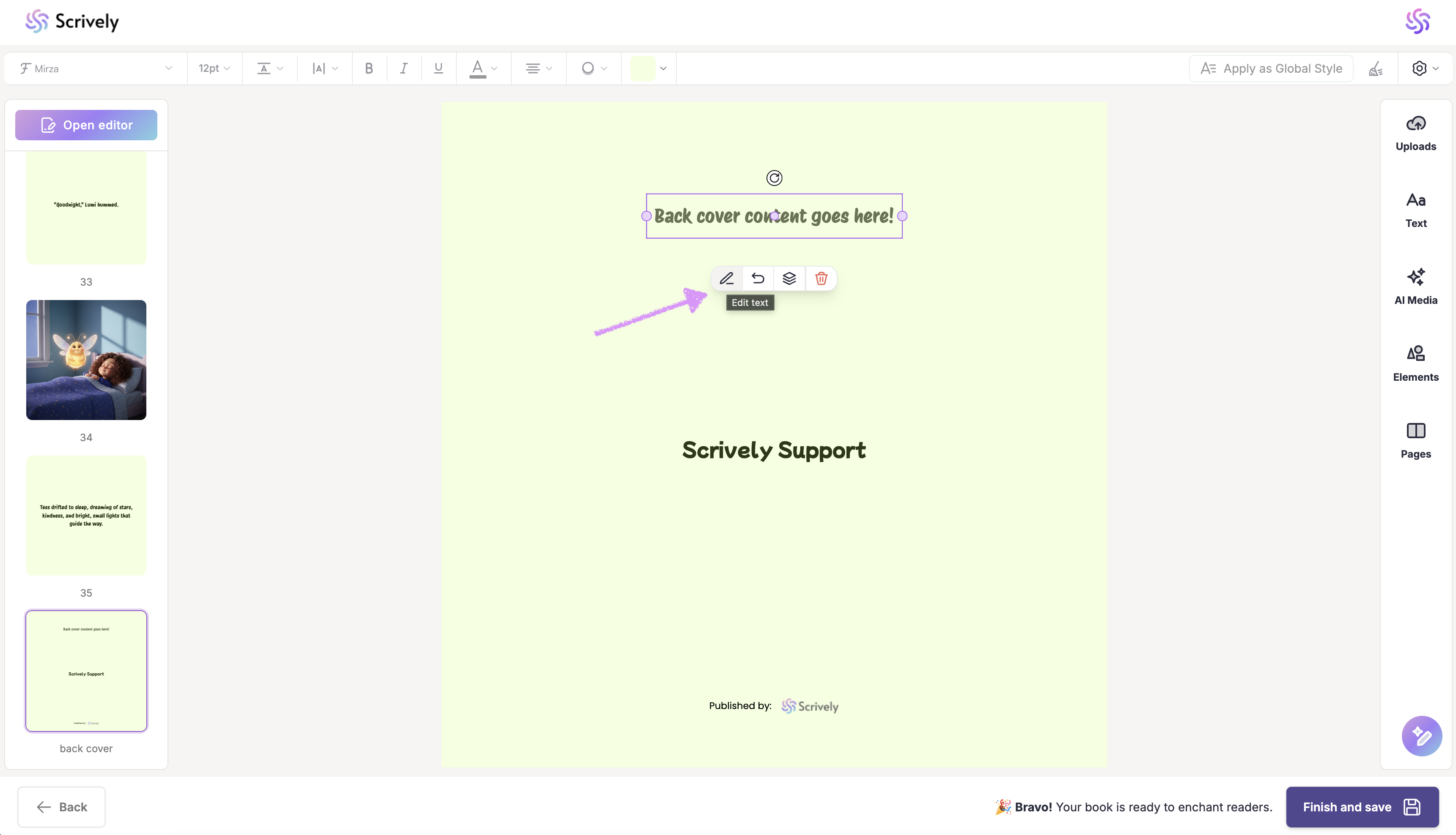 Select the pencil icon to manually enter your back cover blurb.