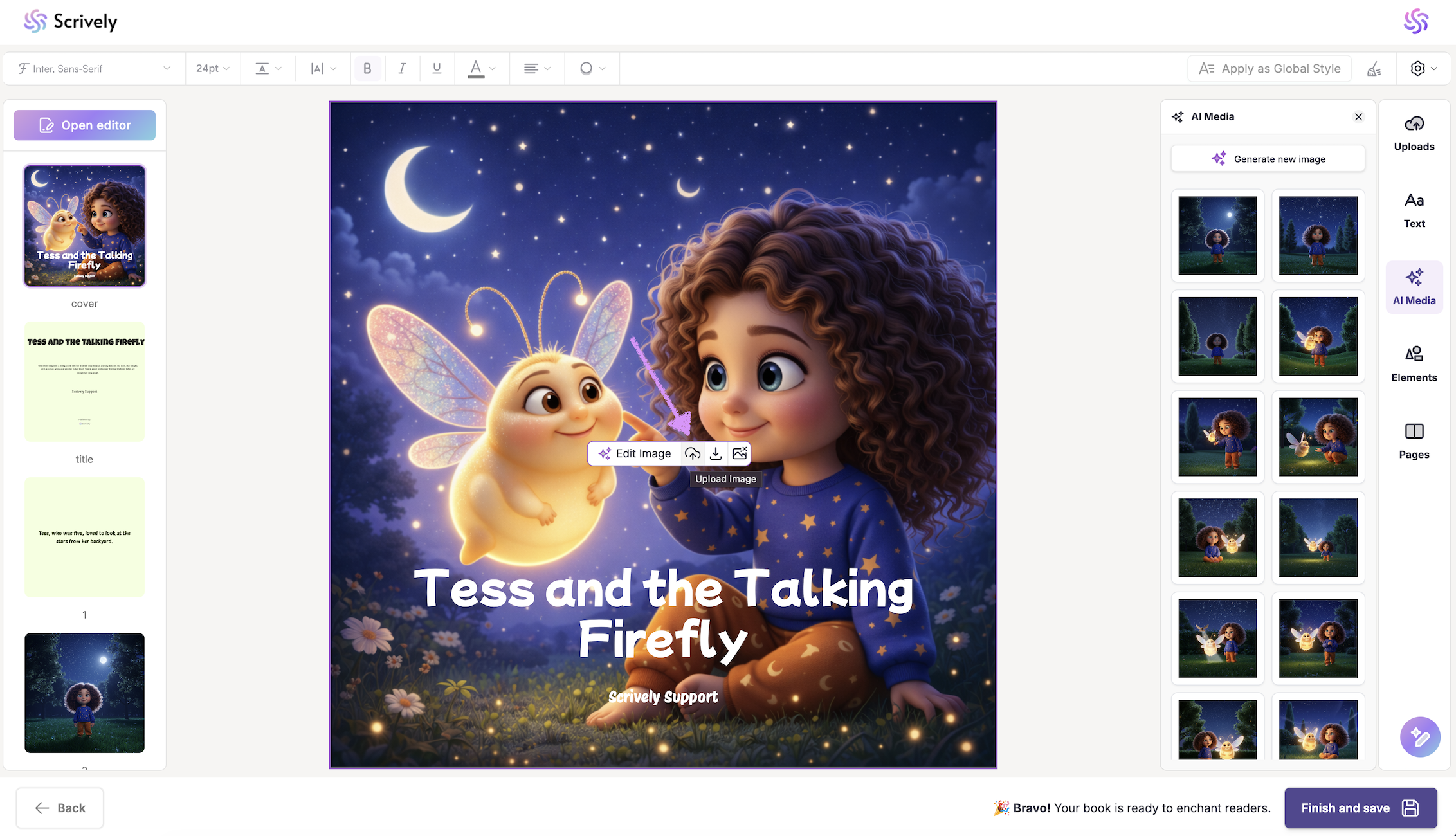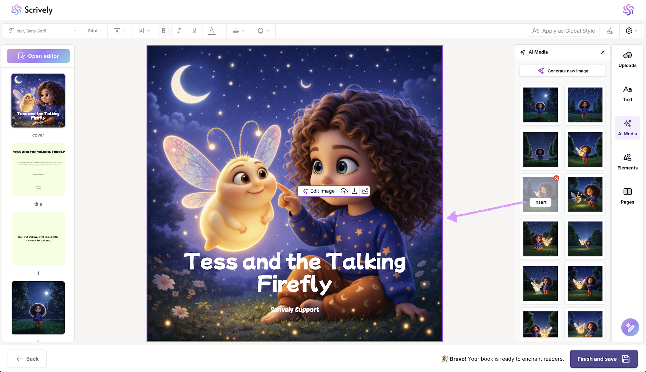 All images you’ve generated will appear in the right-hand side in the book's "AI Media" library.
