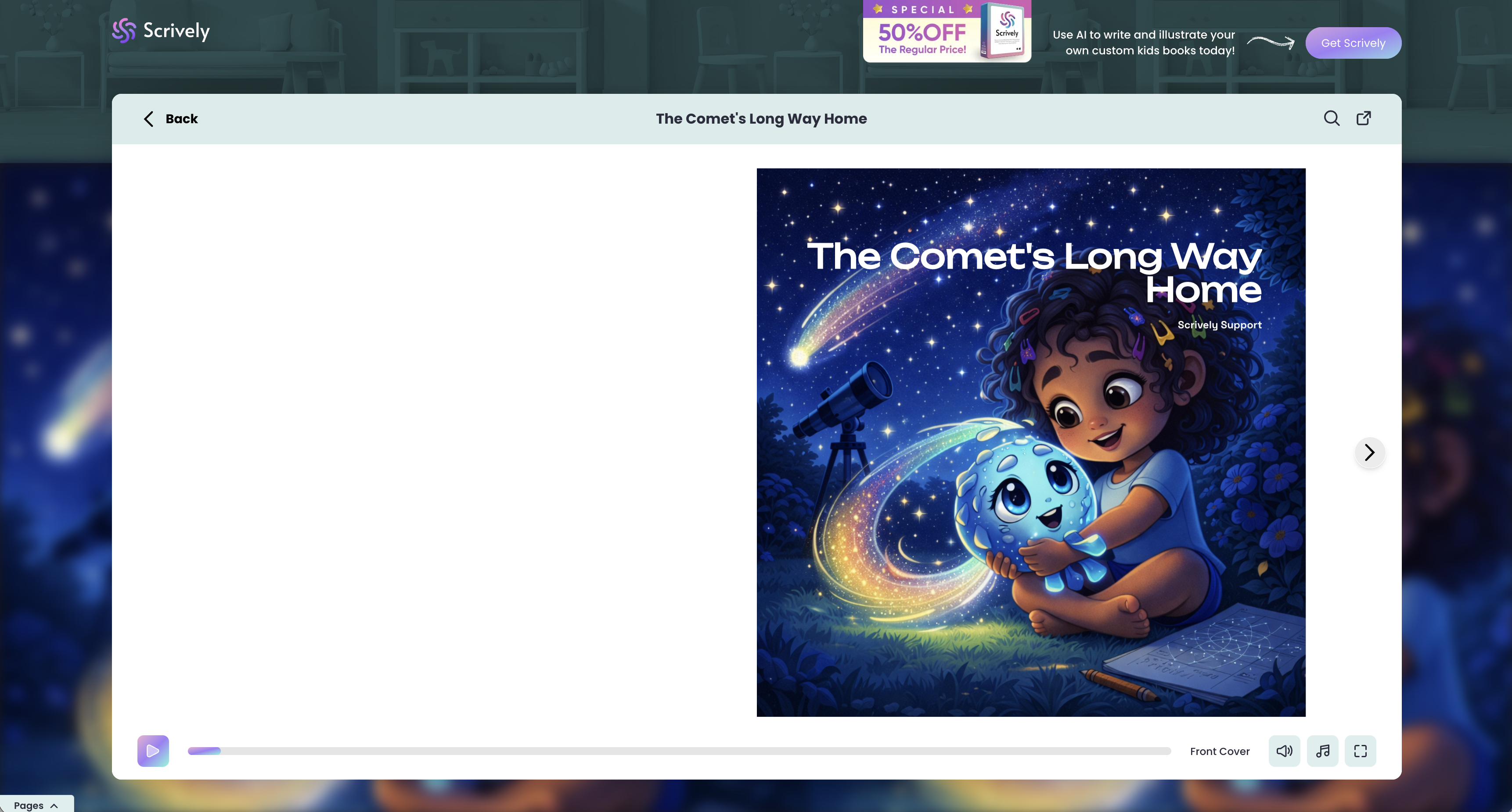 Before sharing your work with readers, you can preview your published book in Scrively. This helps ensure everything looks perfect before going live.