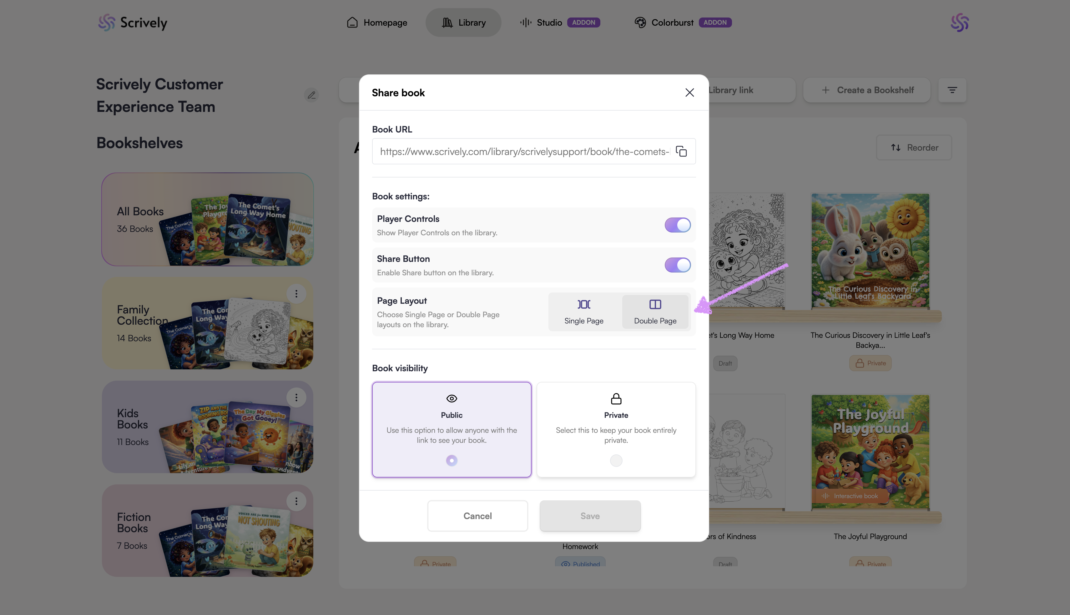 Click on either “Single Page” or “Double Page” to set how your book appears in your library.