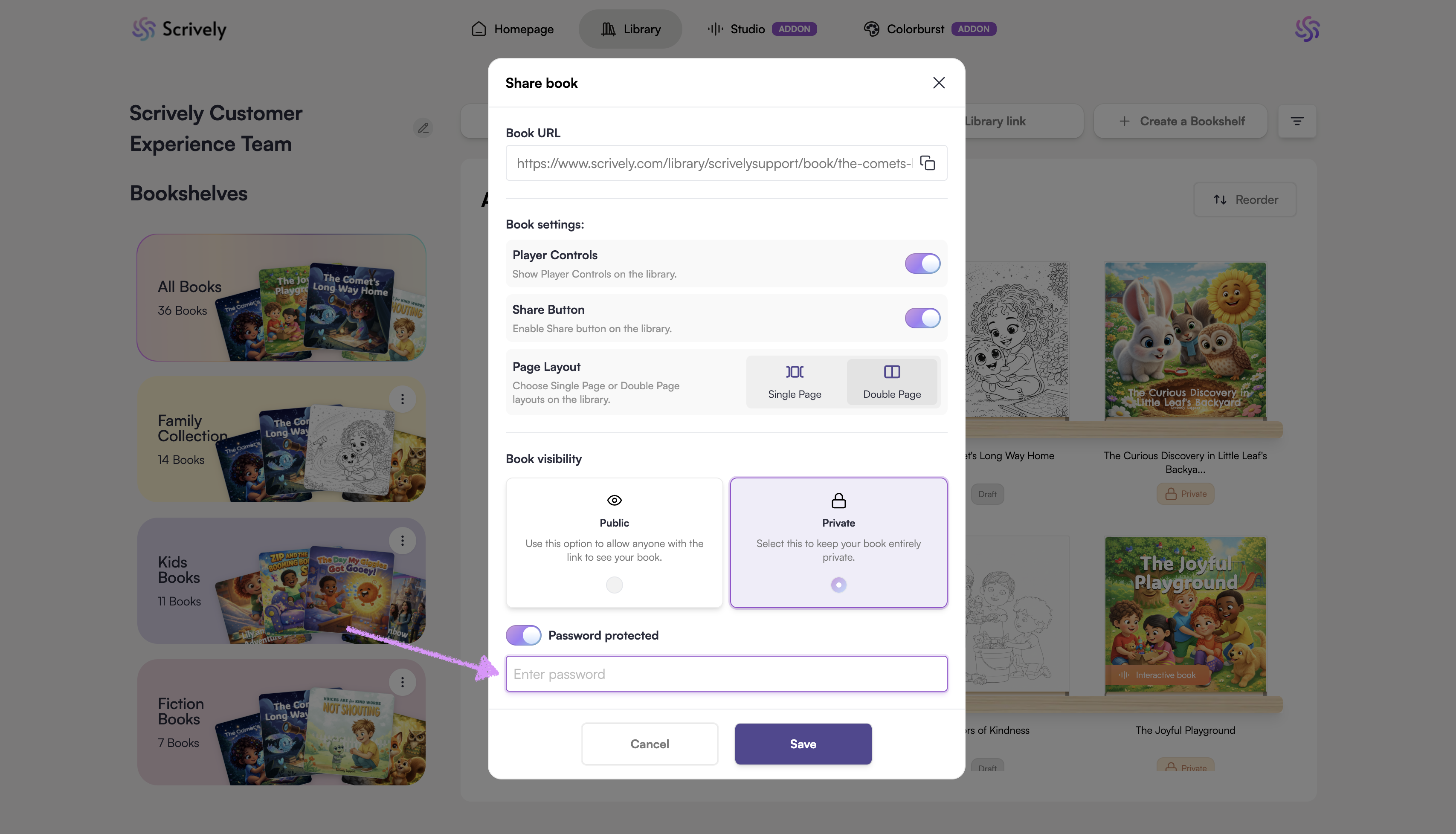 Readers will need to enter the password to view the shared book.