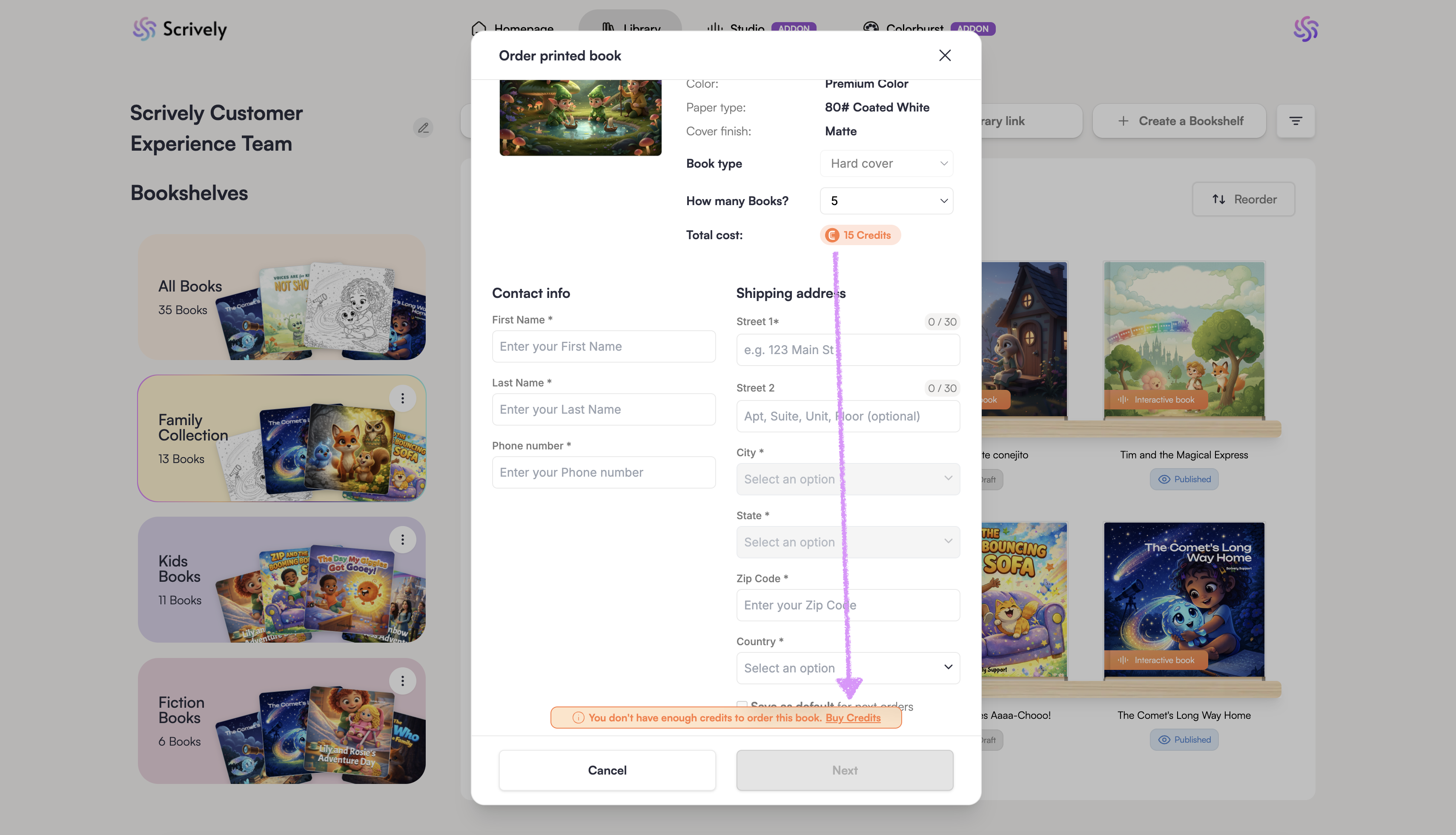 If your account doesn’t have enough credits to cover your book order, you’ll be prompted to purchase additional credits.
