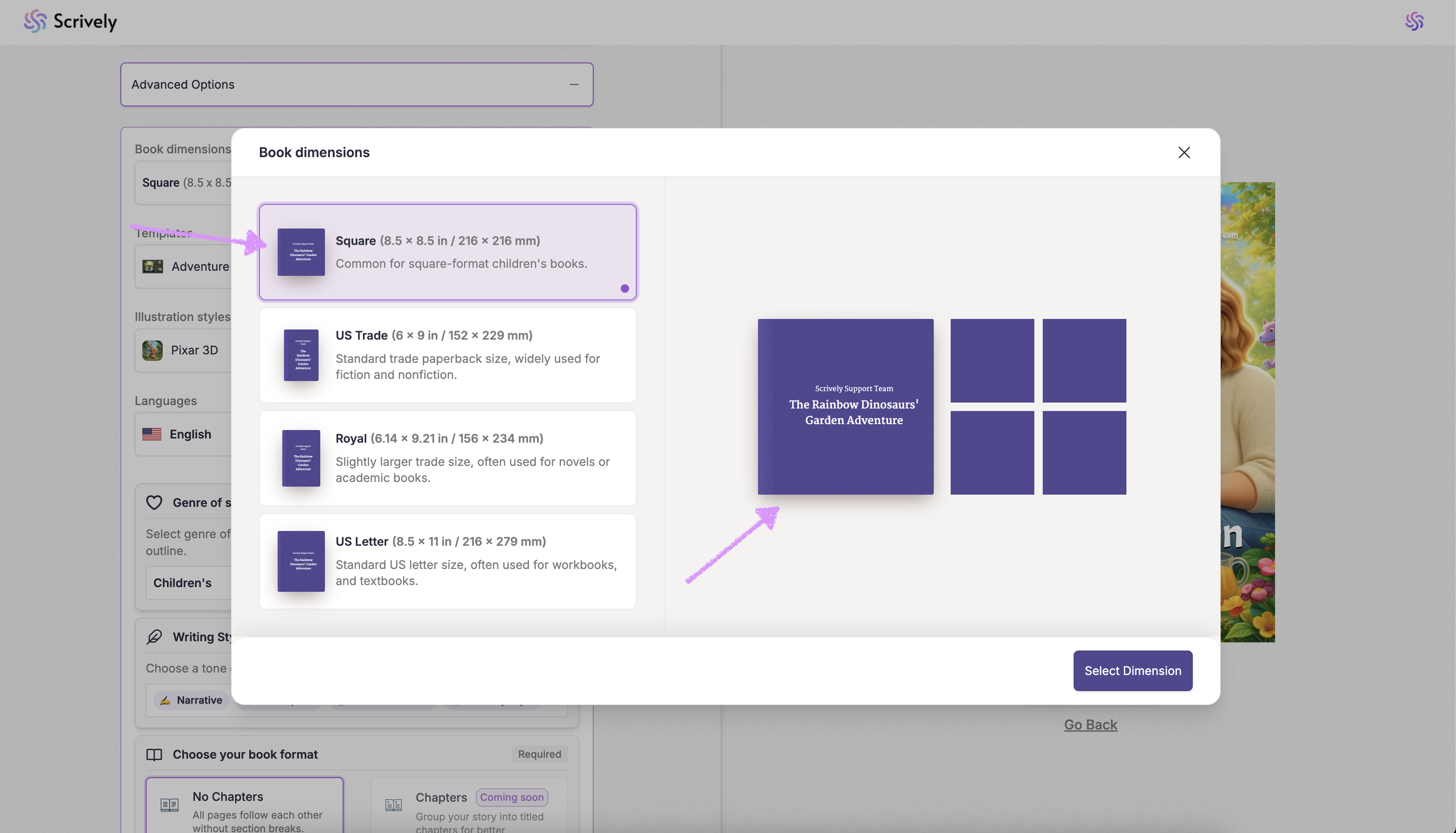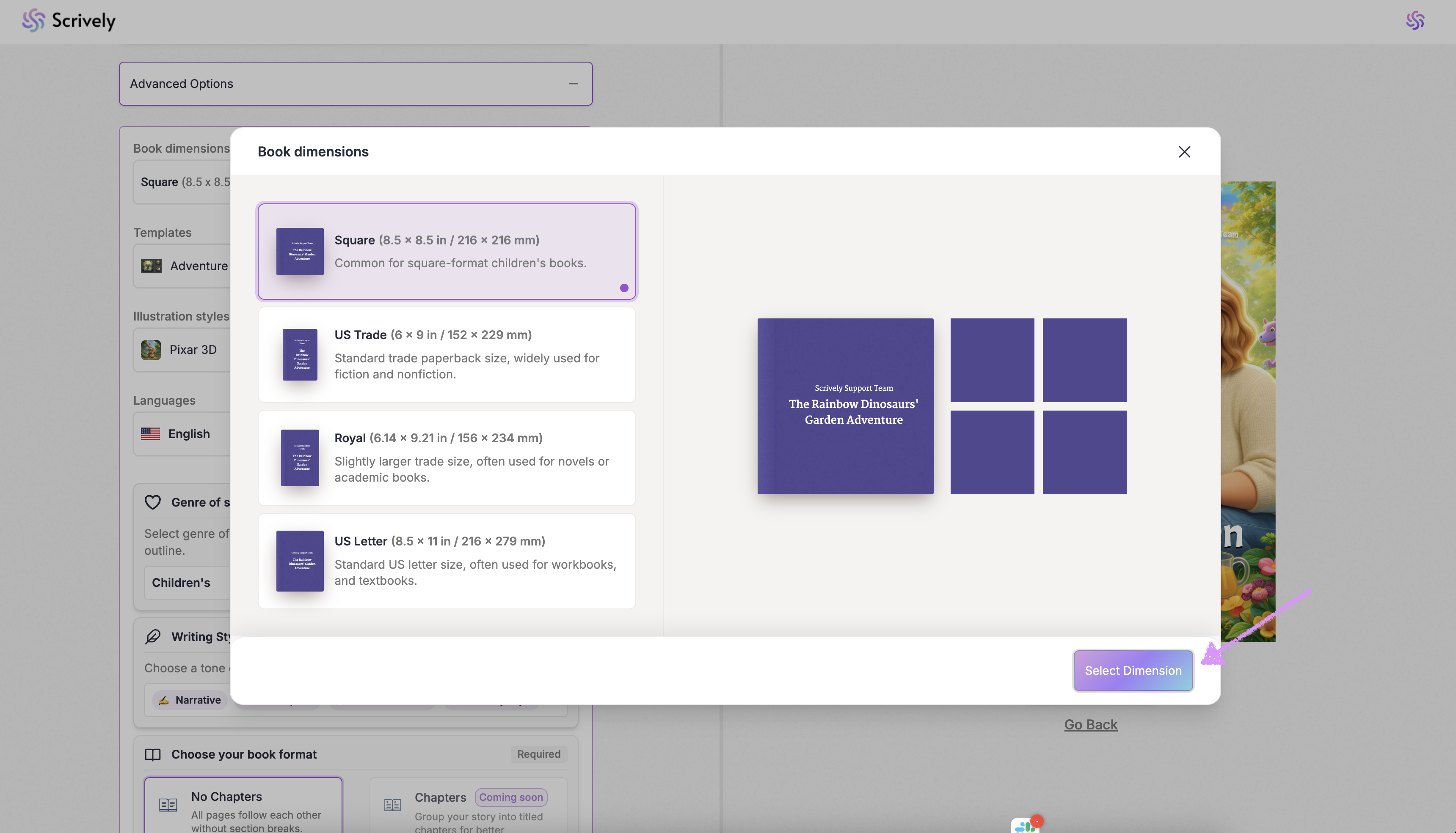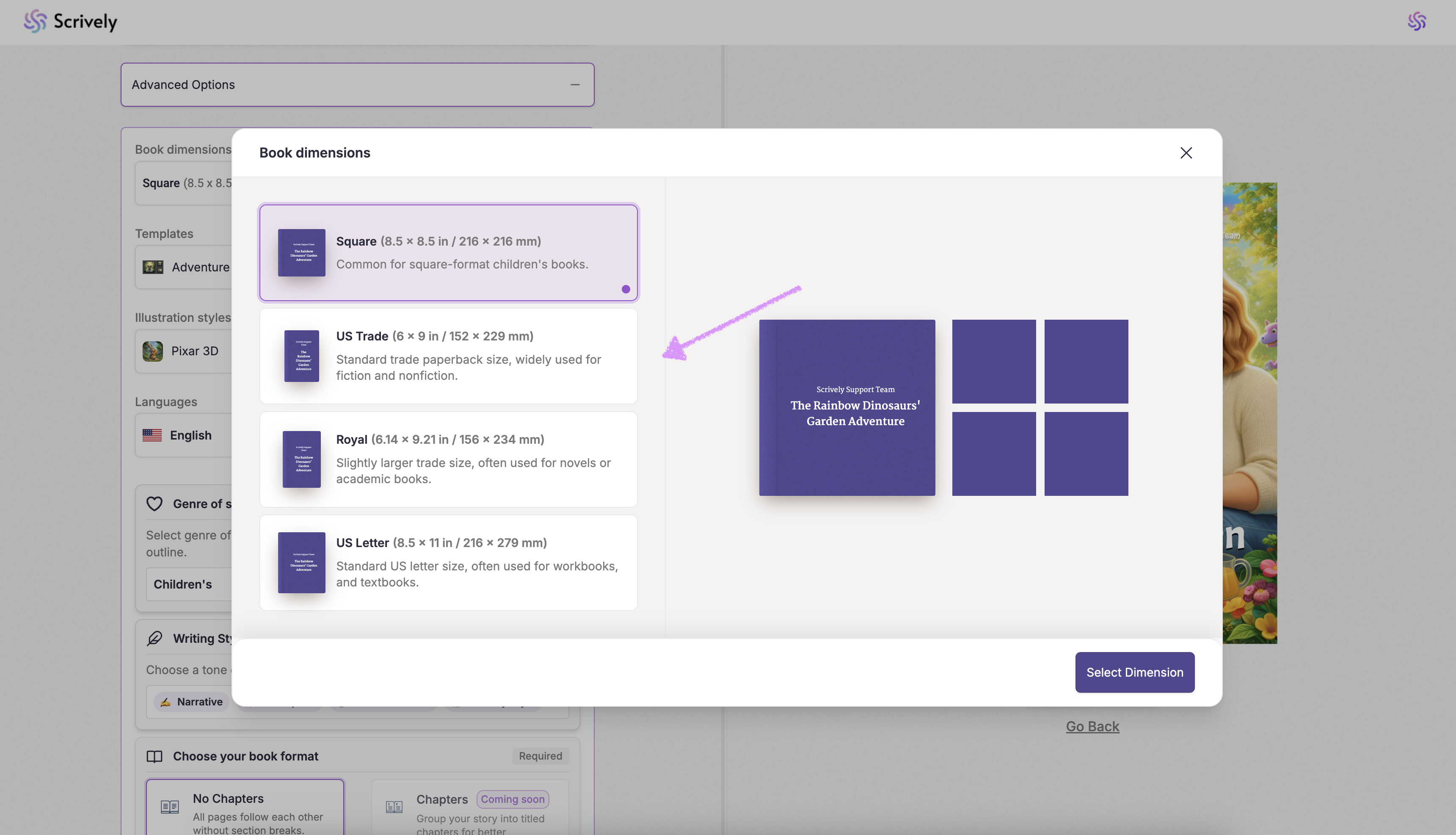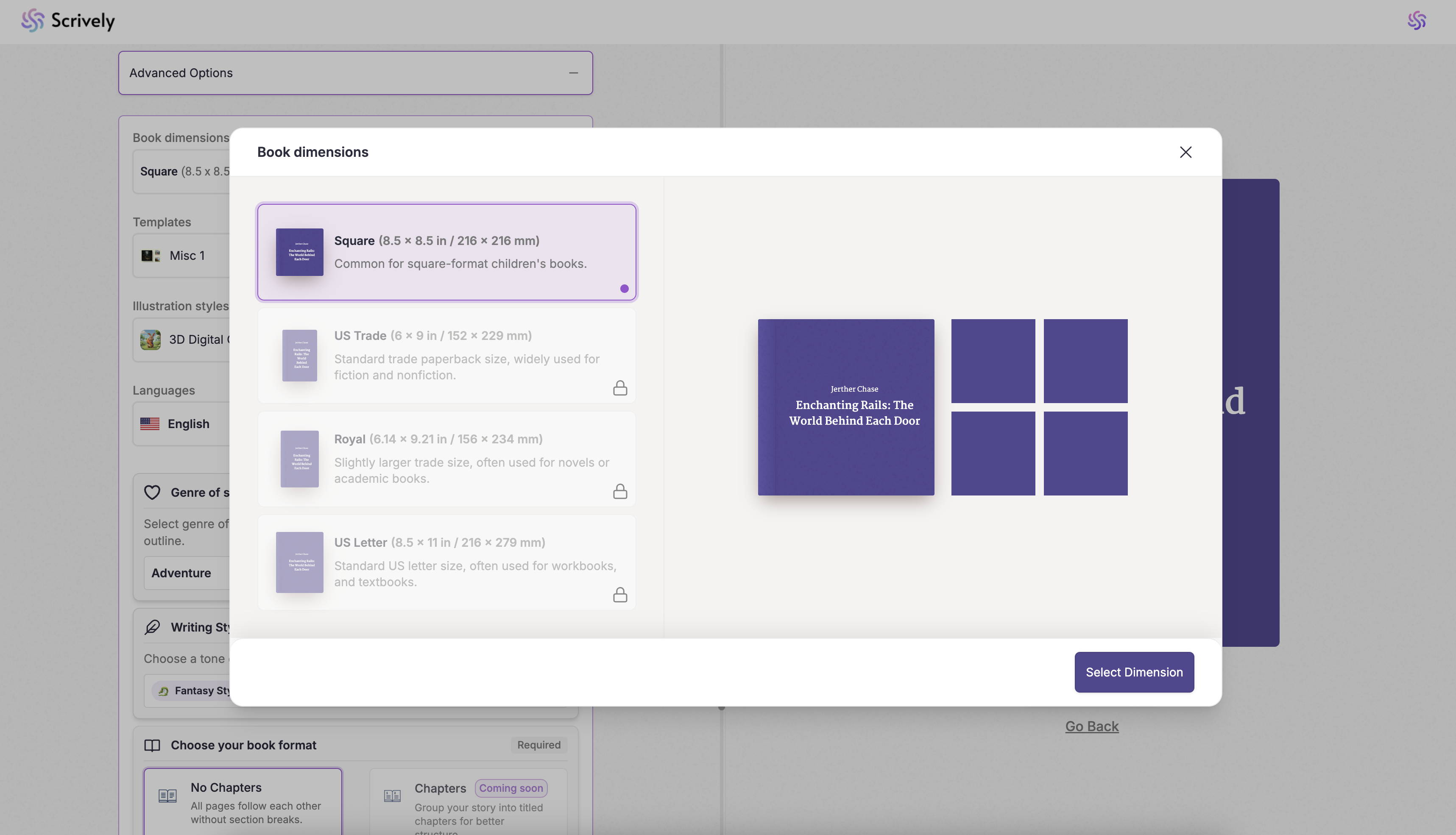 Choose your book's dimension.
