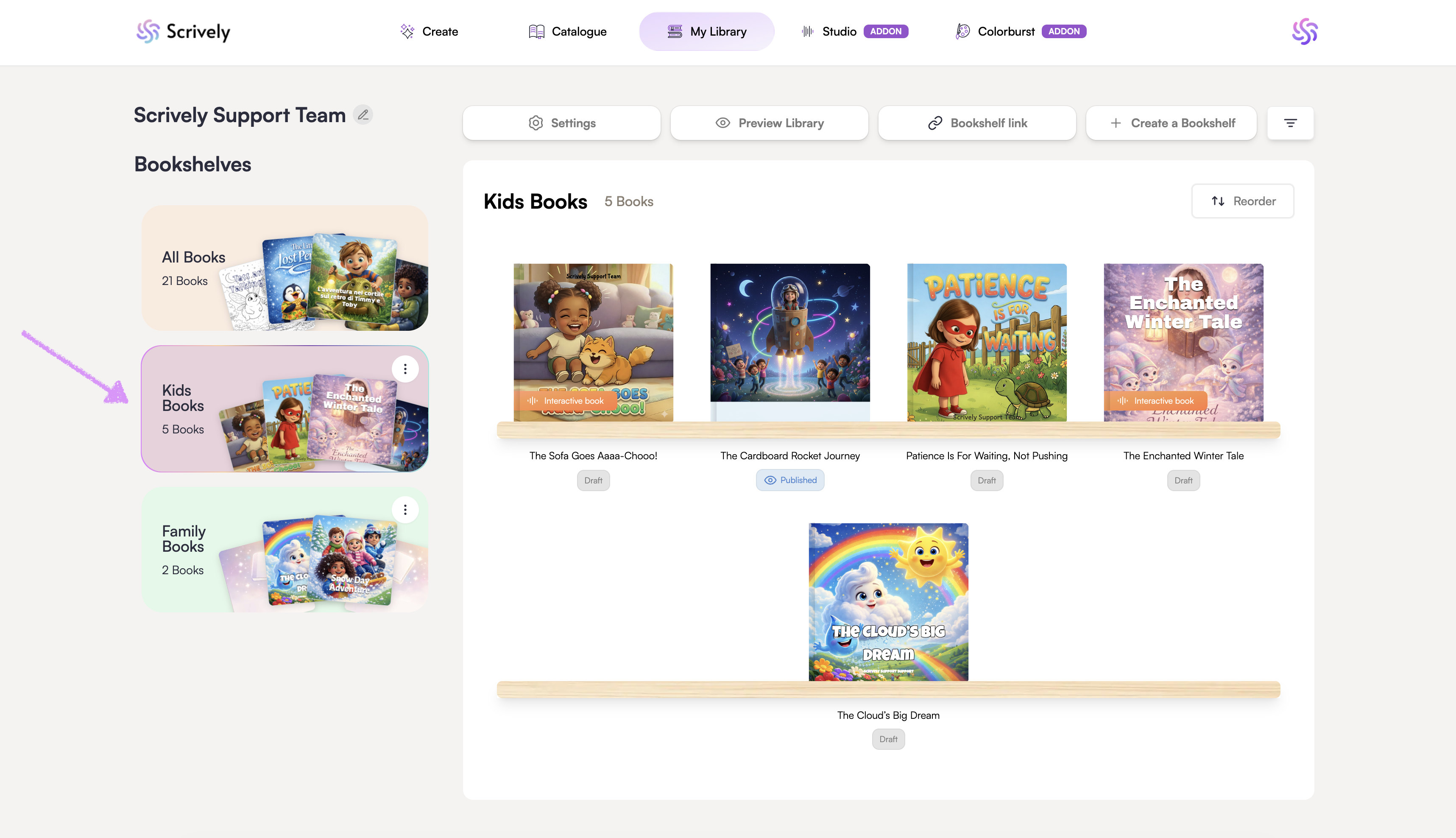 Below "All Books", you’ll find each individual bookshelf you’ve created.