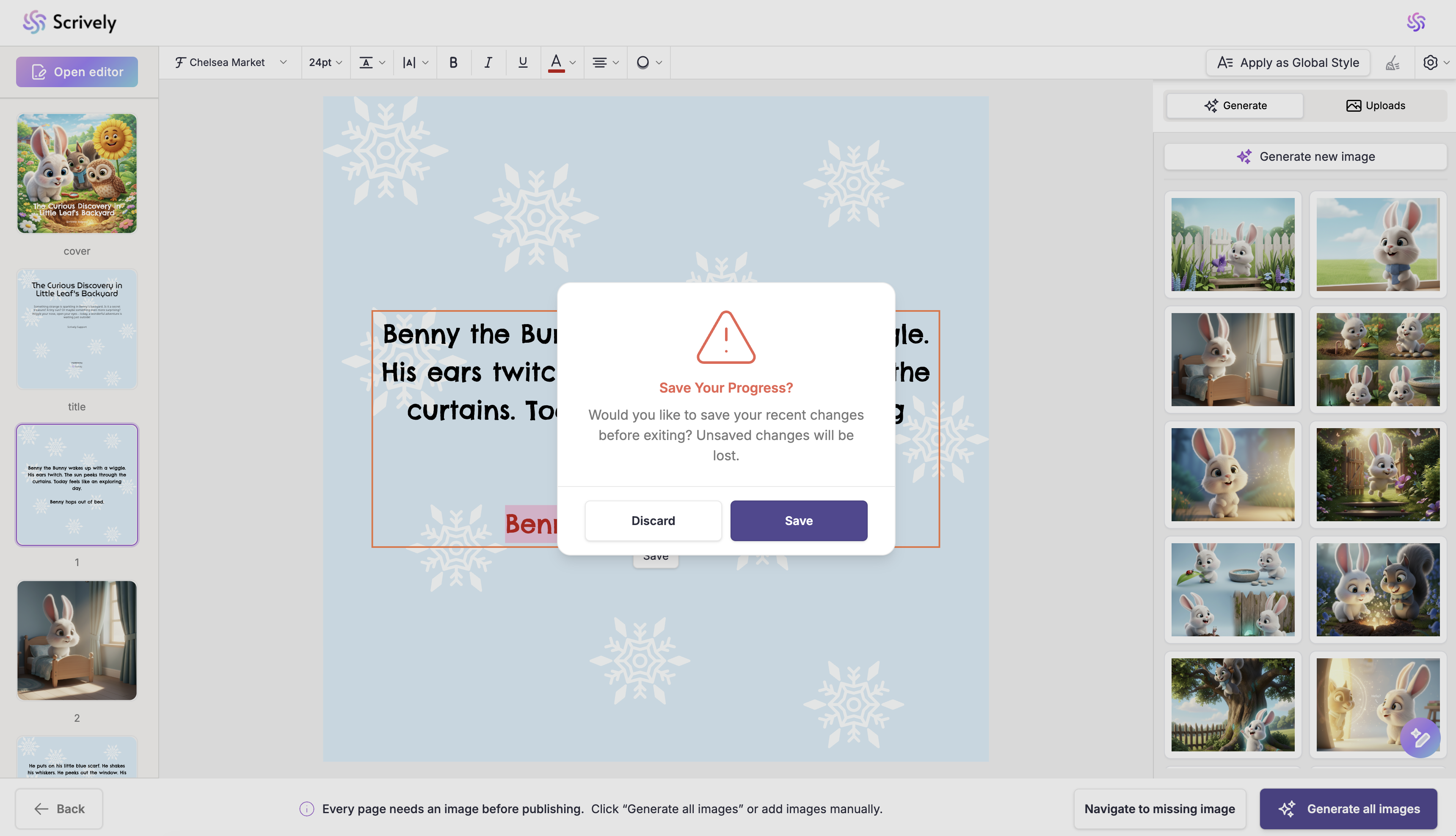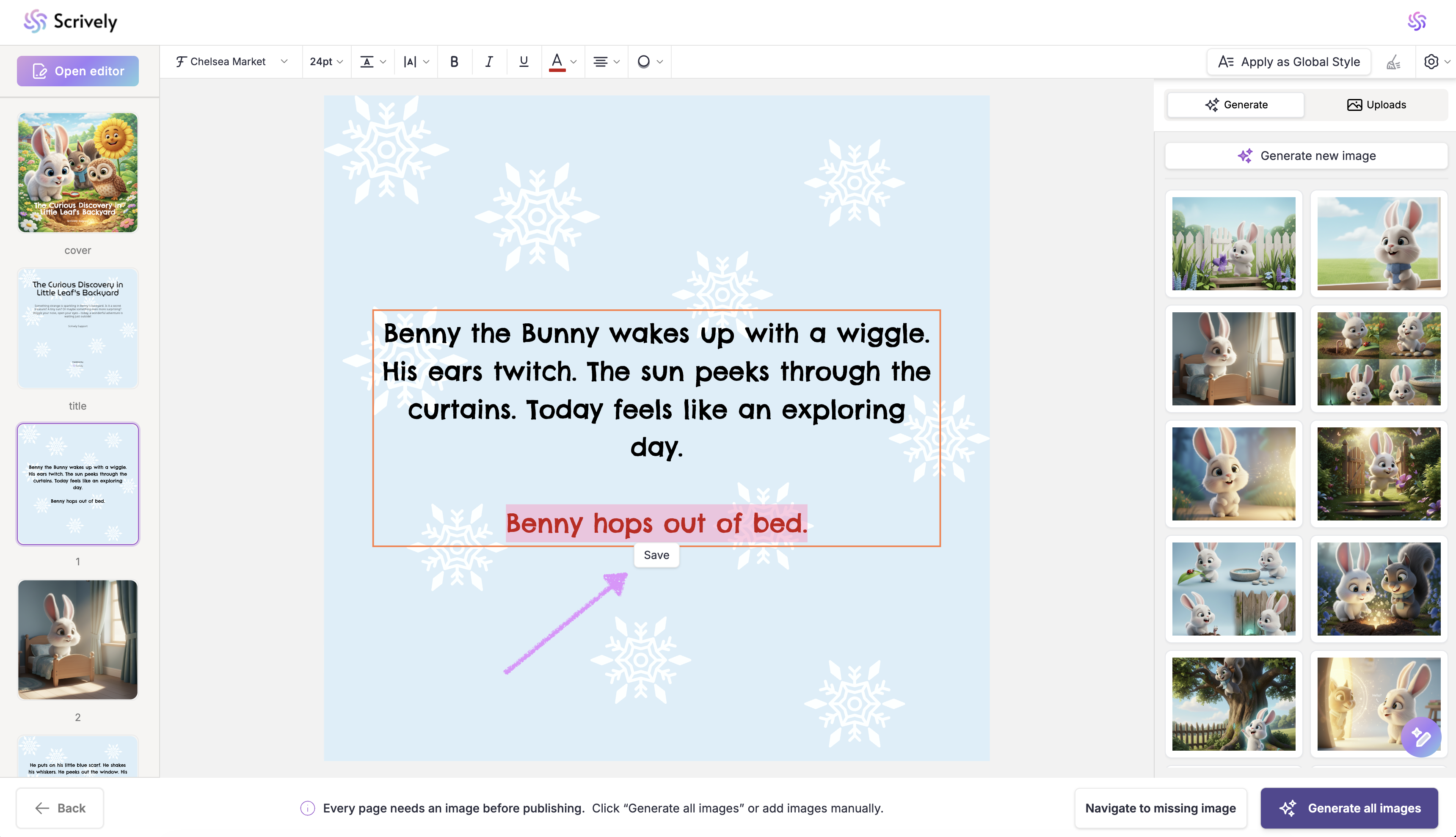 Scrively’s Designer view gives you the freedom to truly make your story your own. Whether you’re polishing the wording, correcting typos, adjusting formatting, or adding a personal touch to each page, the "Designer" view makes it easy to shape your book exactly how you imagined it.