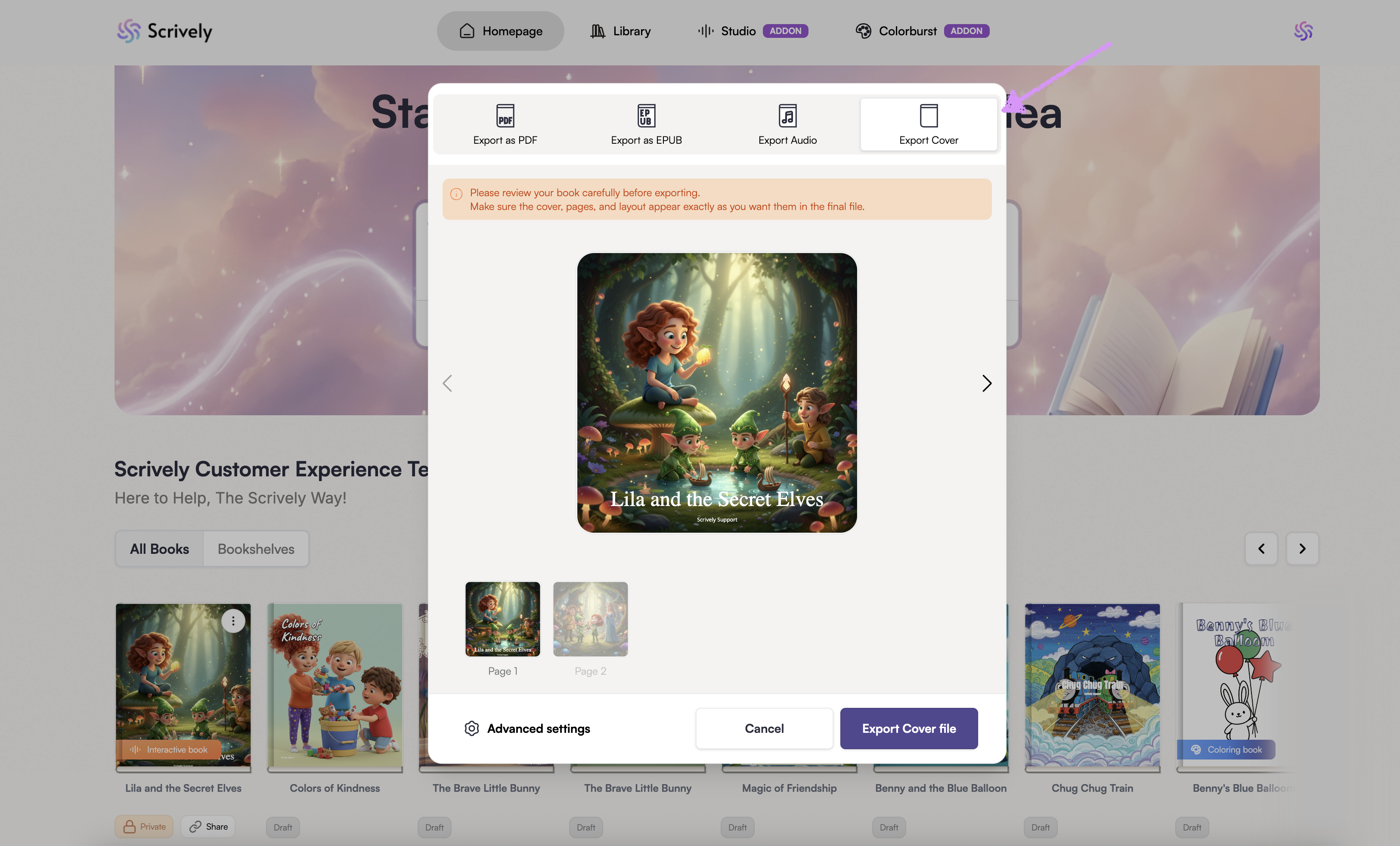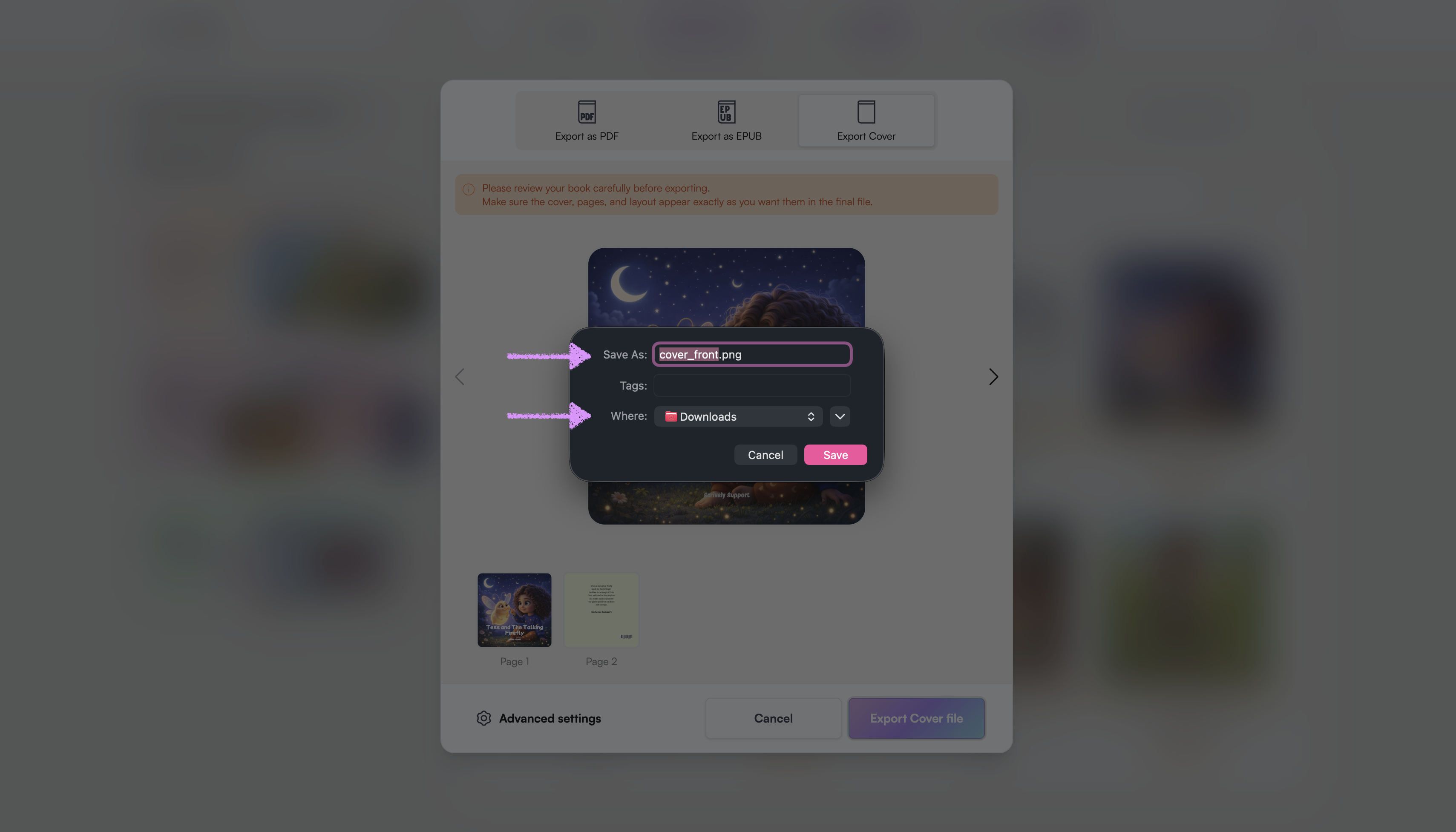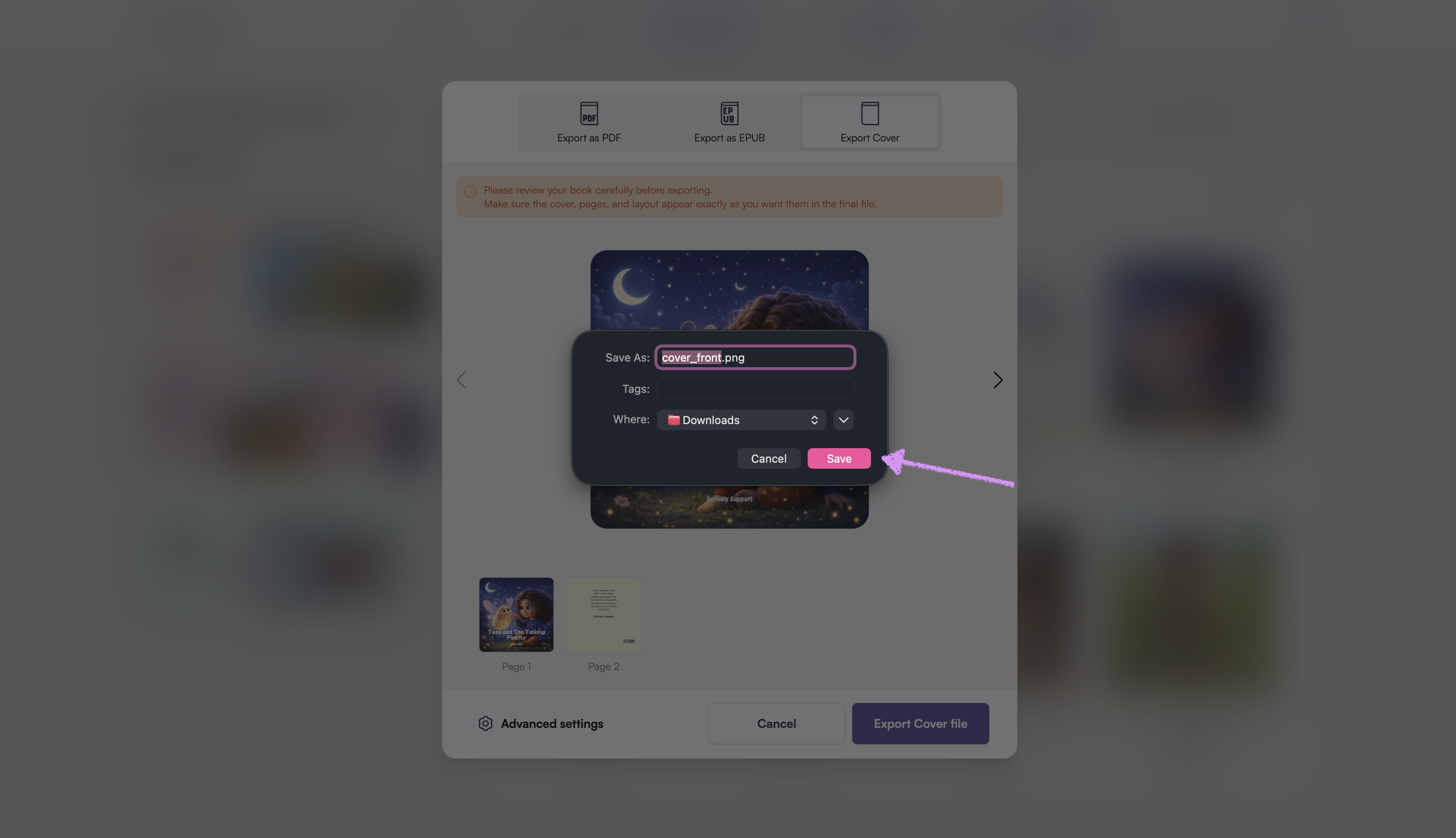 Click on "Export Cover."