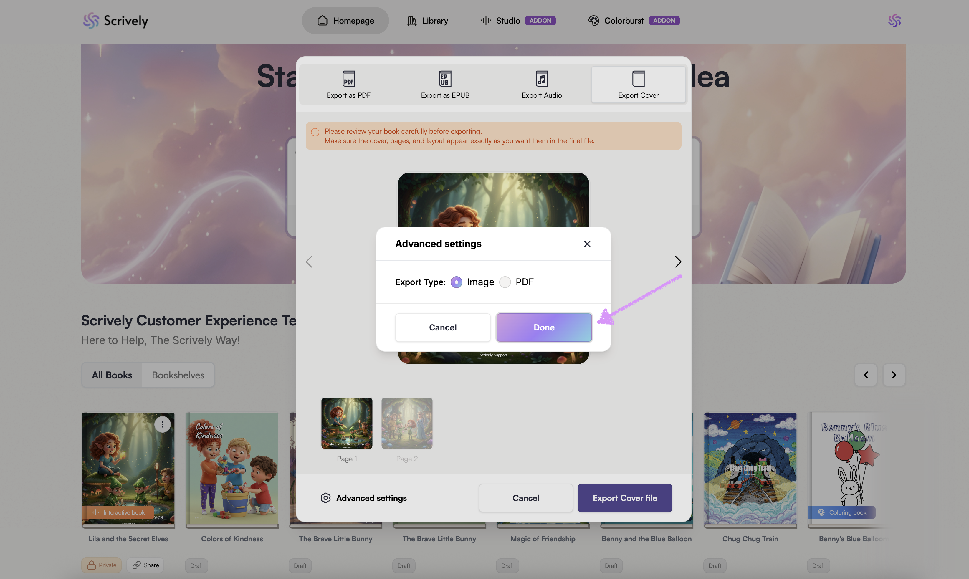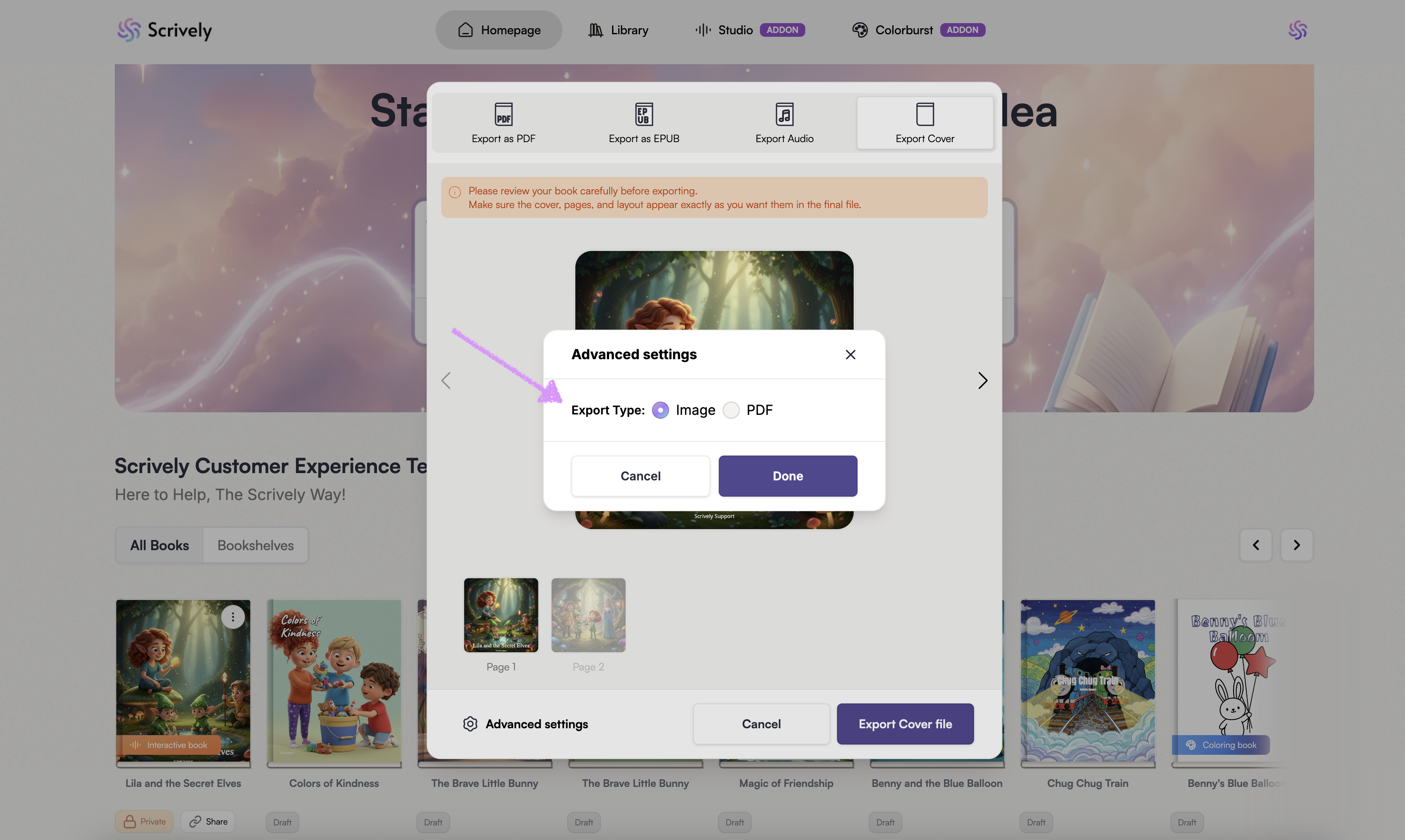 Select either an "Image" or "PDF" export type for the covers.