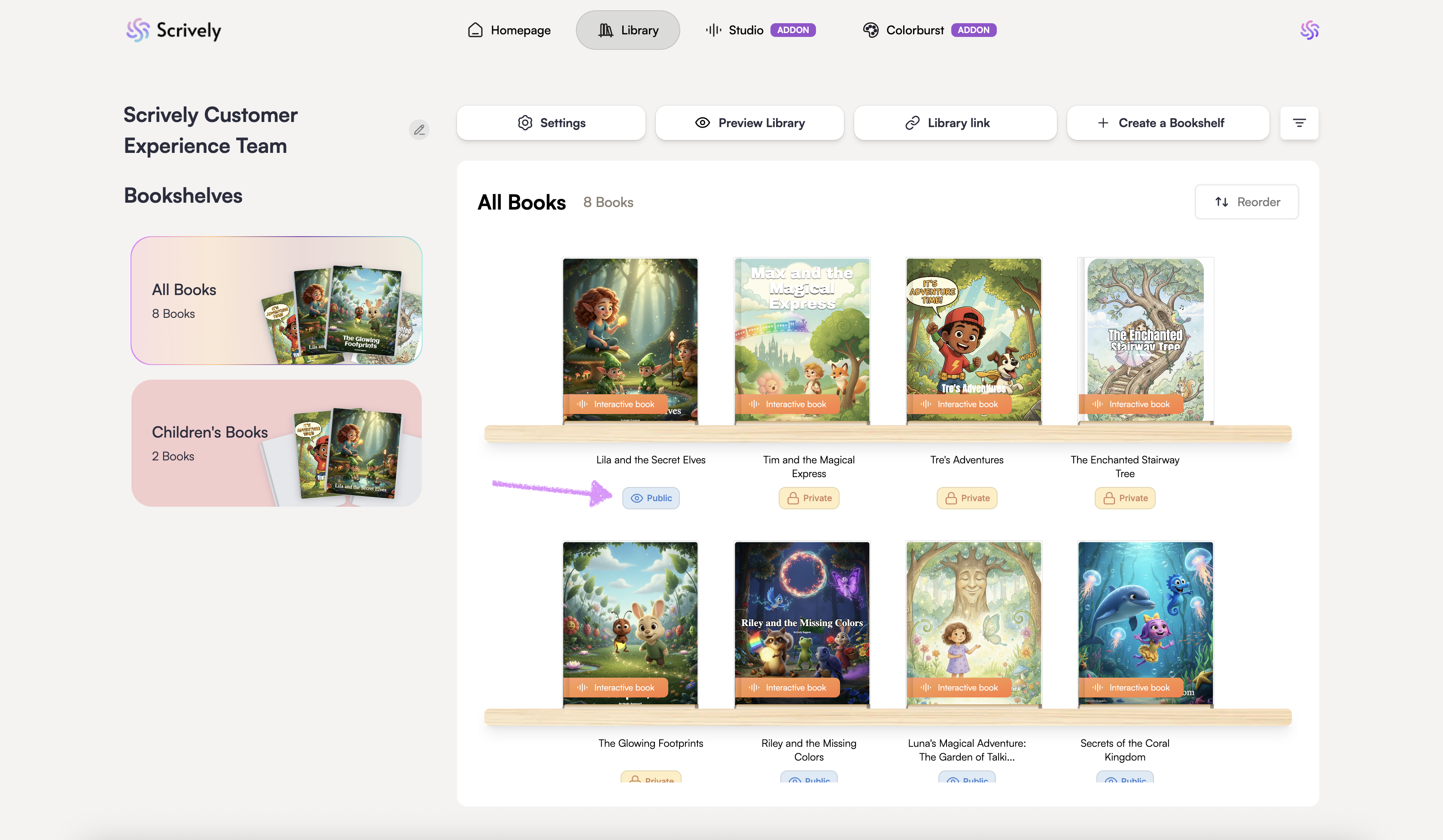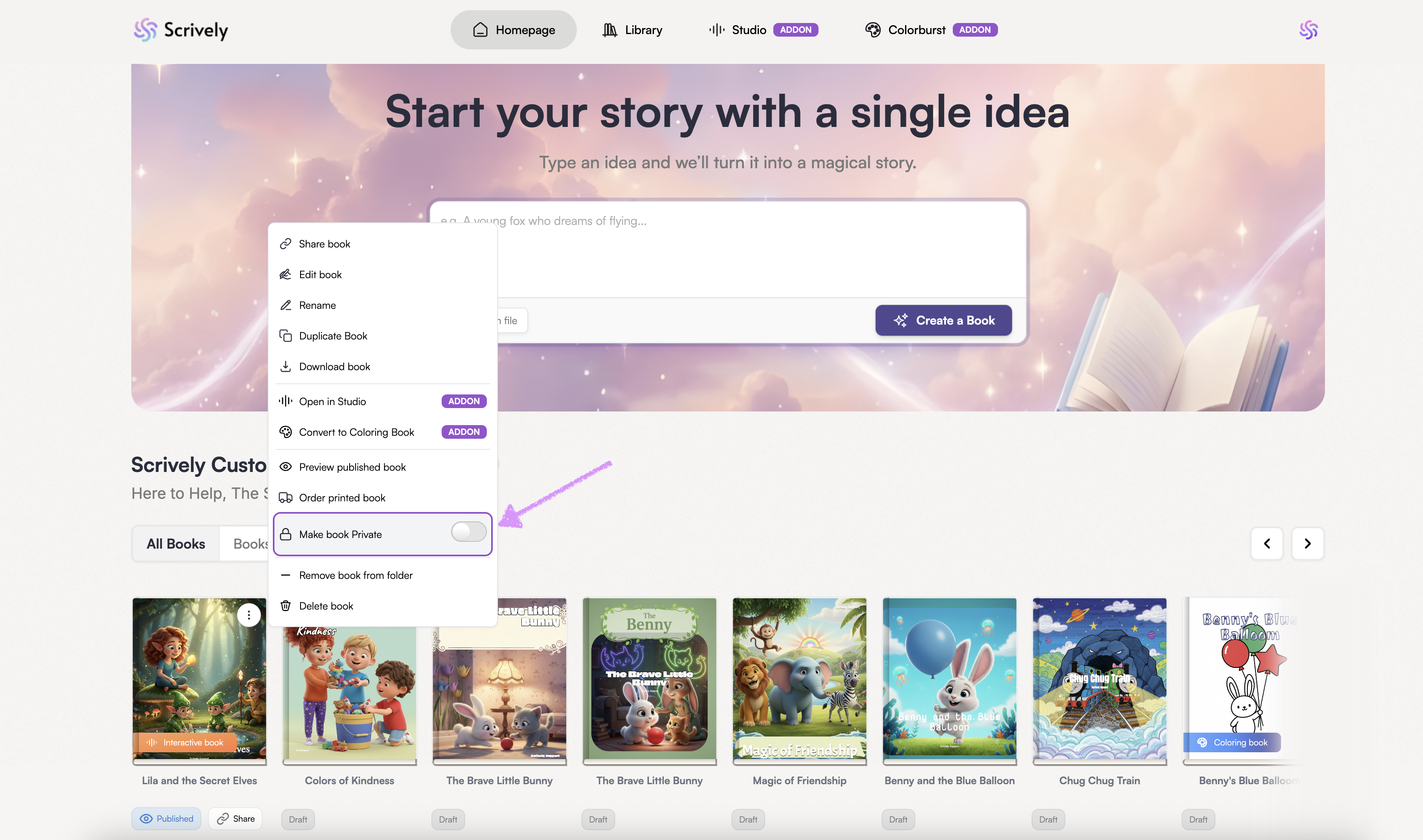 By default, your book is set to private after it’s published to your library. Scrively makes it easy to change it to public whenever you’re ready.