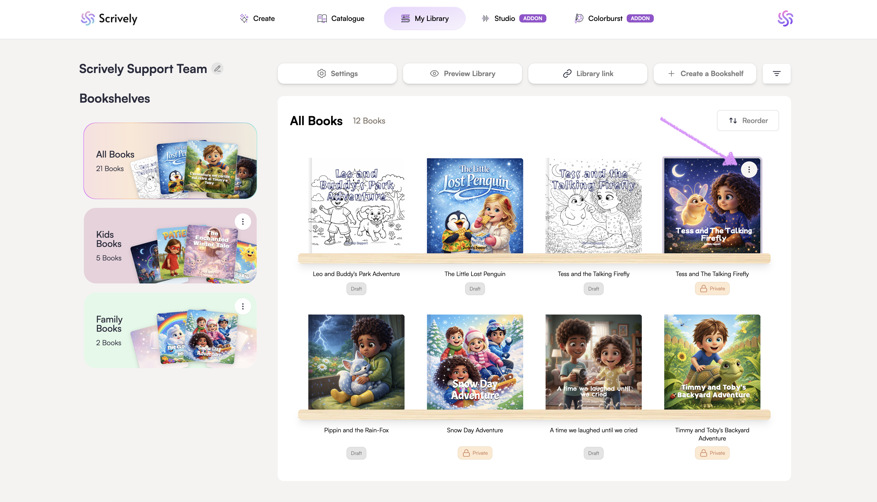 By default, your book is set to private after it’s published to your library. Scrively makes it easy to change it to public whenever you’re ready.