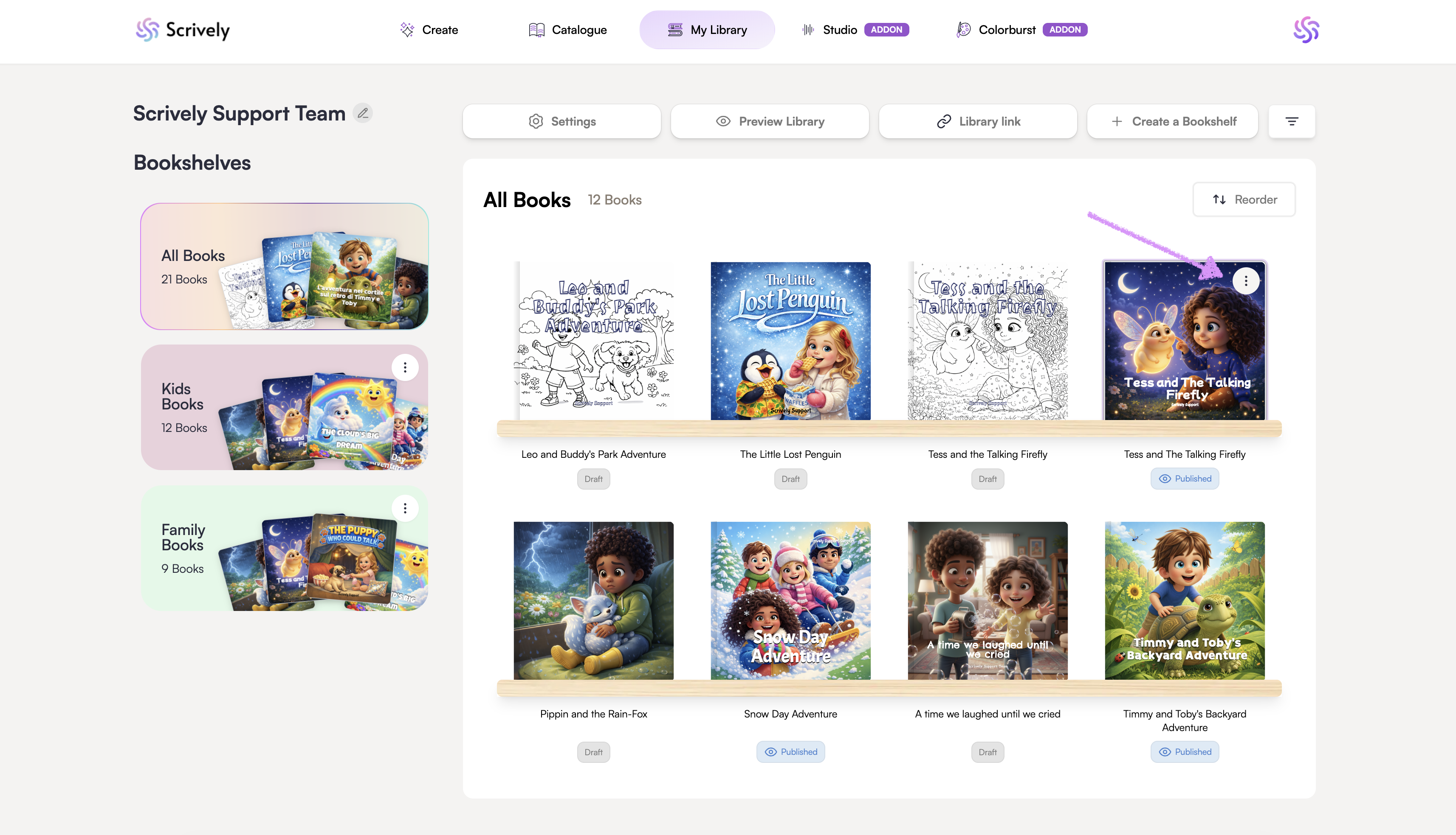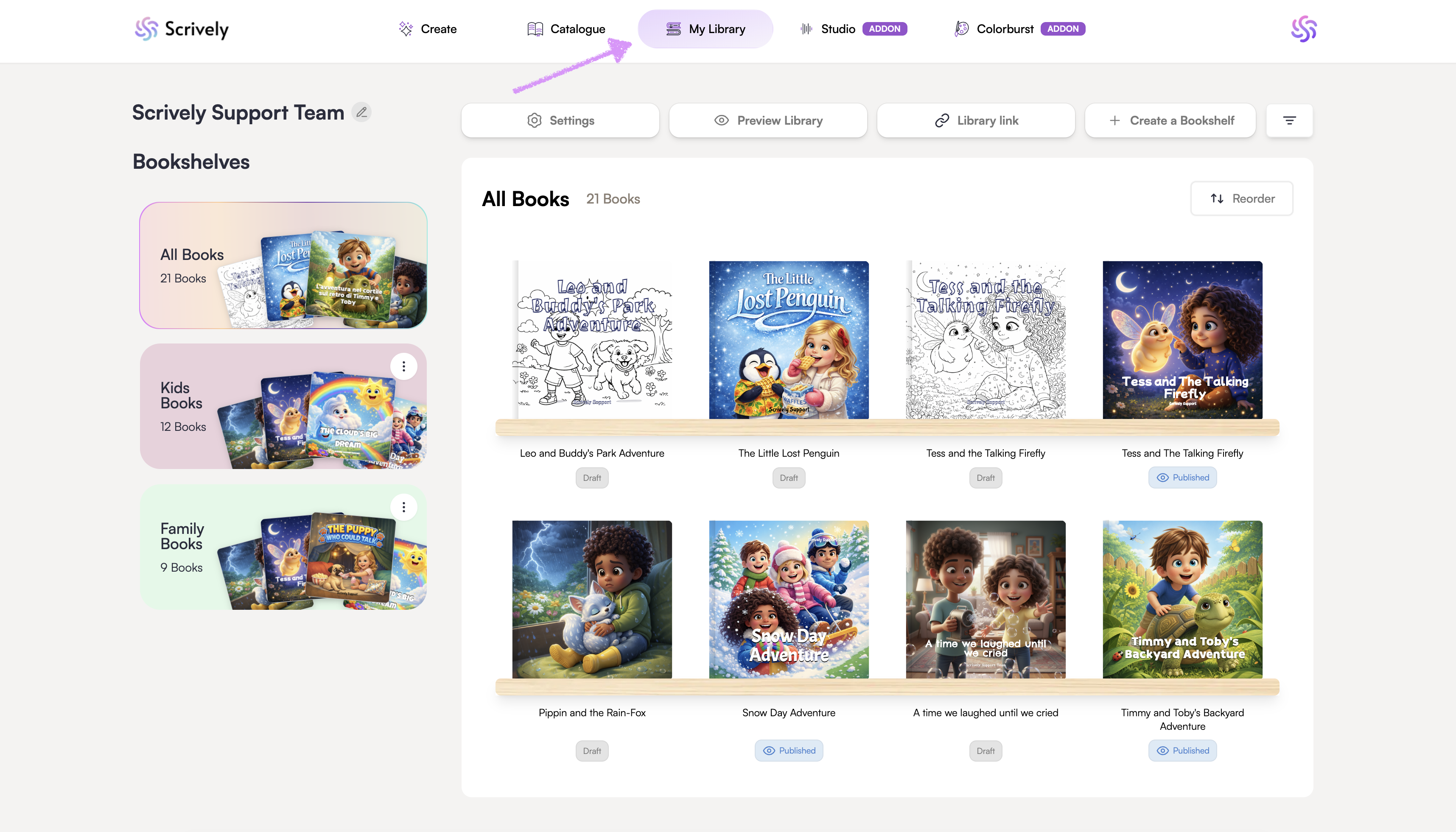 Head over to the "My Library" tab. A complete view of all books you’ve published will be displayed allowing you to browse and manage them with ease.