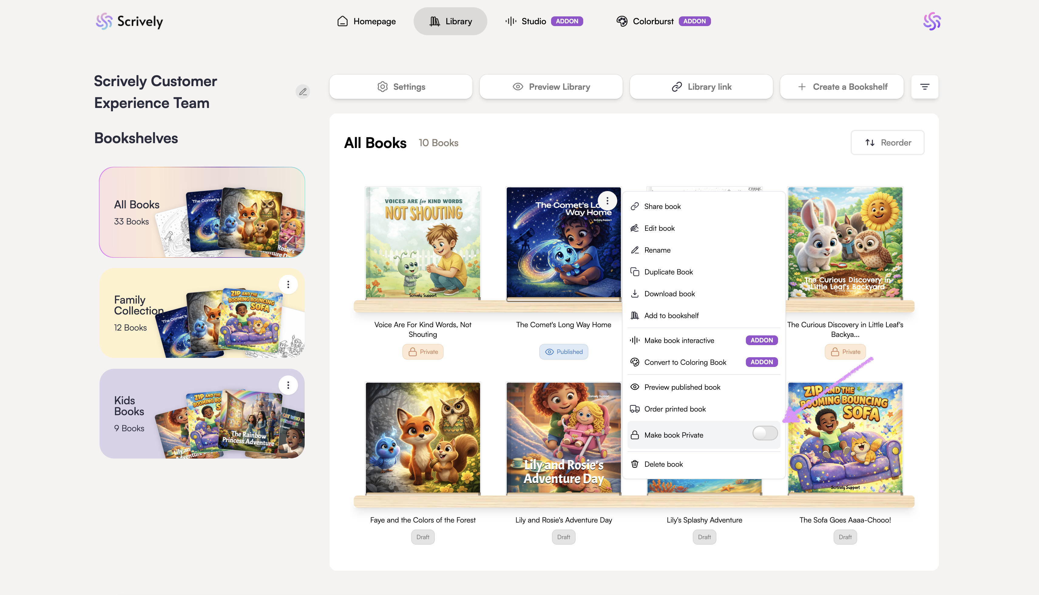 Sometimes you may want to take a book offline, whether to make updates or simply remove it from public view. Setting the book to private keeps your book stored safely in your account while removing it from the library for readers.