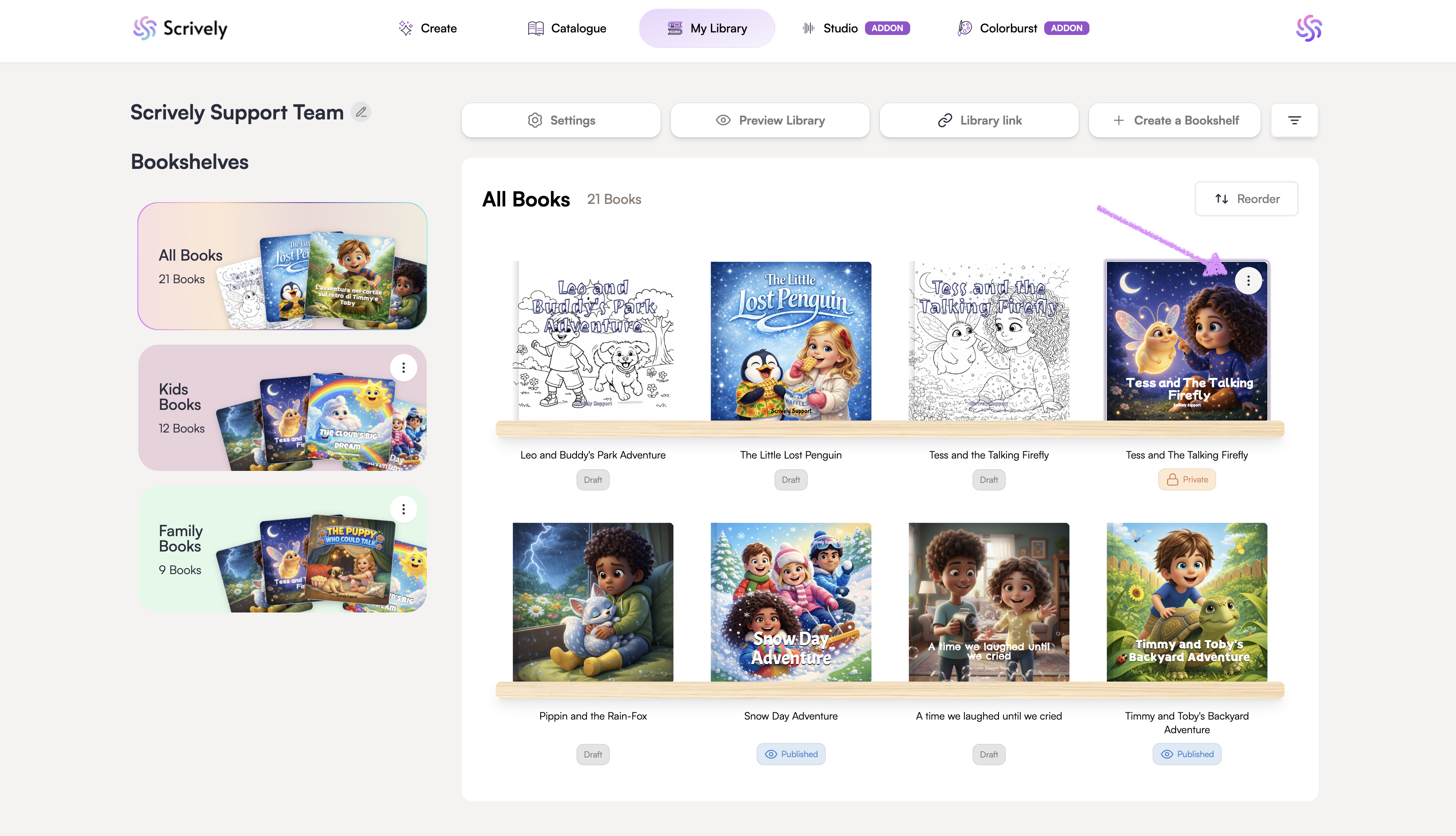 Sometimes you may want to take a book offline, whether to make updates or simply remove it from public view. Setting the book to private keeps your storybook stored safely in your account while removing it from the library for readers.