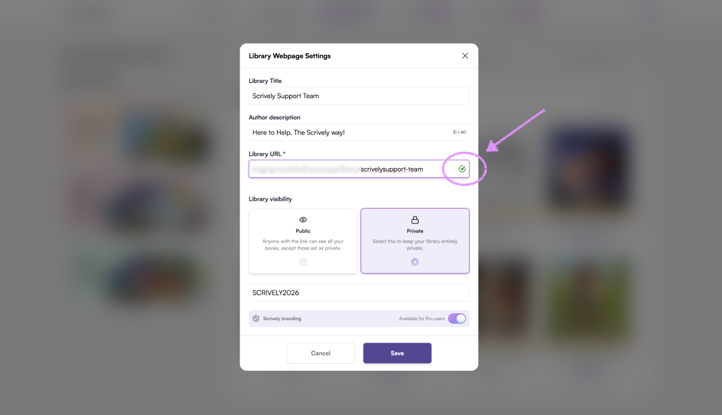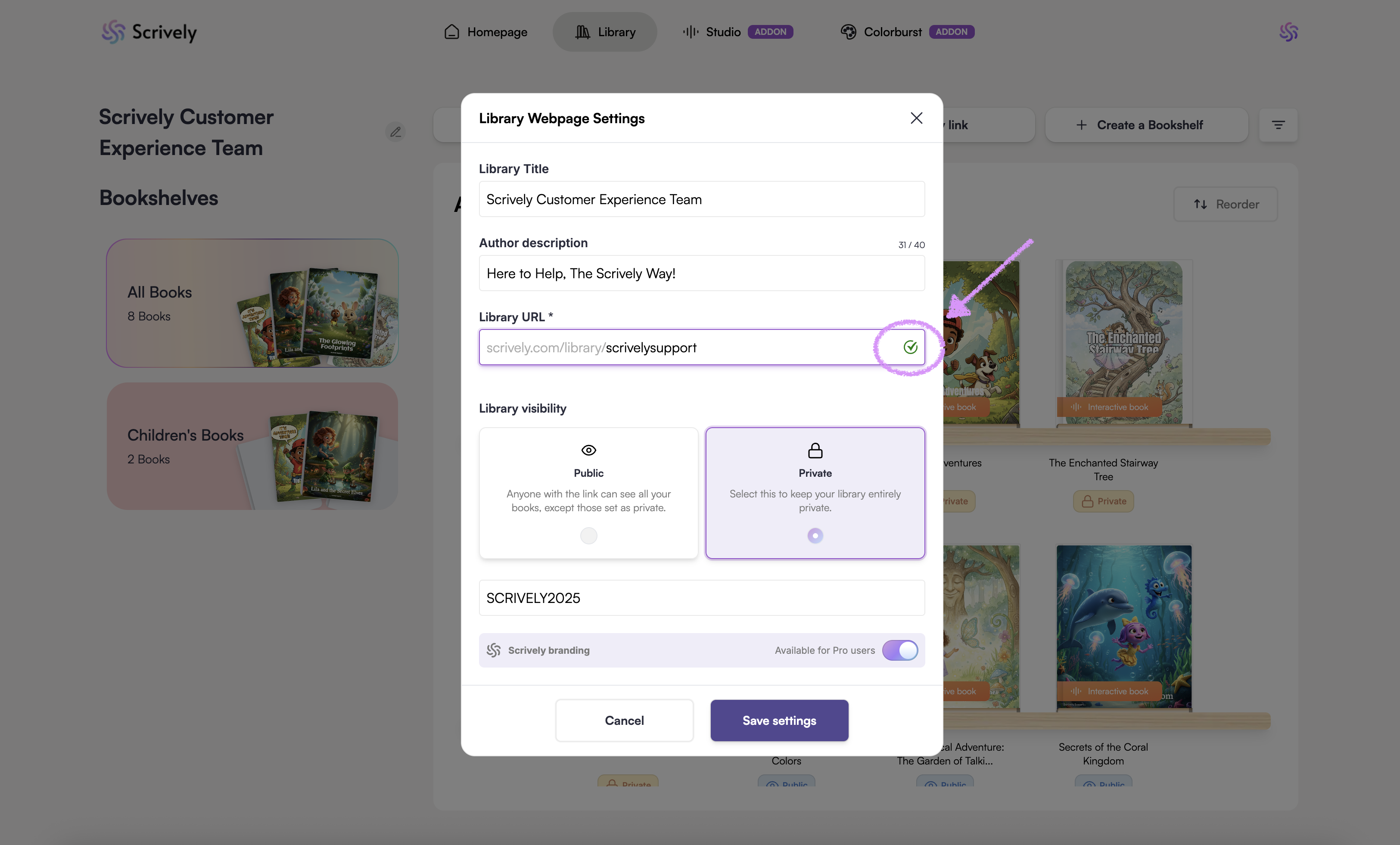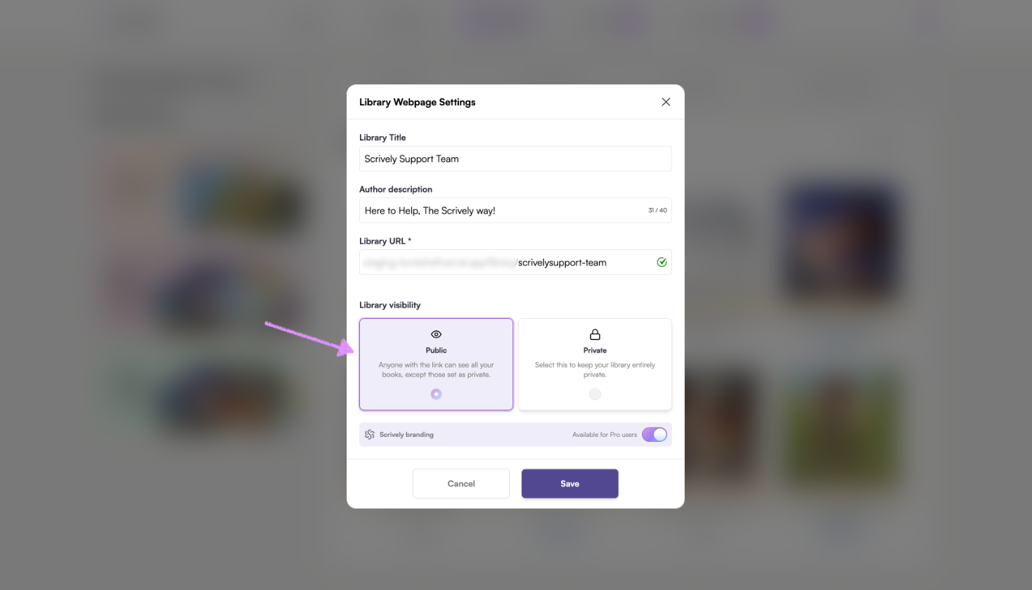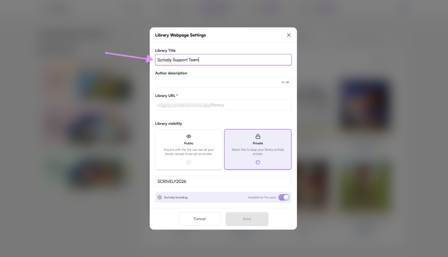 Pro users have the option to toggle the Scrively branding on/off for their library.