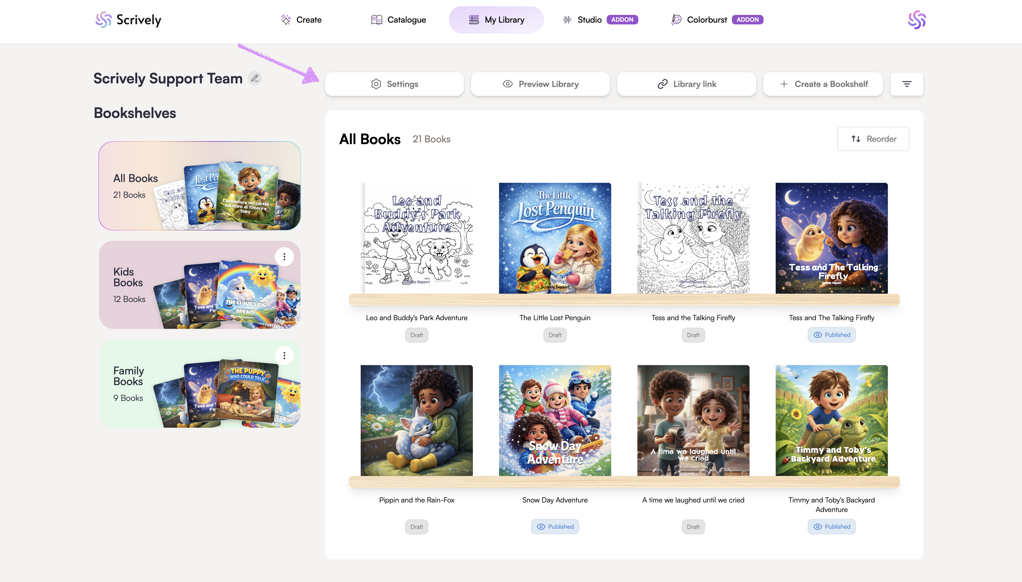 Your library is the hub where readers discover your published storybooks. Personalize its settings to reflect your style, control who can view your books, and make sharing simple.