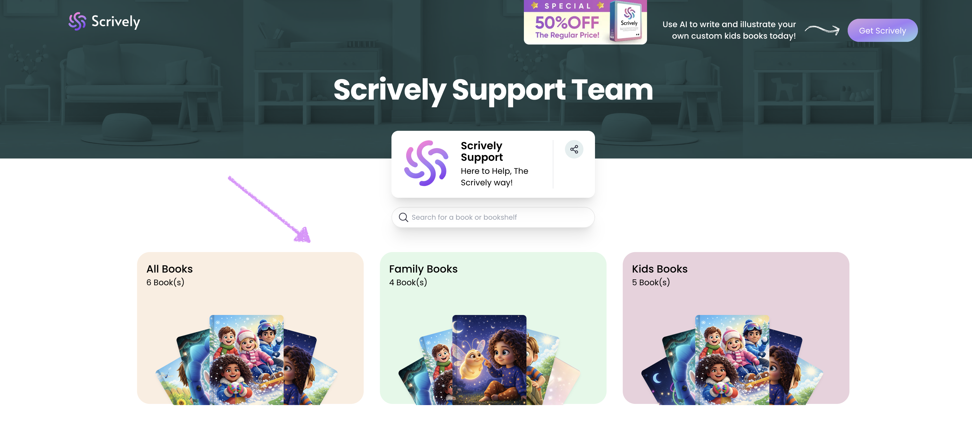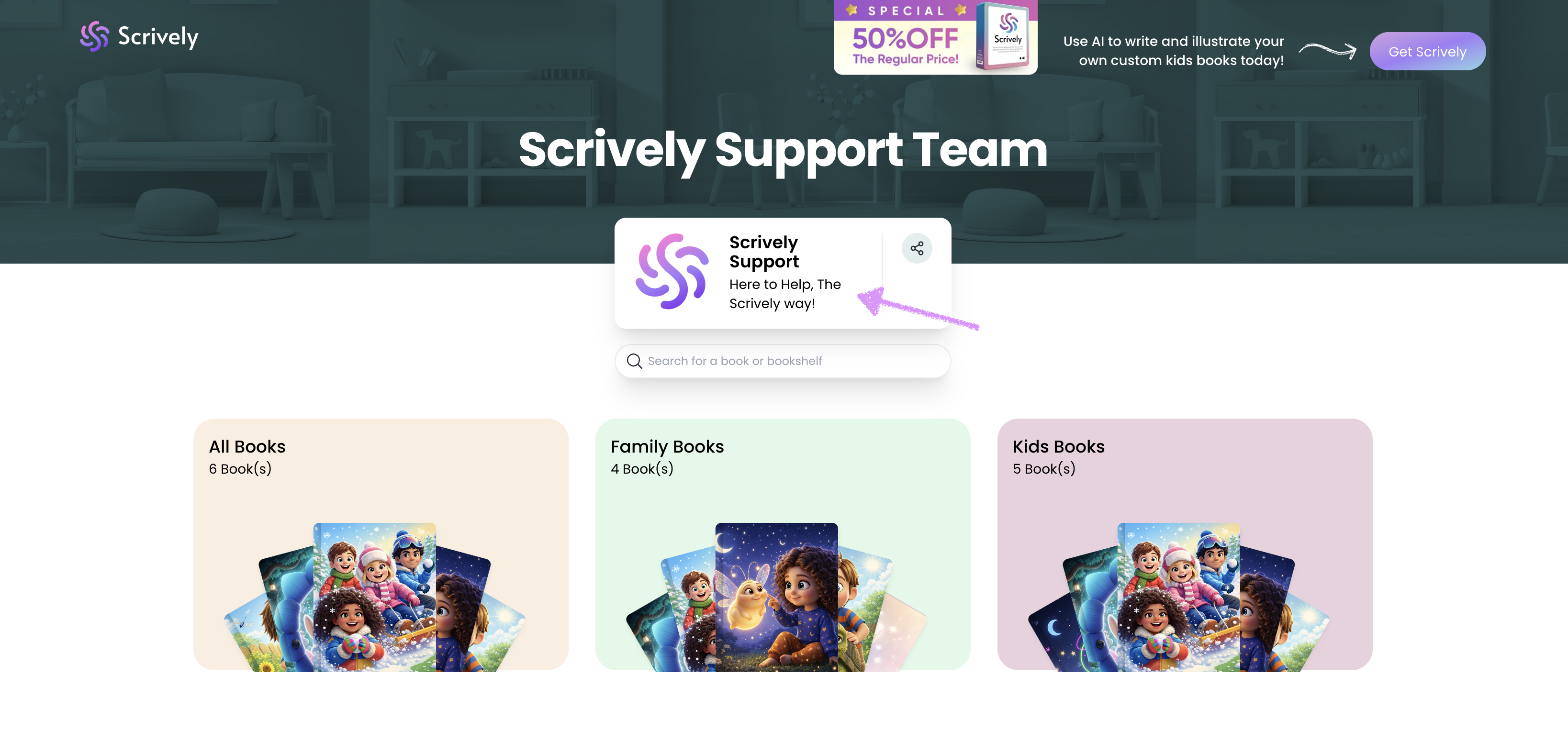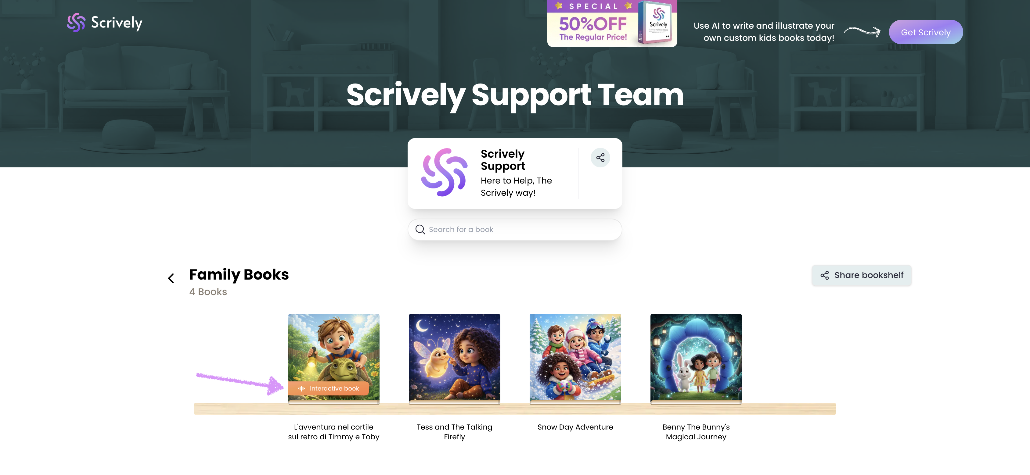If a book includes voiceover, background music, or interactive elements created in Scrively Studio, it will display the label “Interactive Book.”