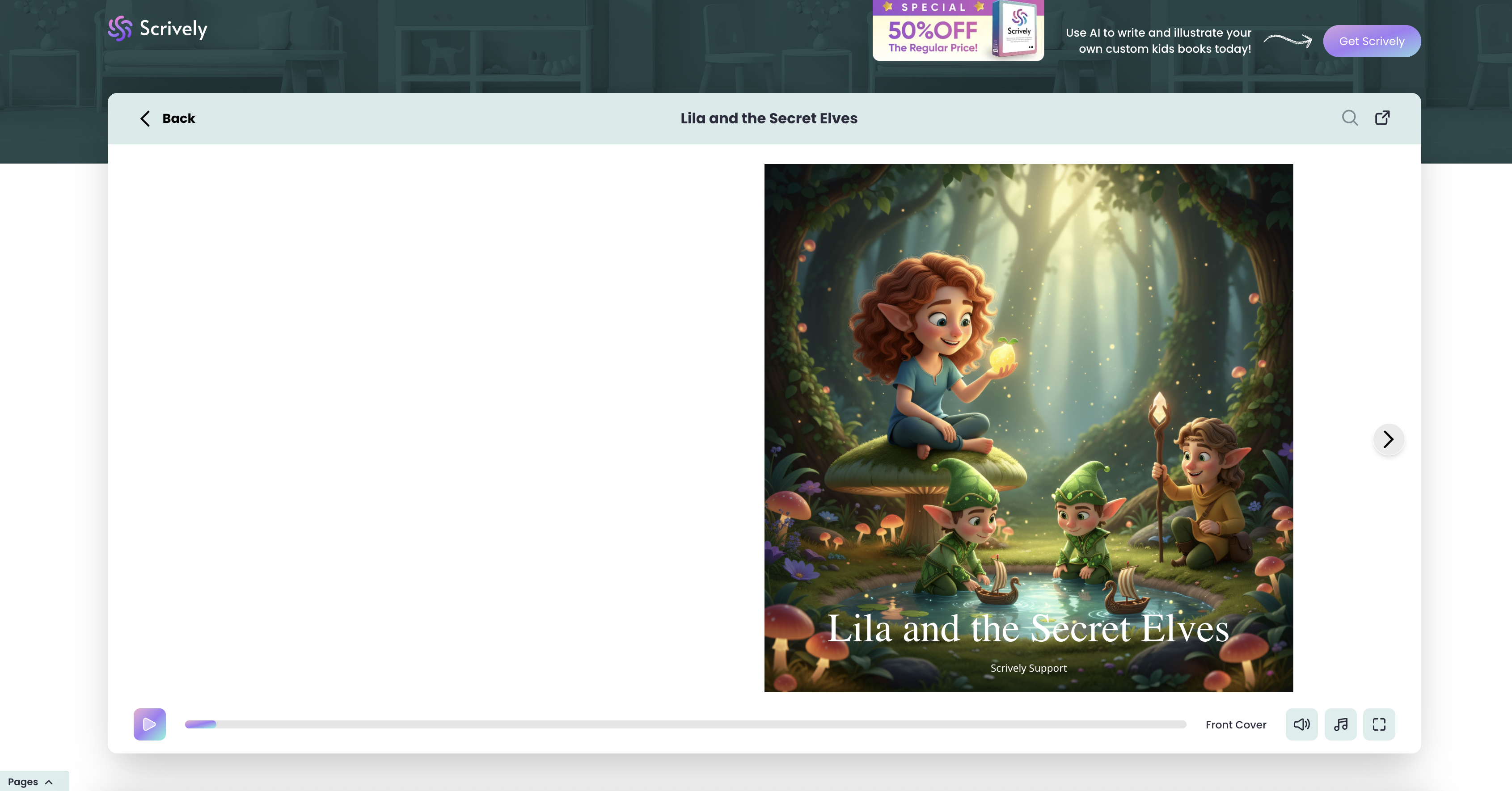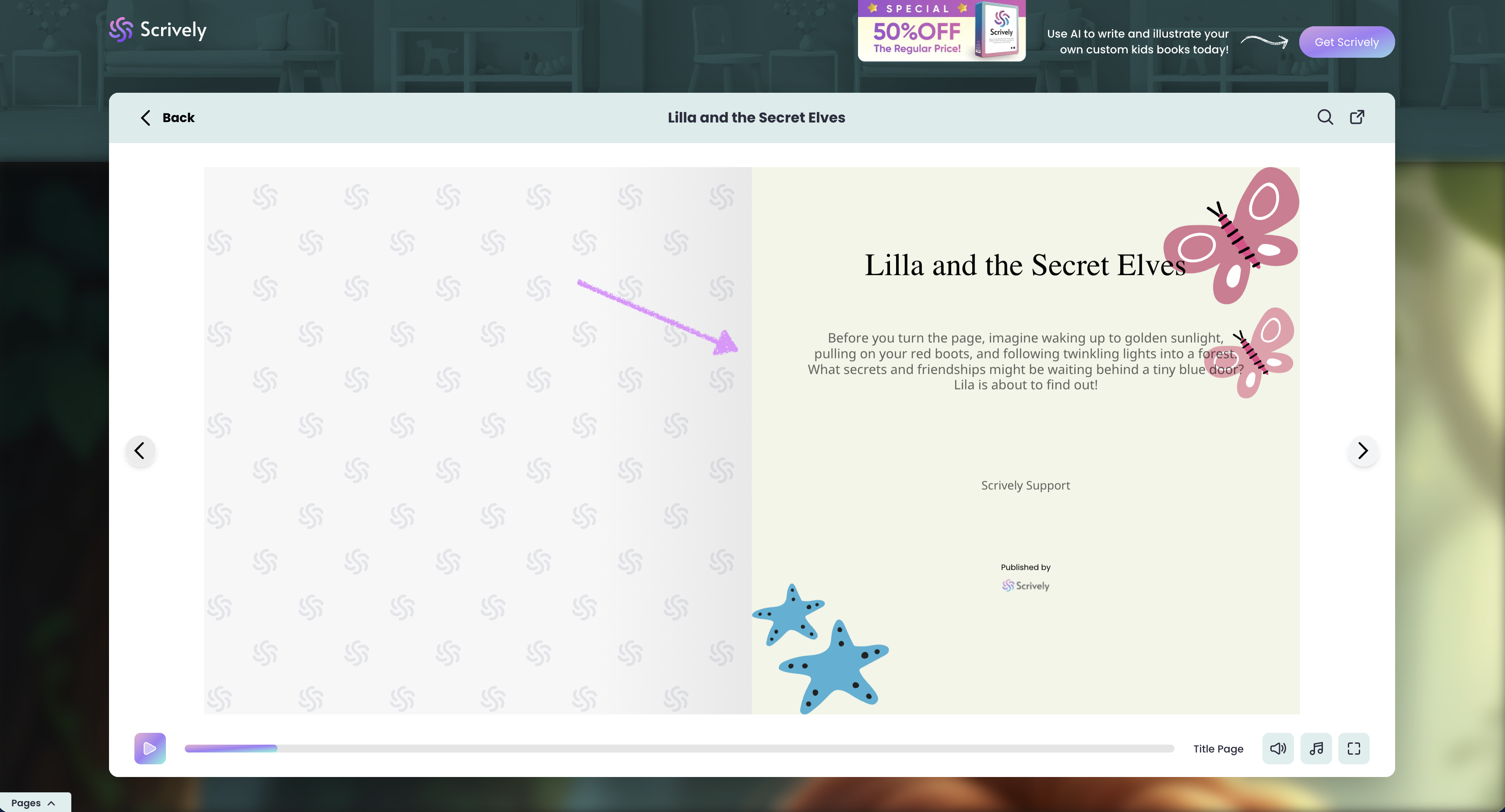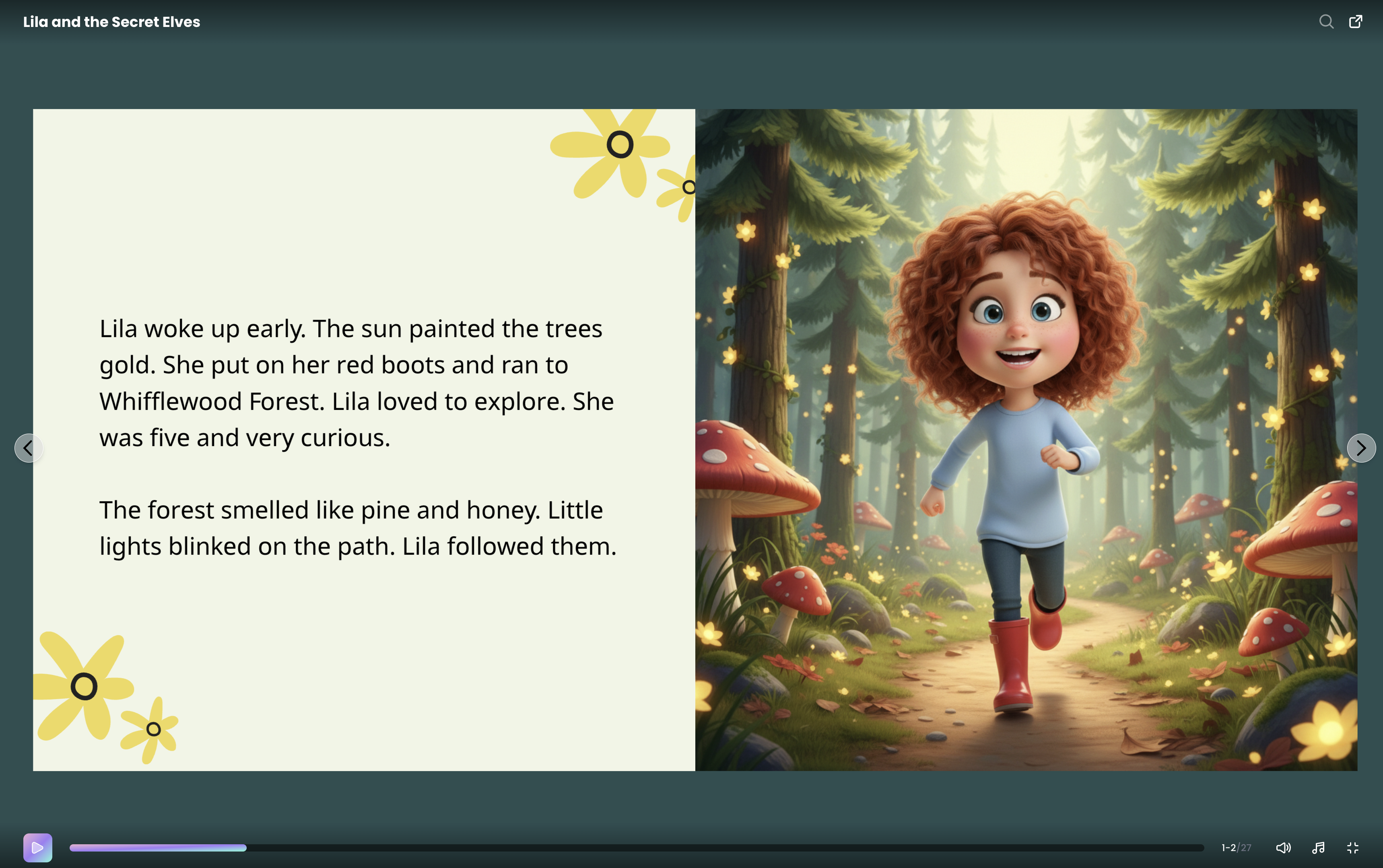 Clicking “Read book” opens the story in a two-page full view for an immersive reading experience.