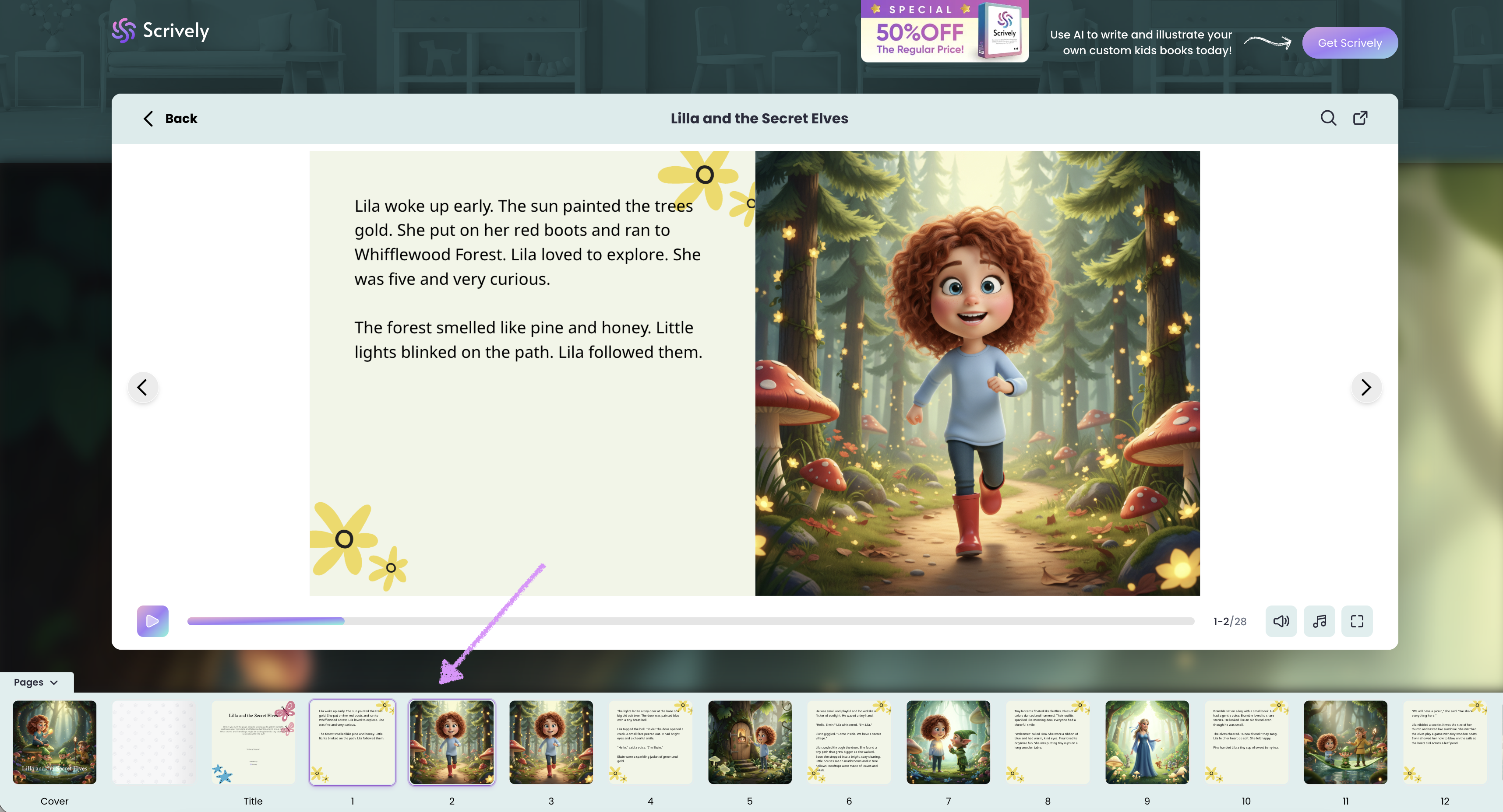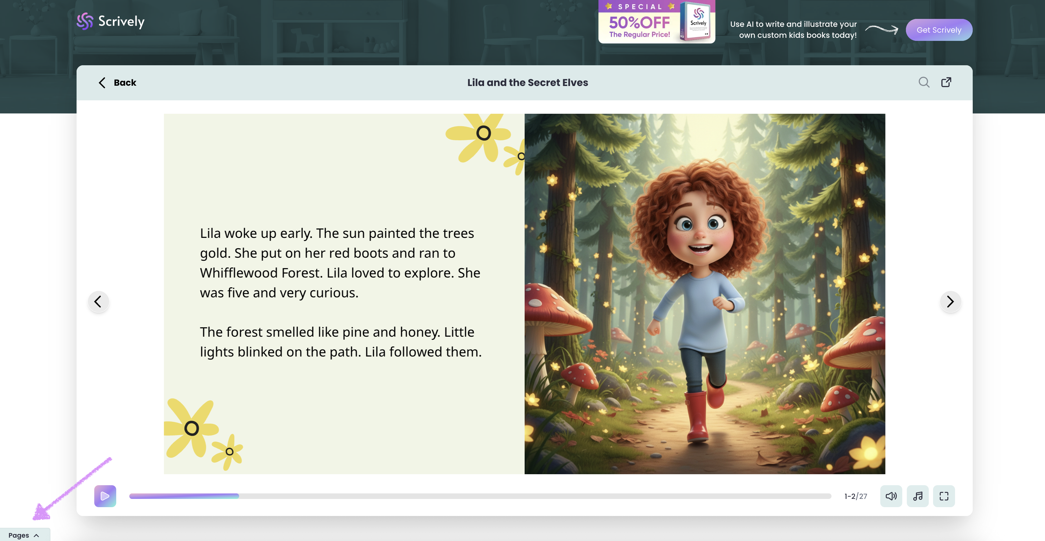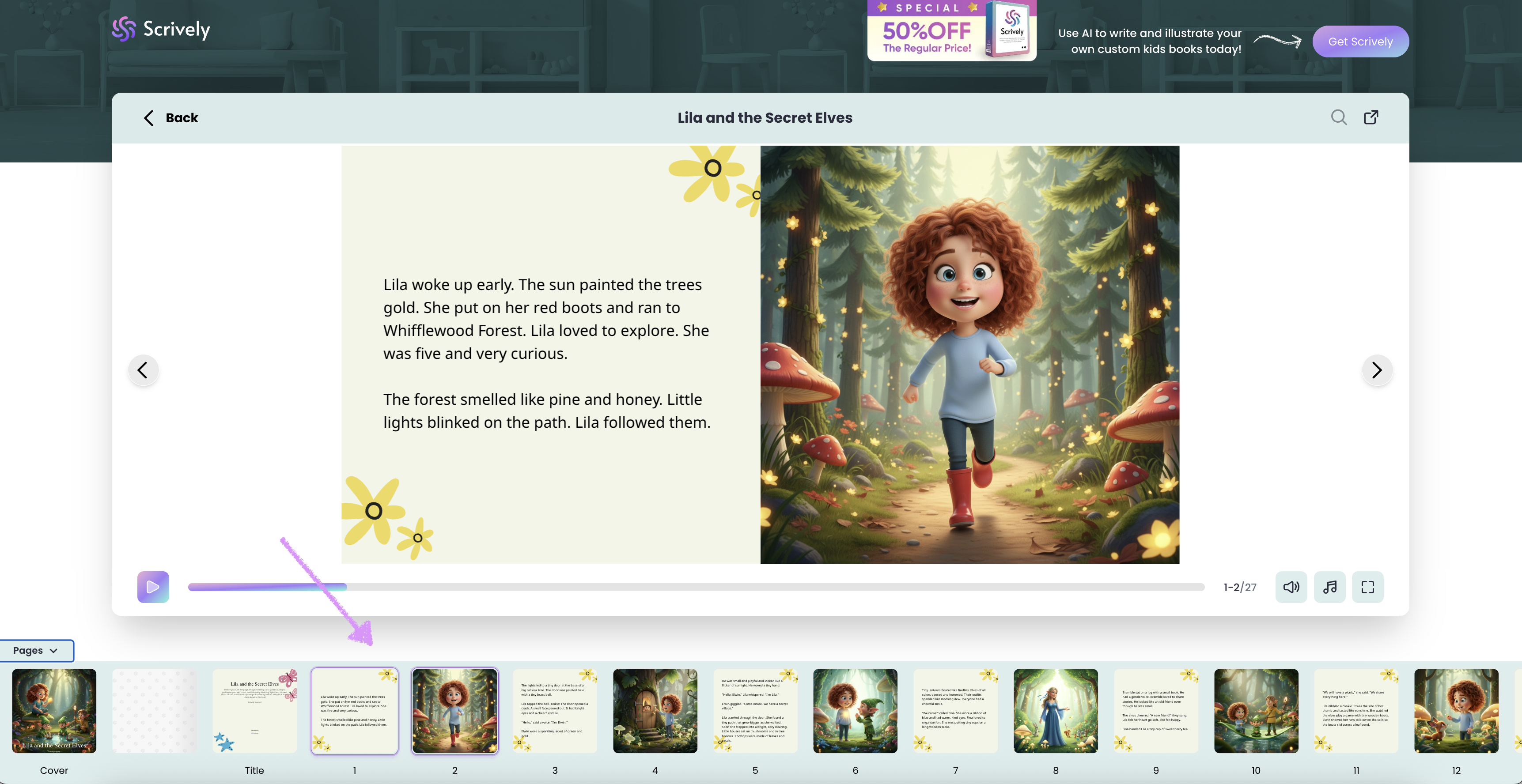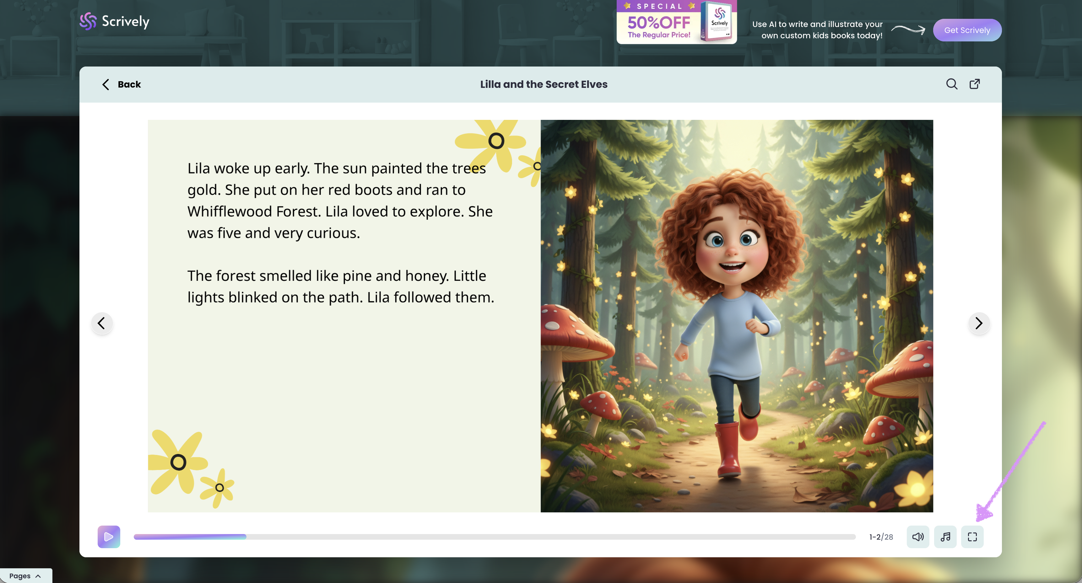 Clicking “Read book” opens the story in a two-page full view for an immersive reading experience.
