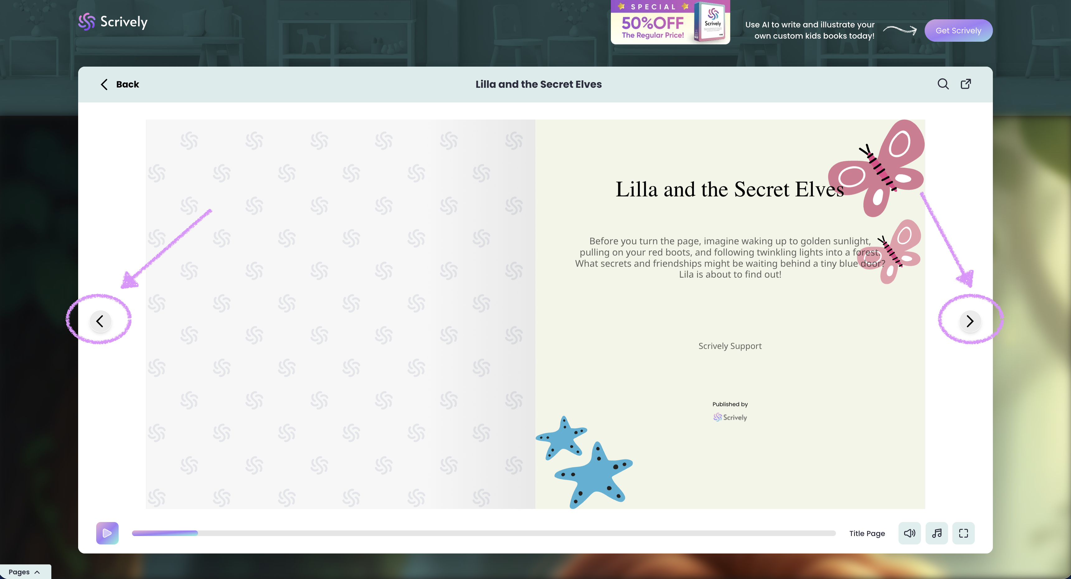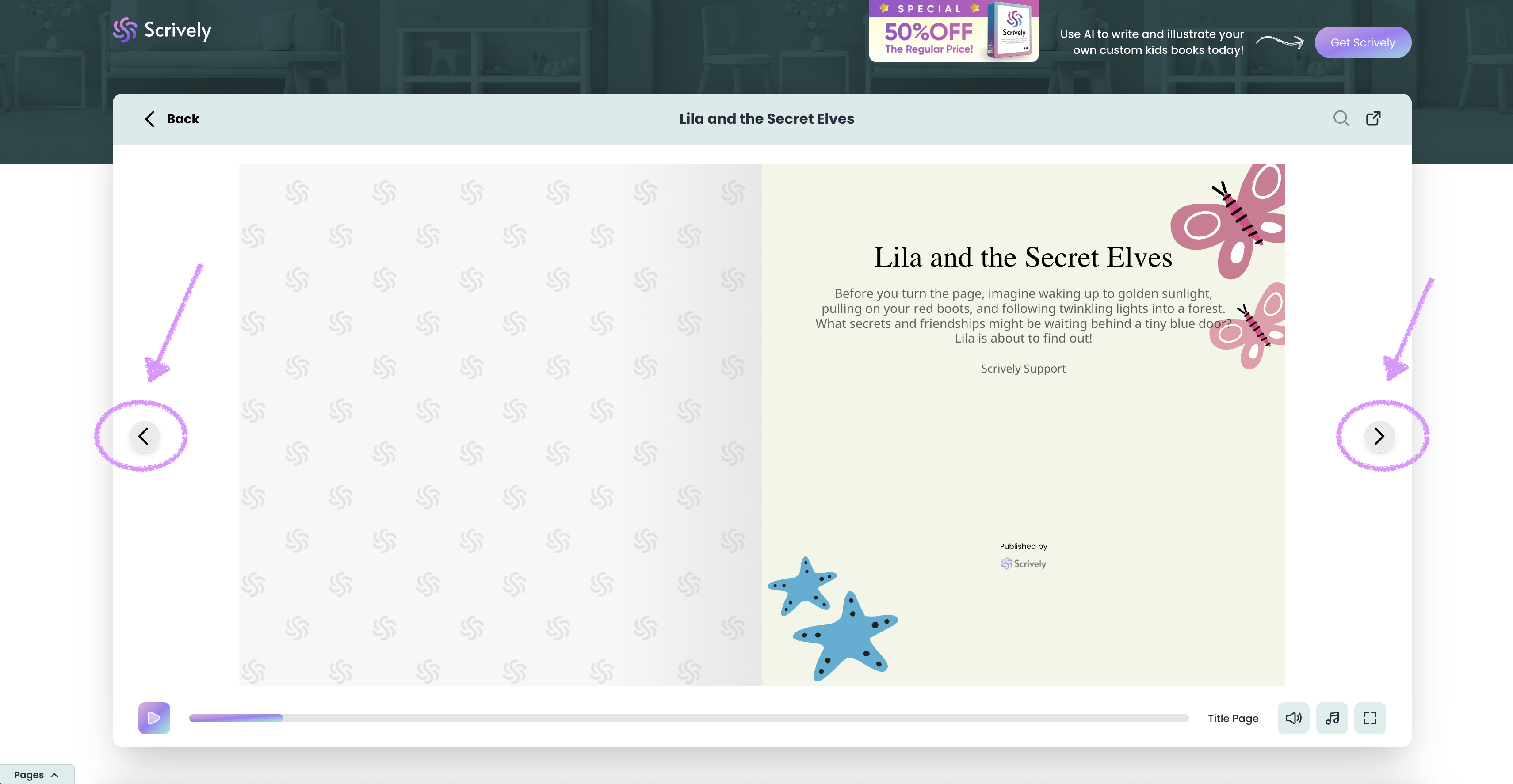 Use the left and right arrows to navigate manually through the book’s pages at your own pace.