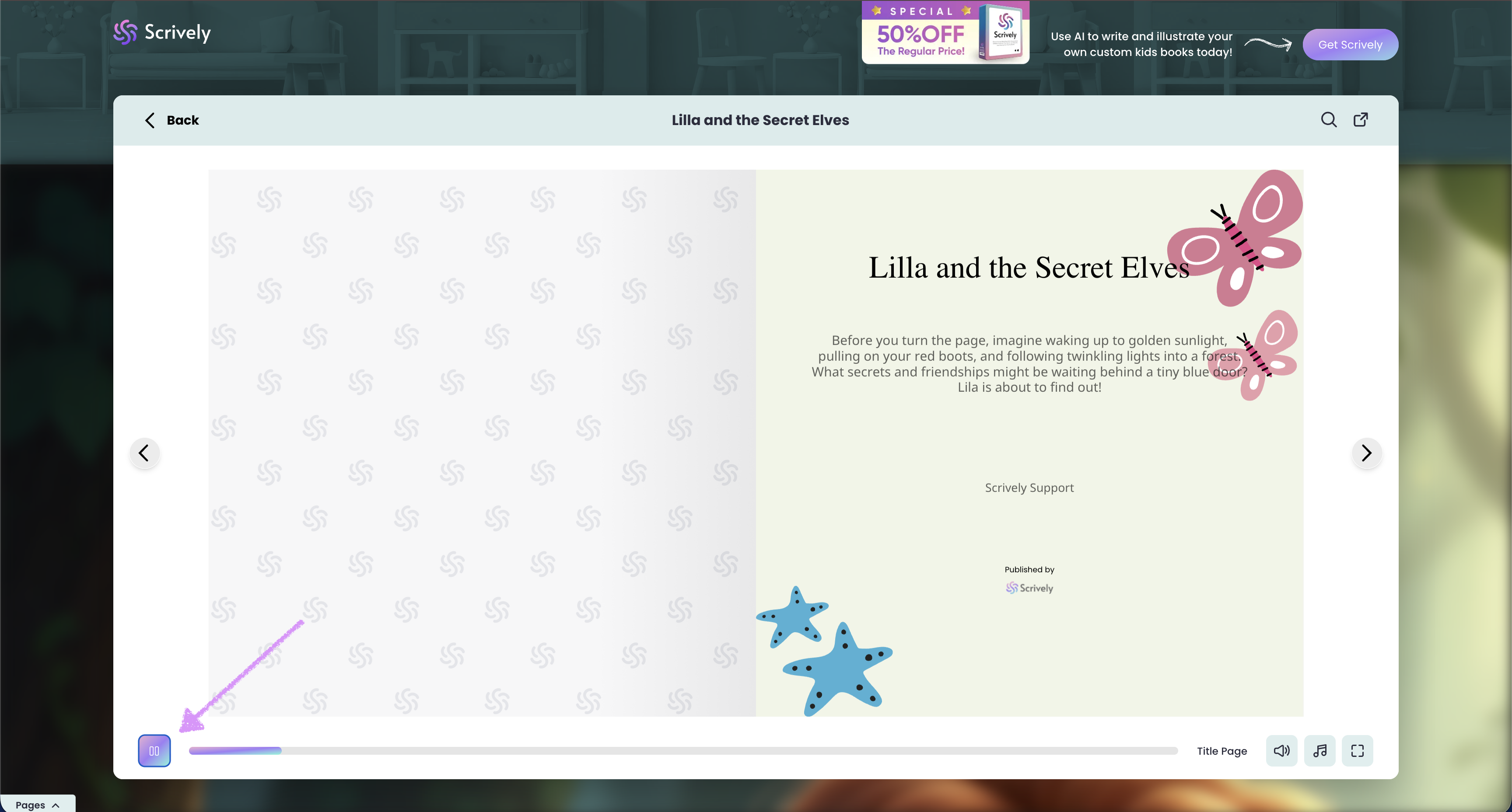 Readers can dive into your published books directly from your library by accessing your bookshelves. Every book is just a click away, complete with interactive elements for a rich reading experience.