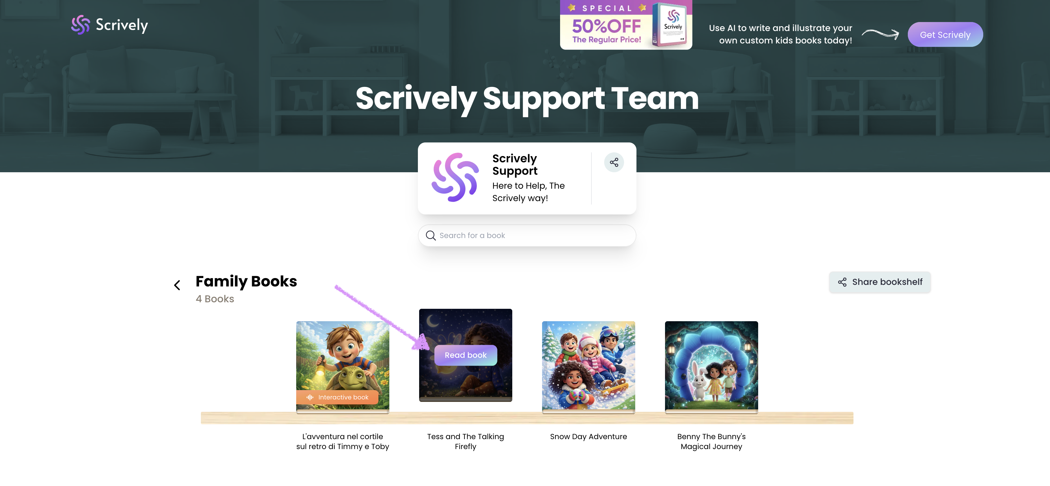 Readers can dive into your published books directly from your library by accessing your bookshelves. Every book is just a click away, complete with interactive elements for a rich reading experience.
