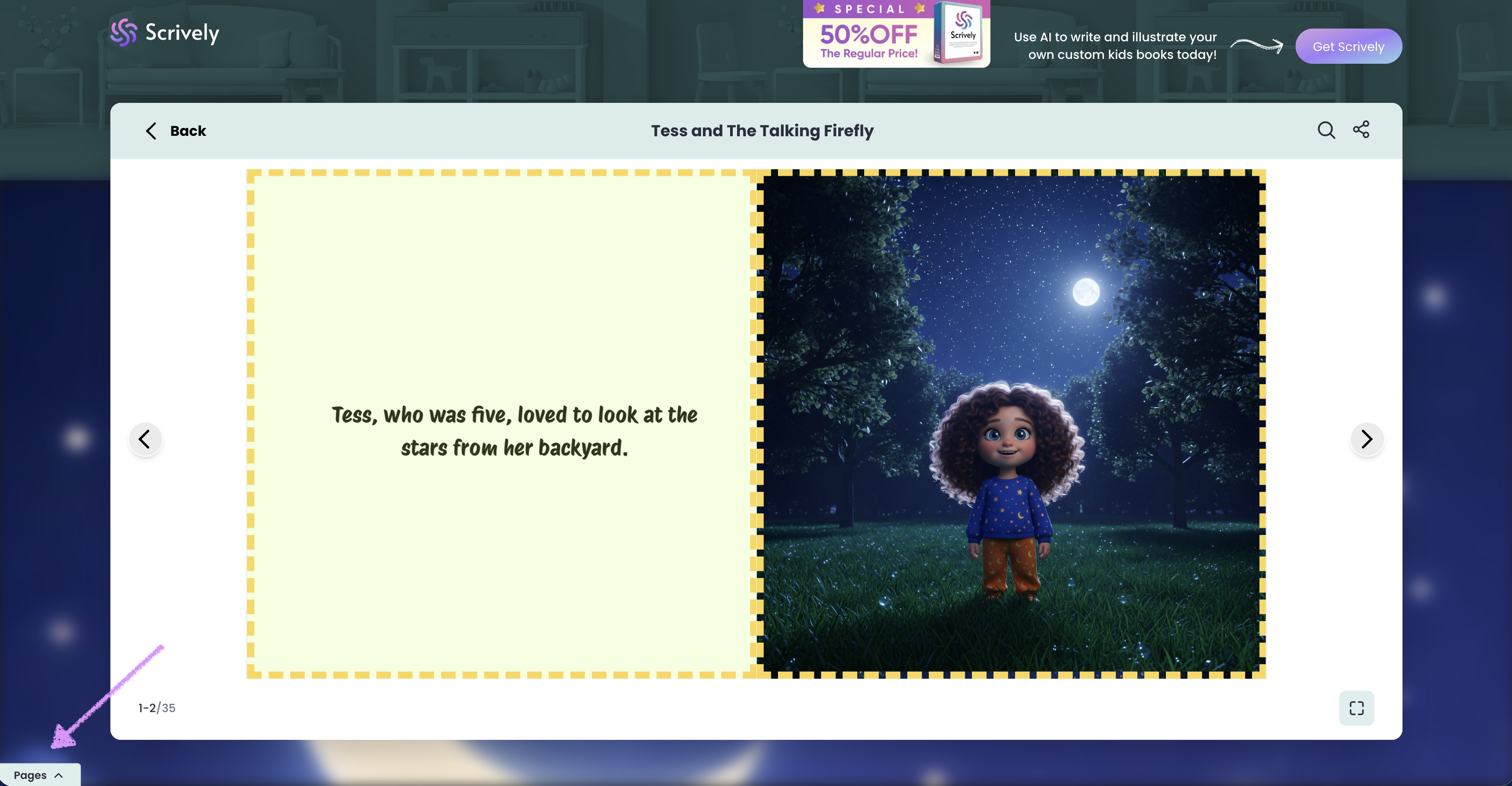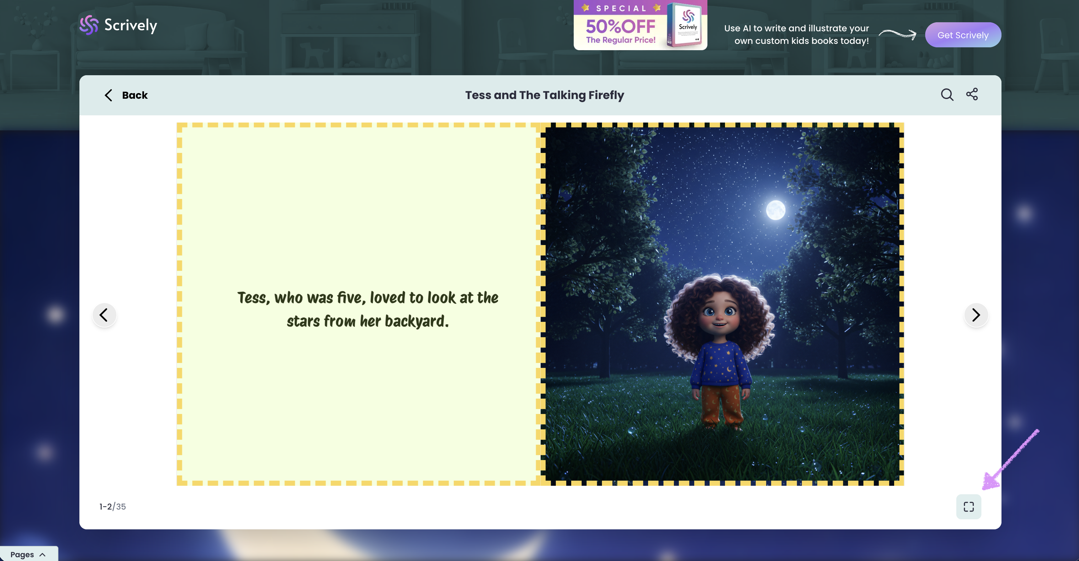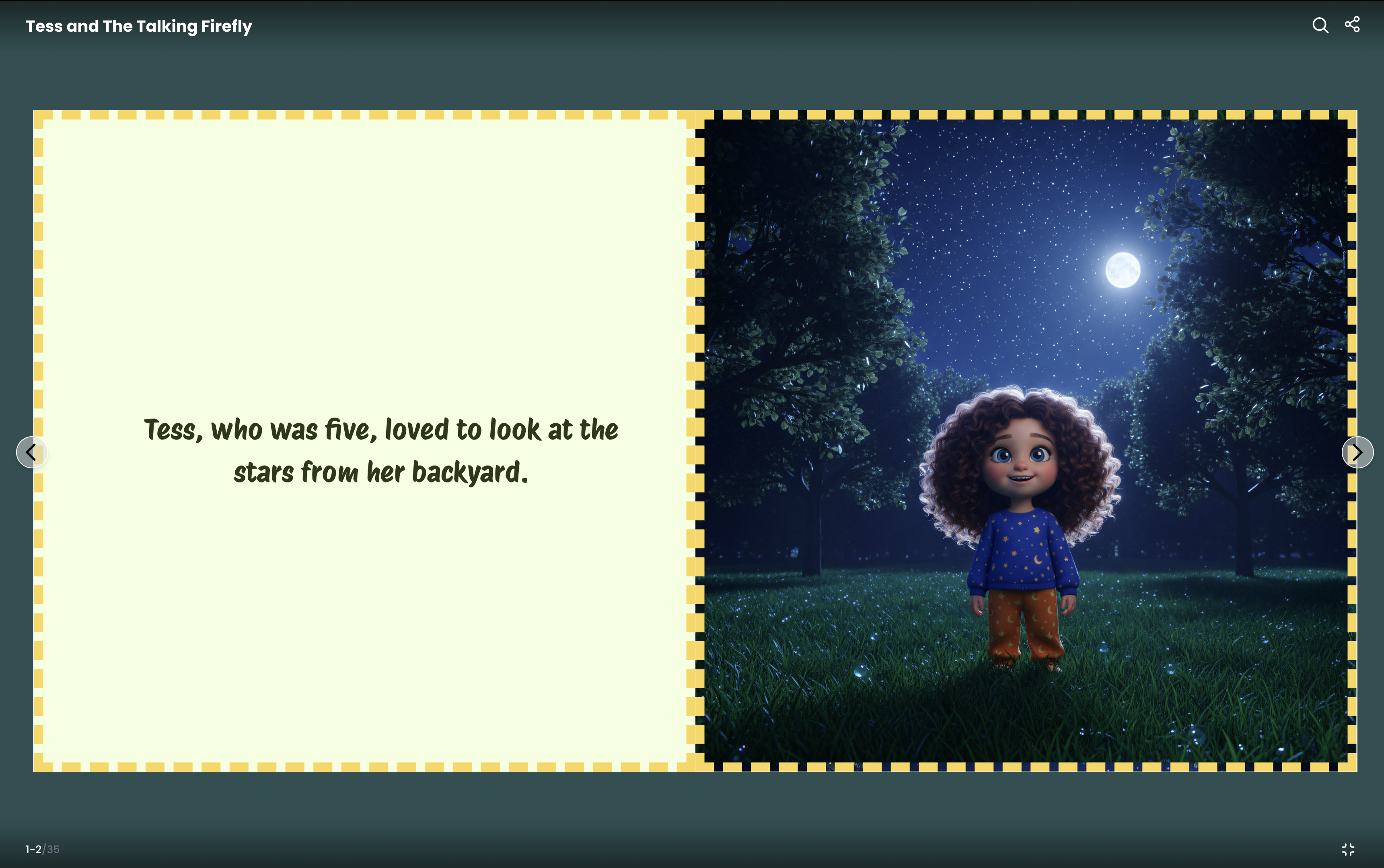 Clicking “Read book” opens the story in a two-page full view for an immersive reading experience.