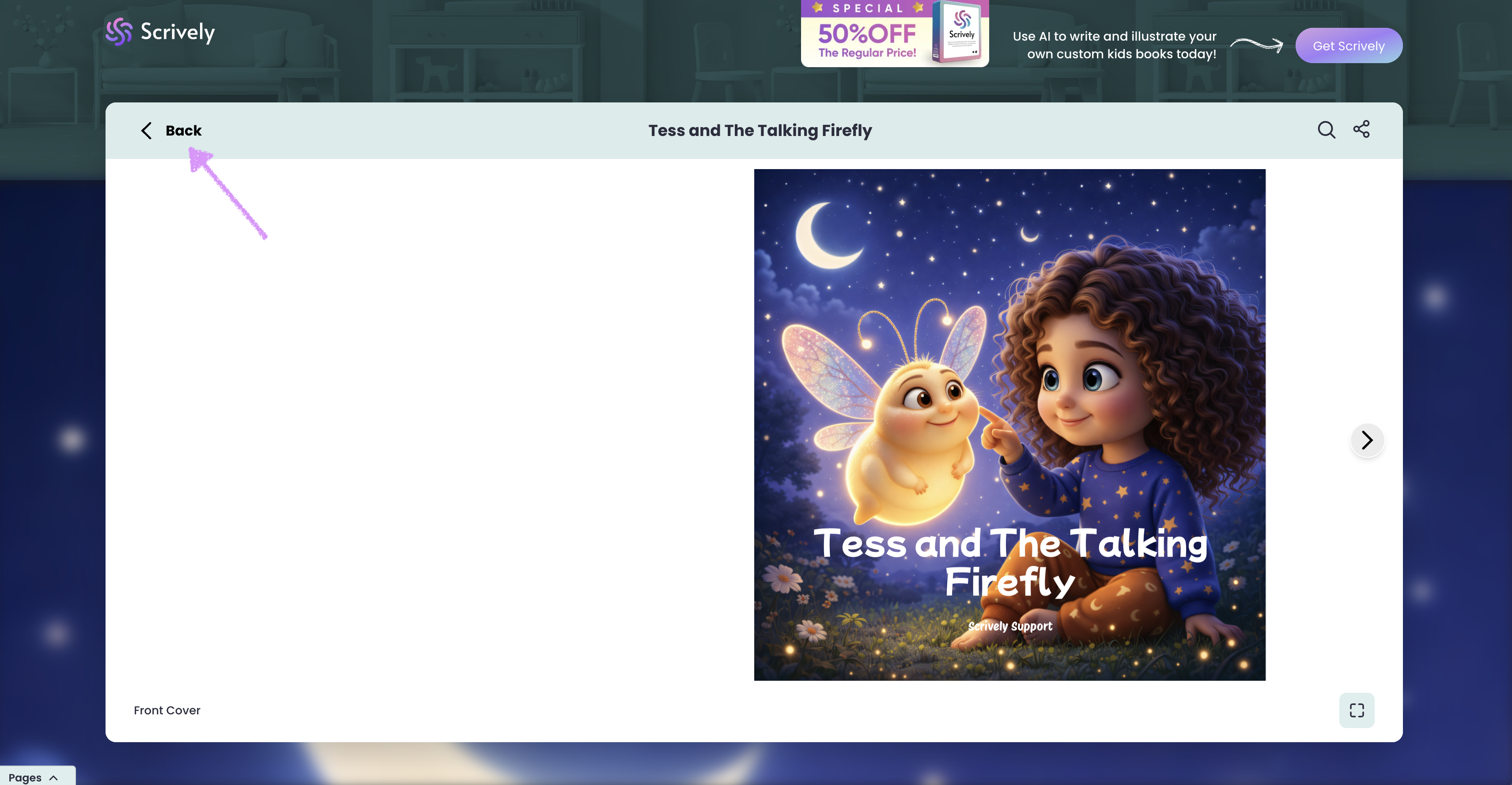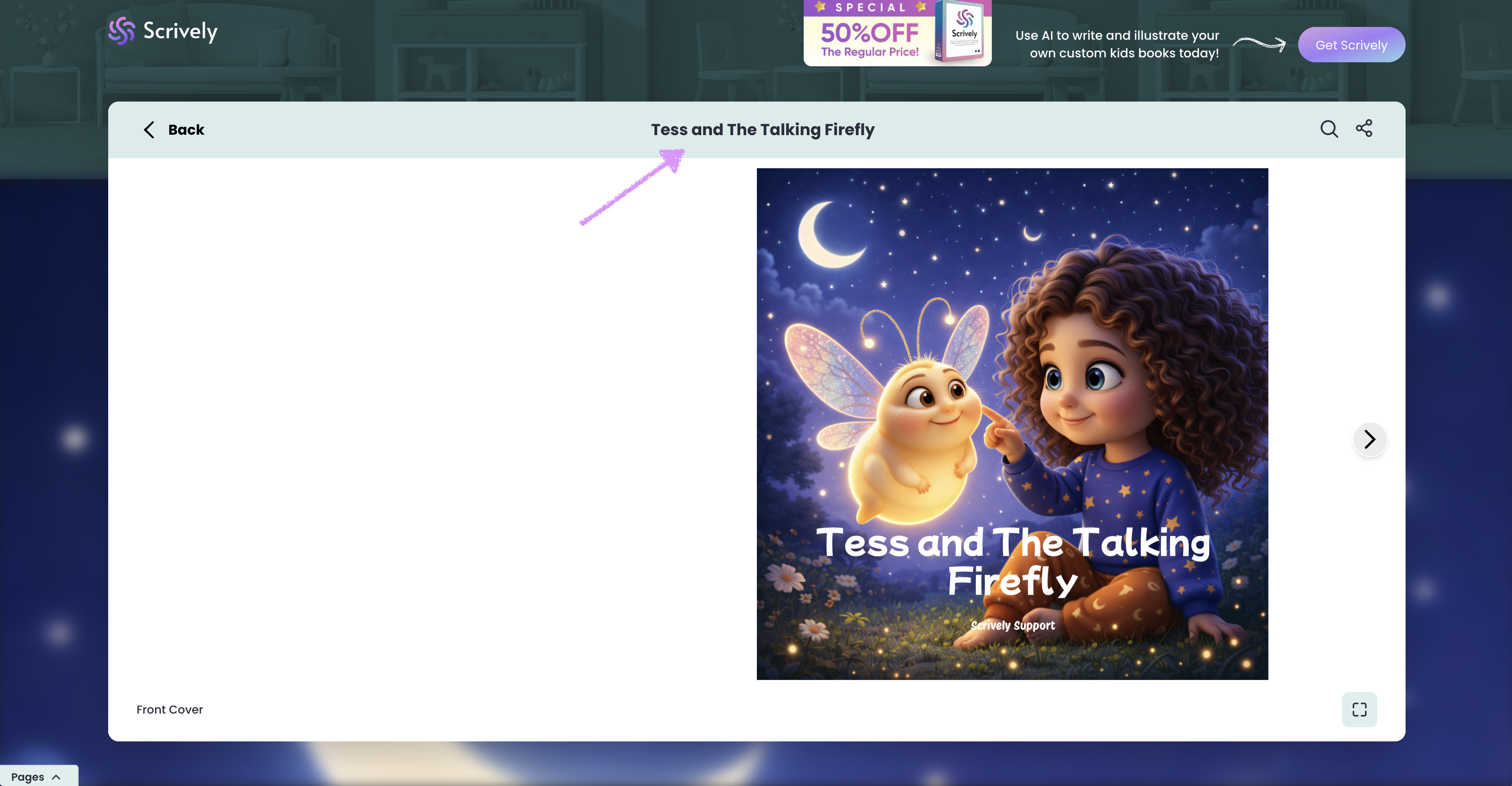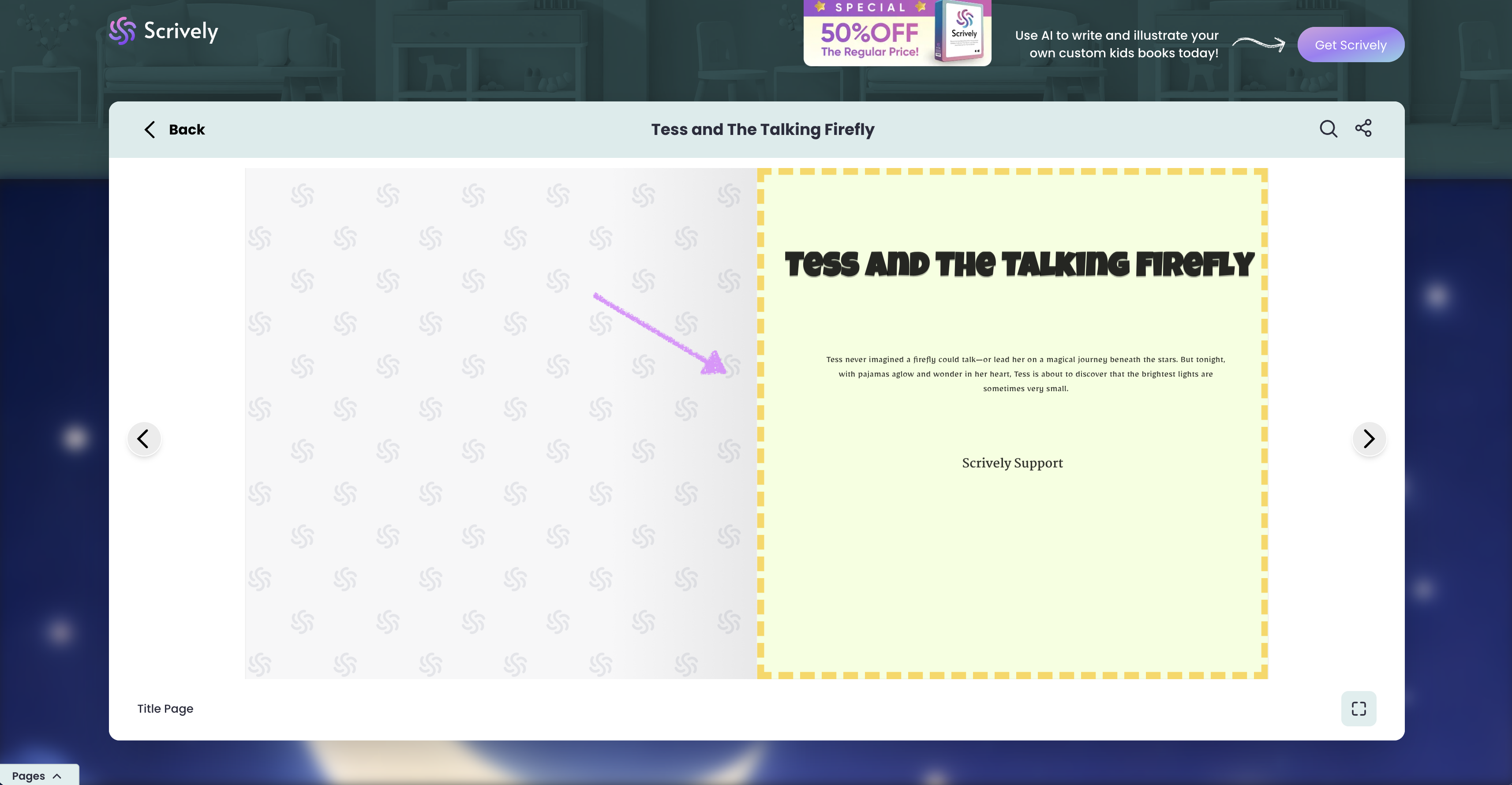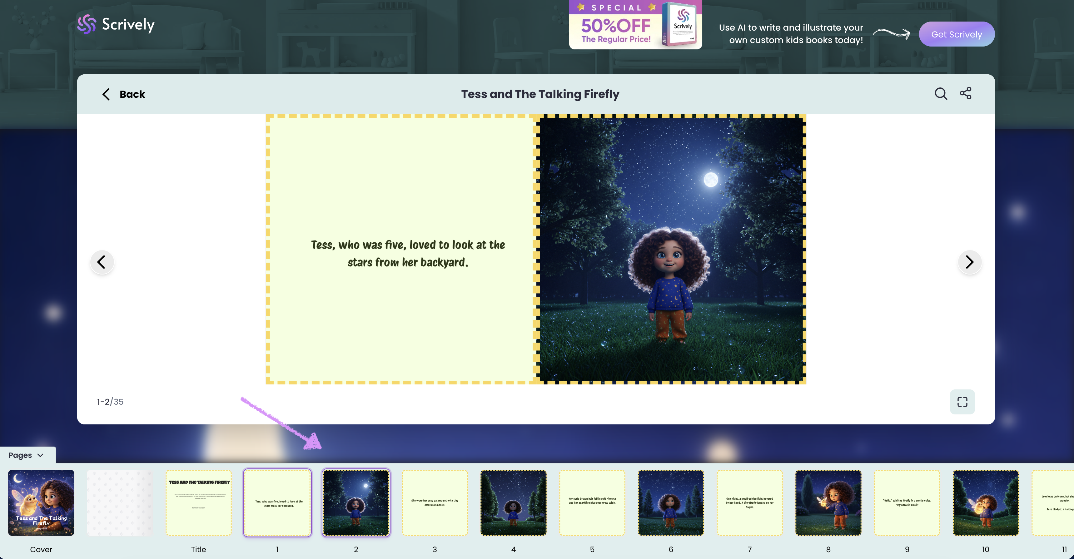 Clicking “Read book” opens the story in a two-page full view for an immersive reading experience.