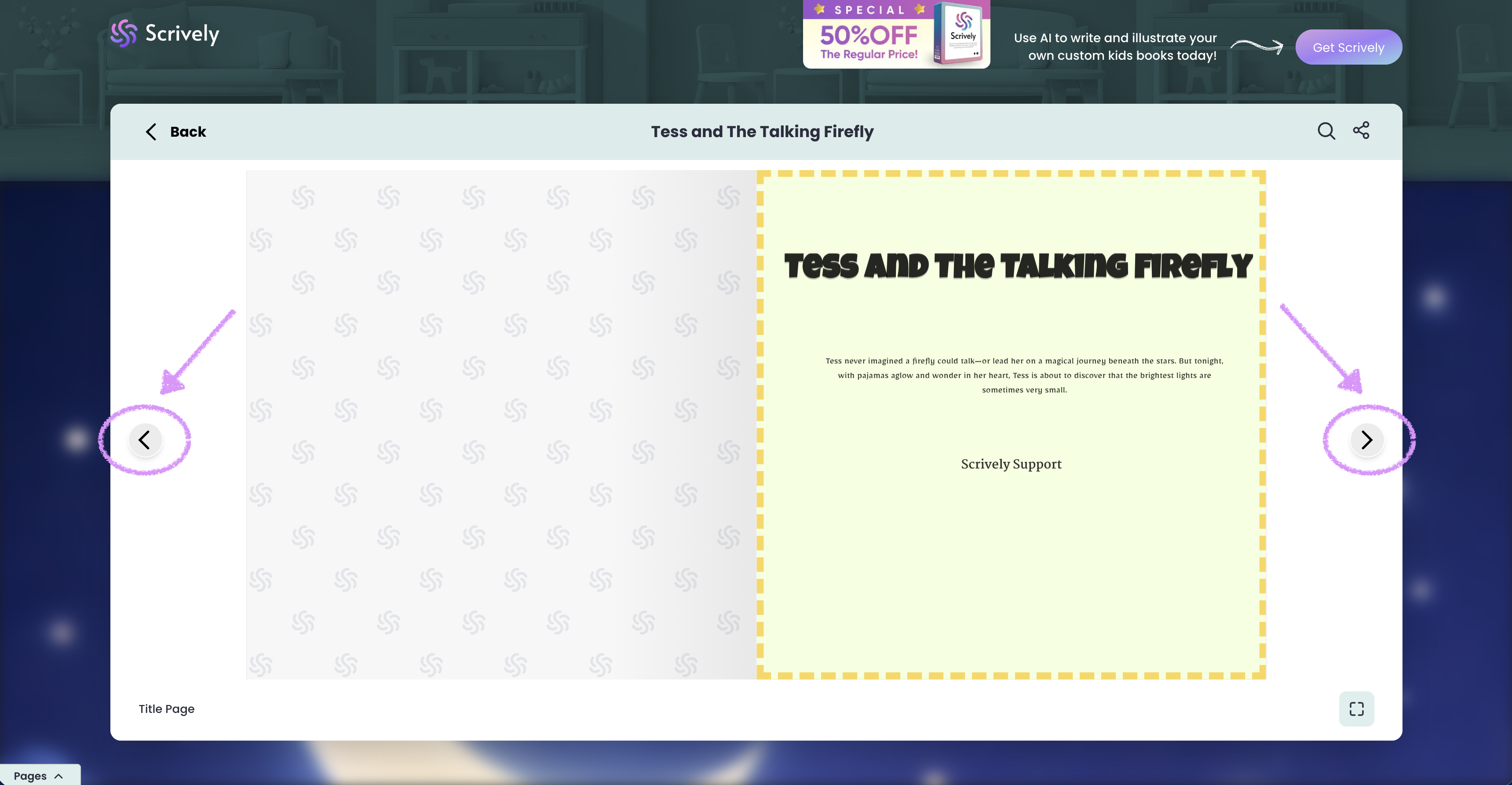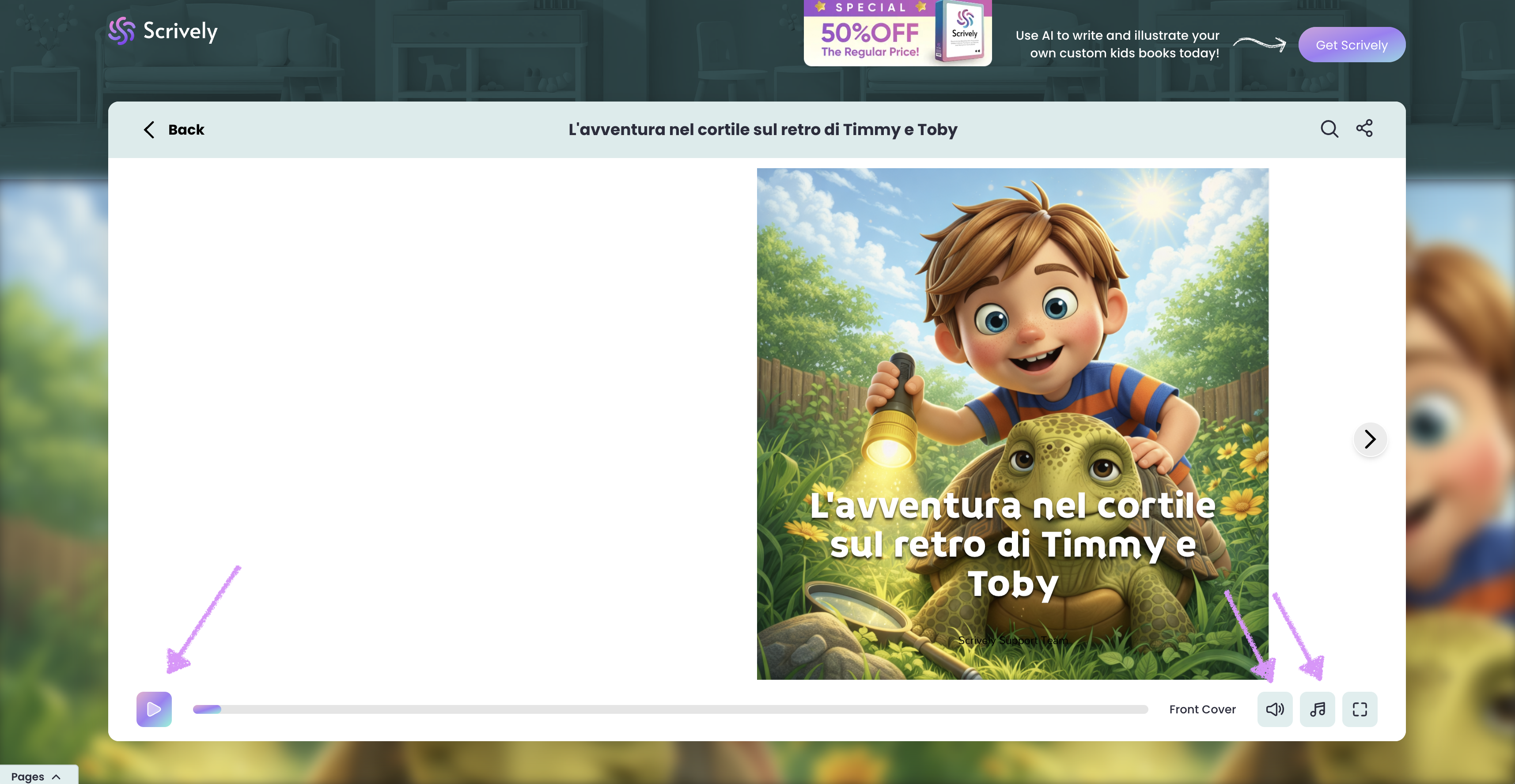 Use the left and right arrows to navigate manually through the book’s pages at your own pace.