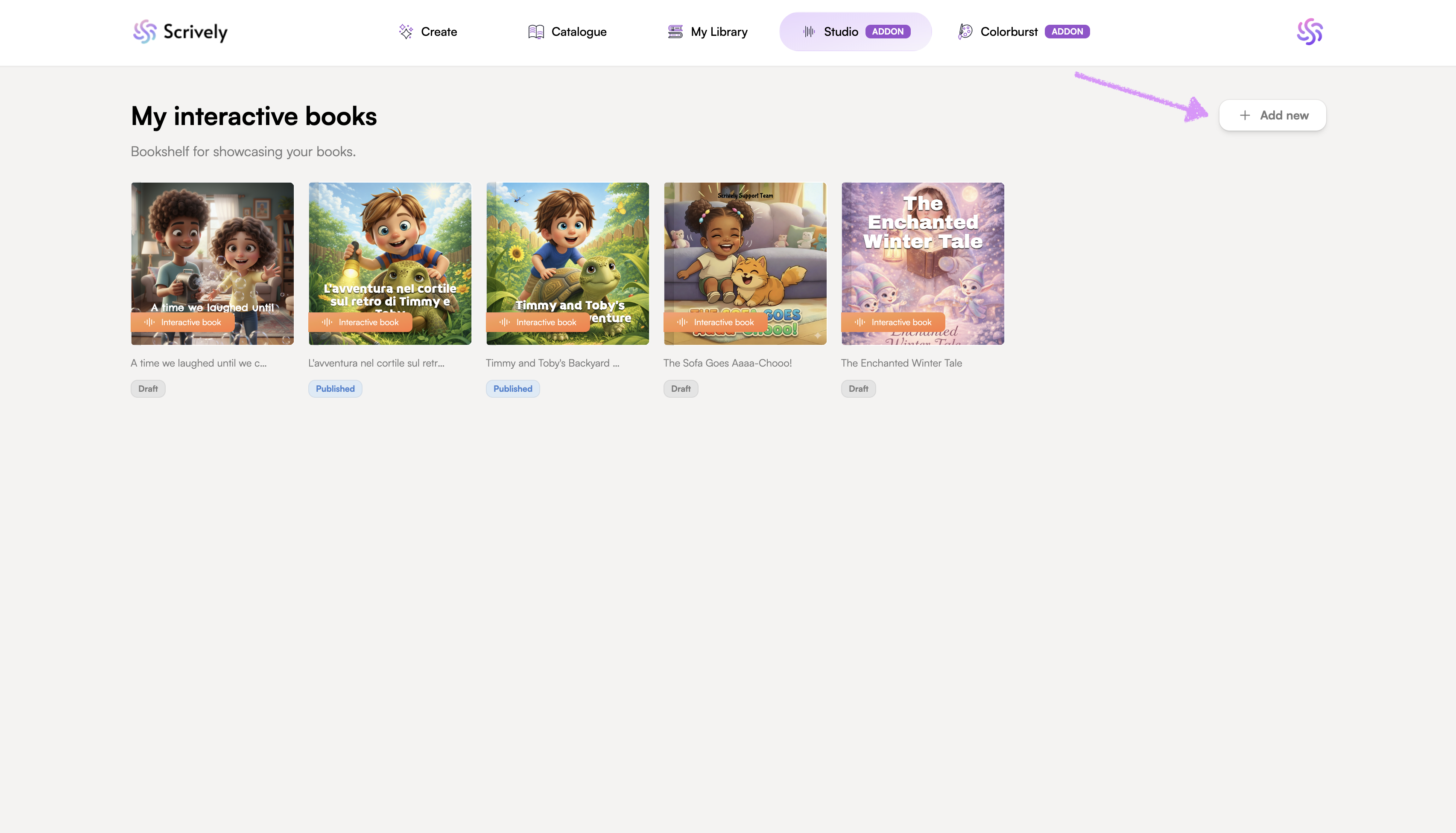 Adding a storybook to Scrively Studio opens up new creative possibilities. Bring your stories to life by incorporating audio, music, and interactive elements that engage readers.