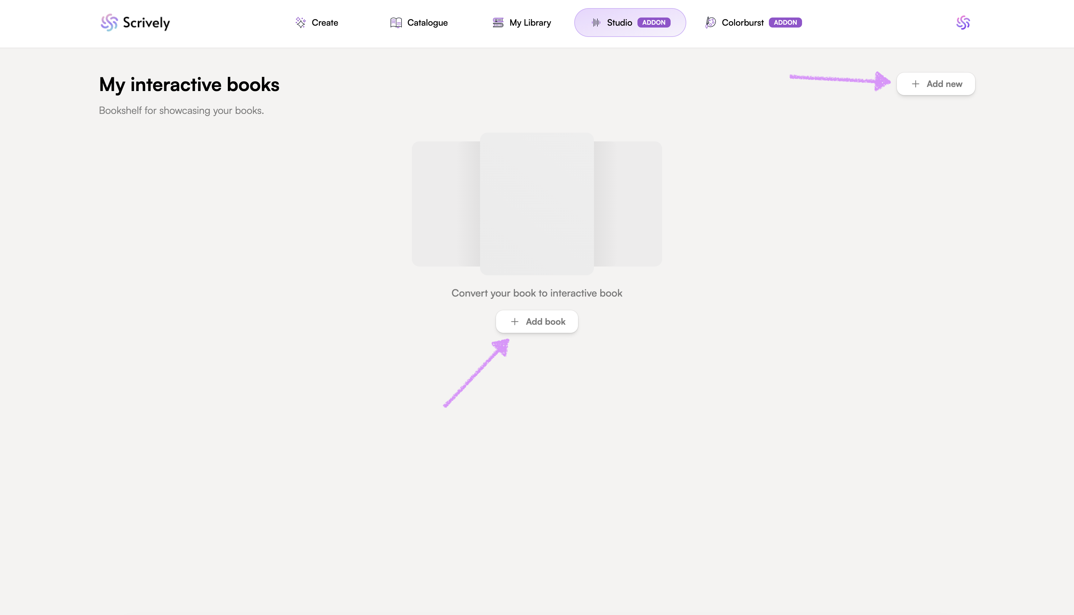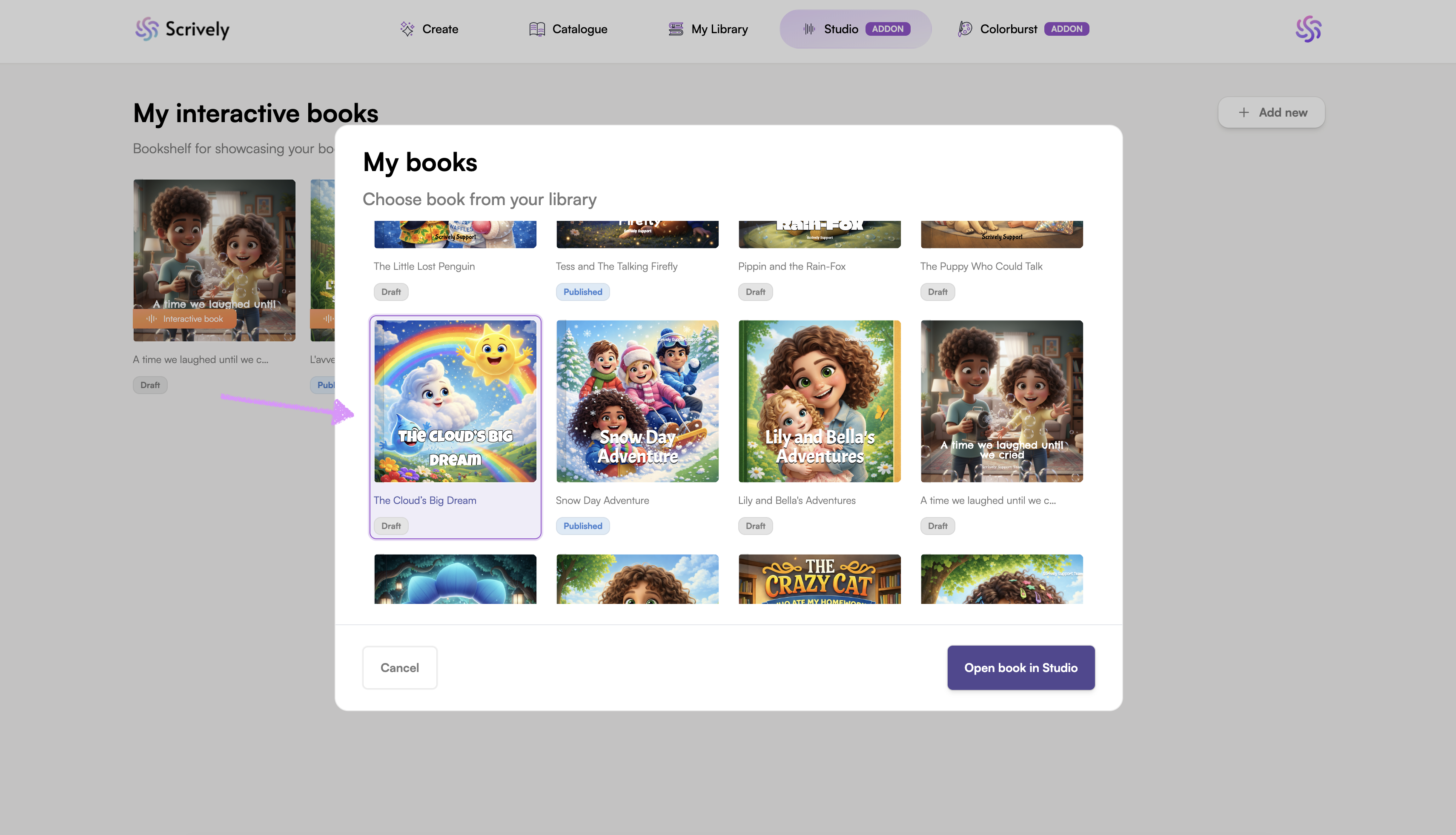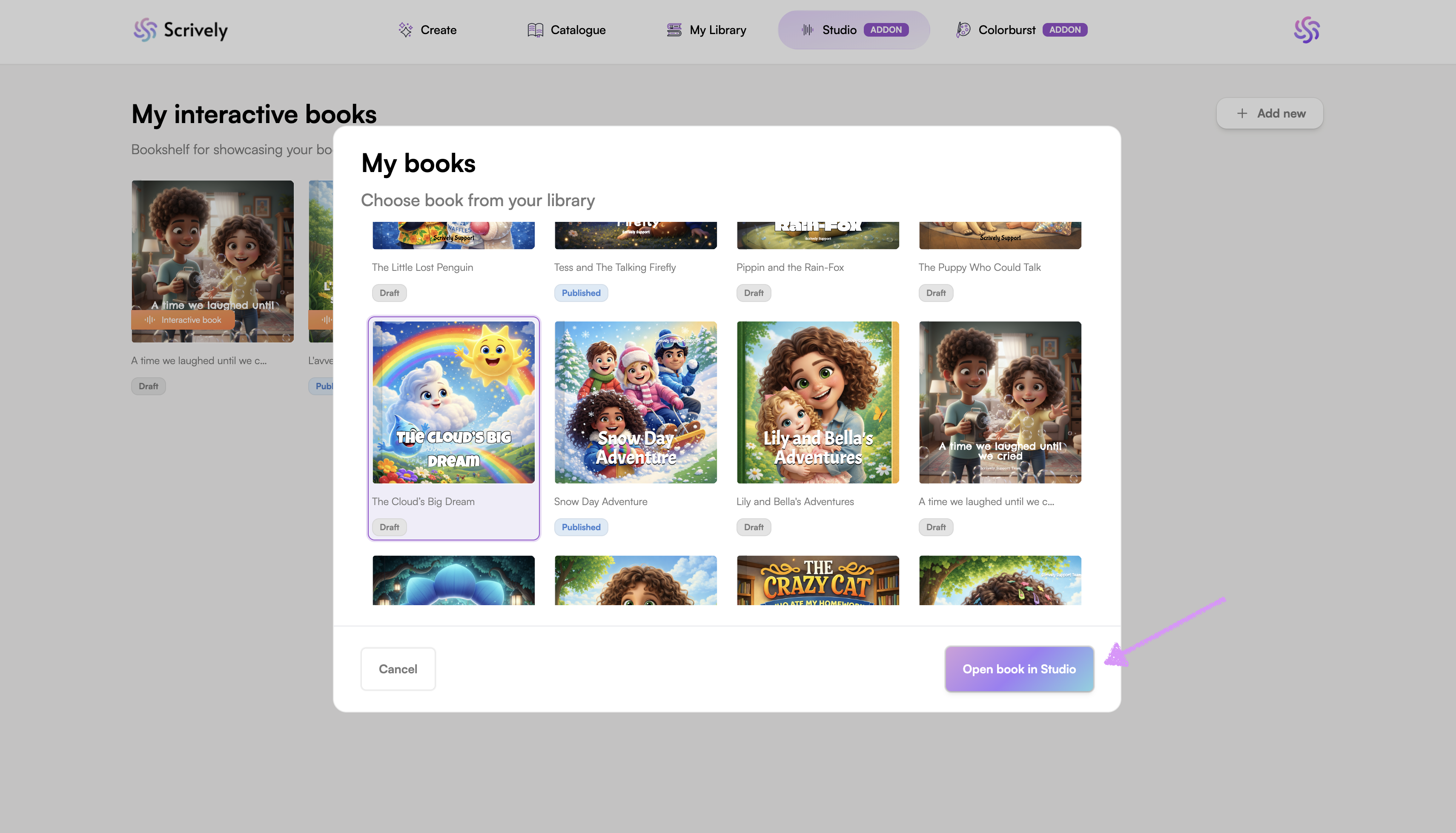 Select the book(s) from your library that you'd like to add to Scrively Studio.