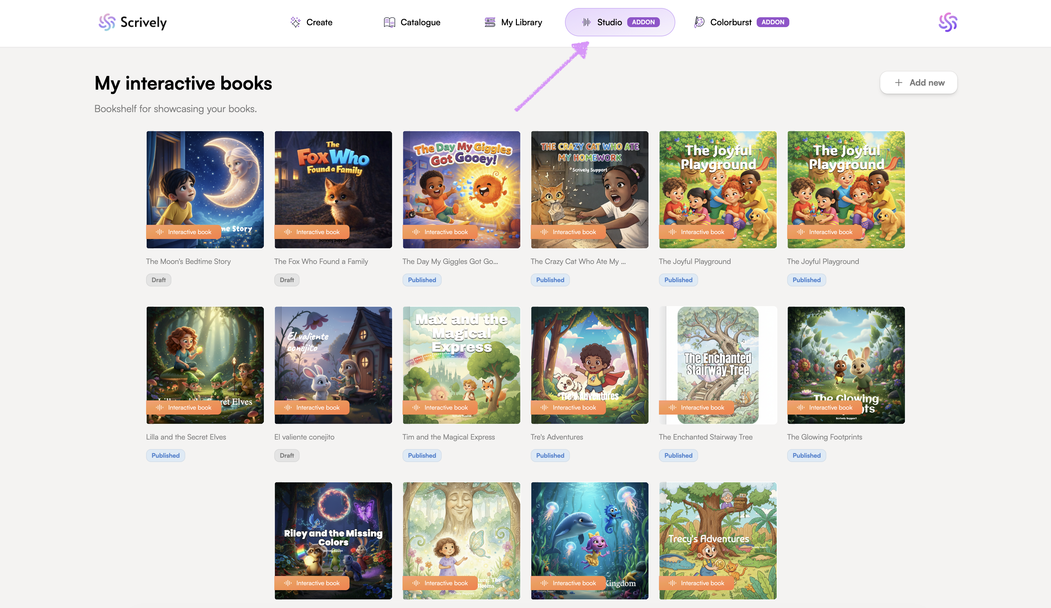 In the "Studio" tab, select the book you want to add voiceovers to.