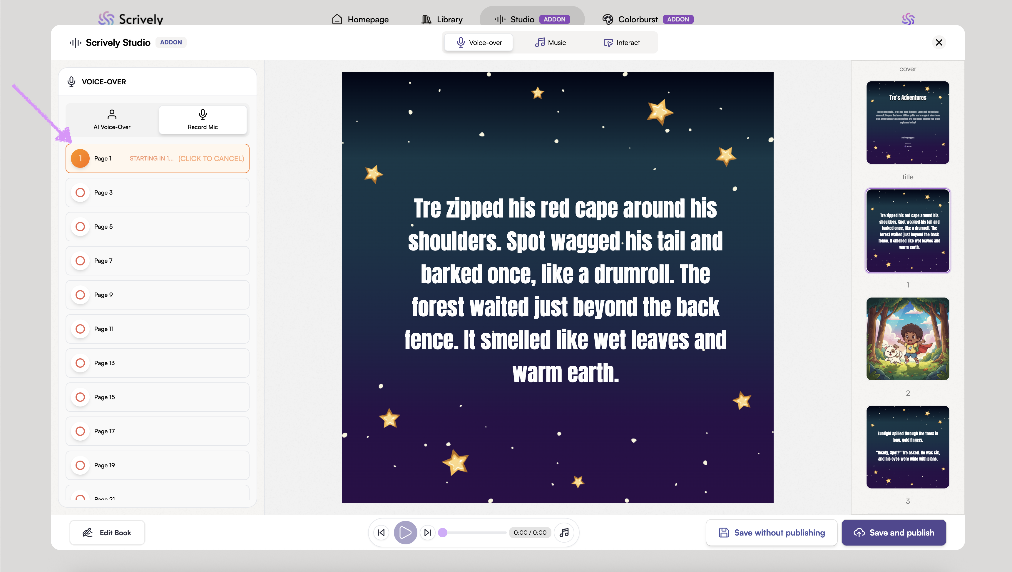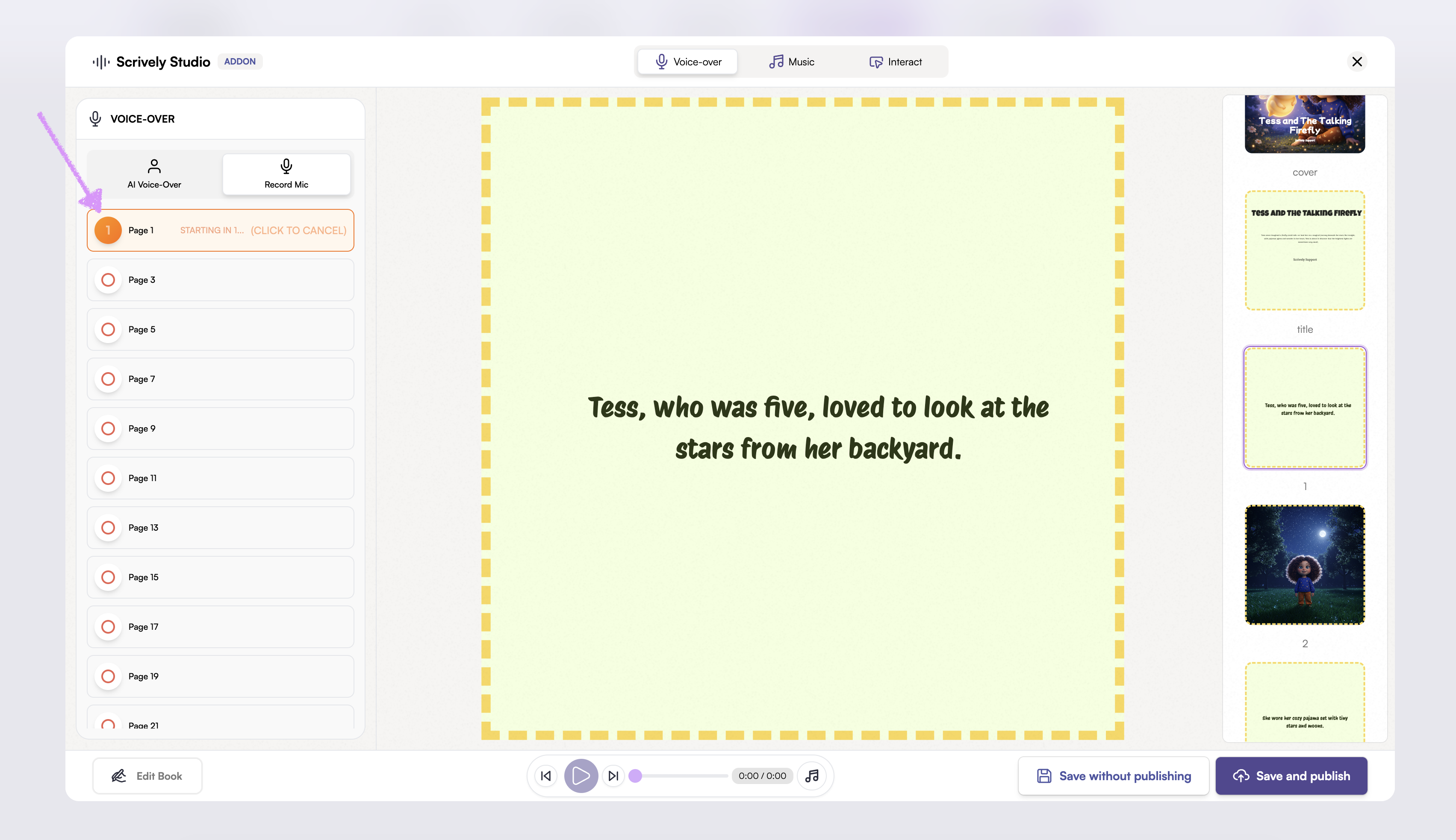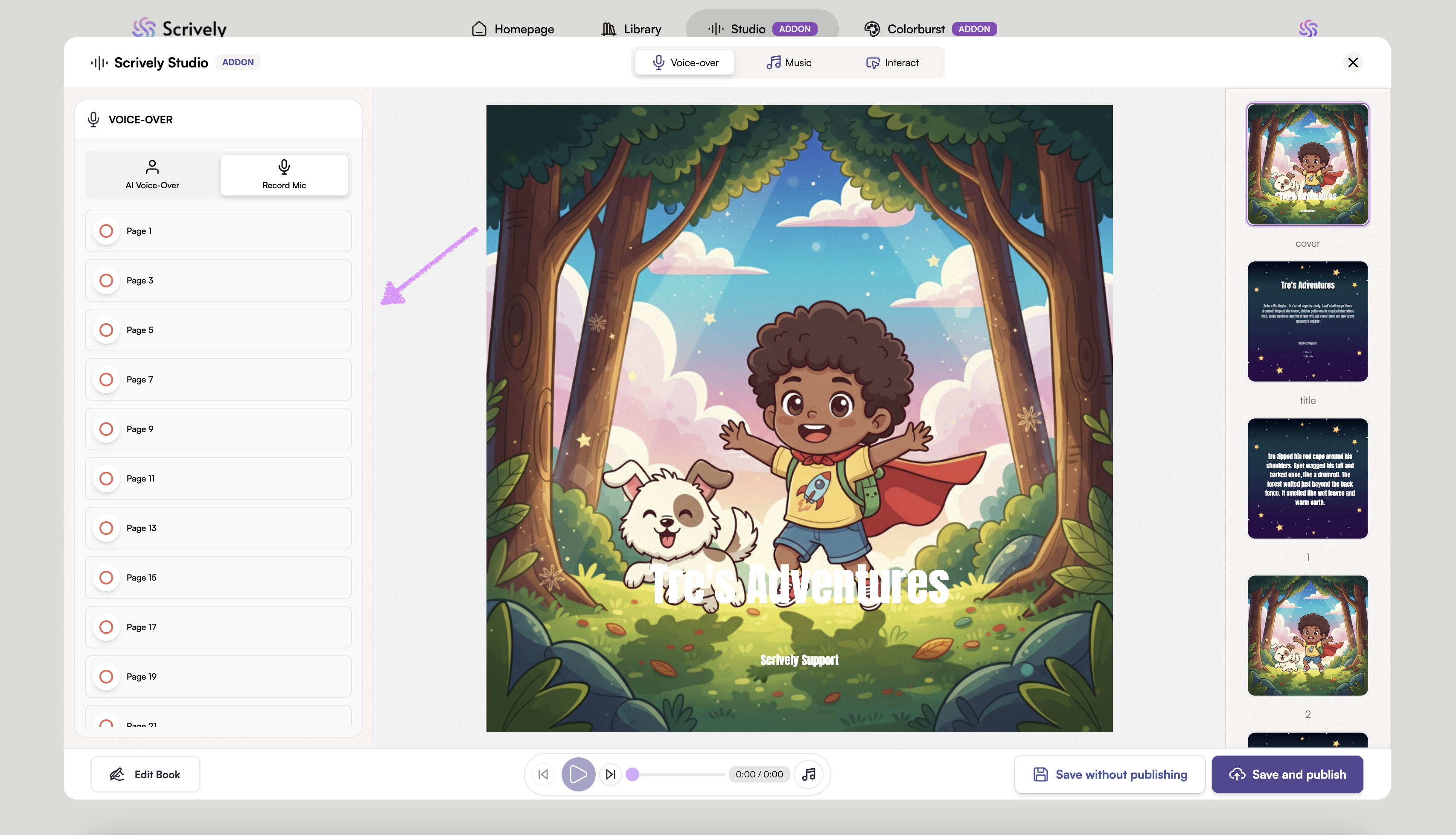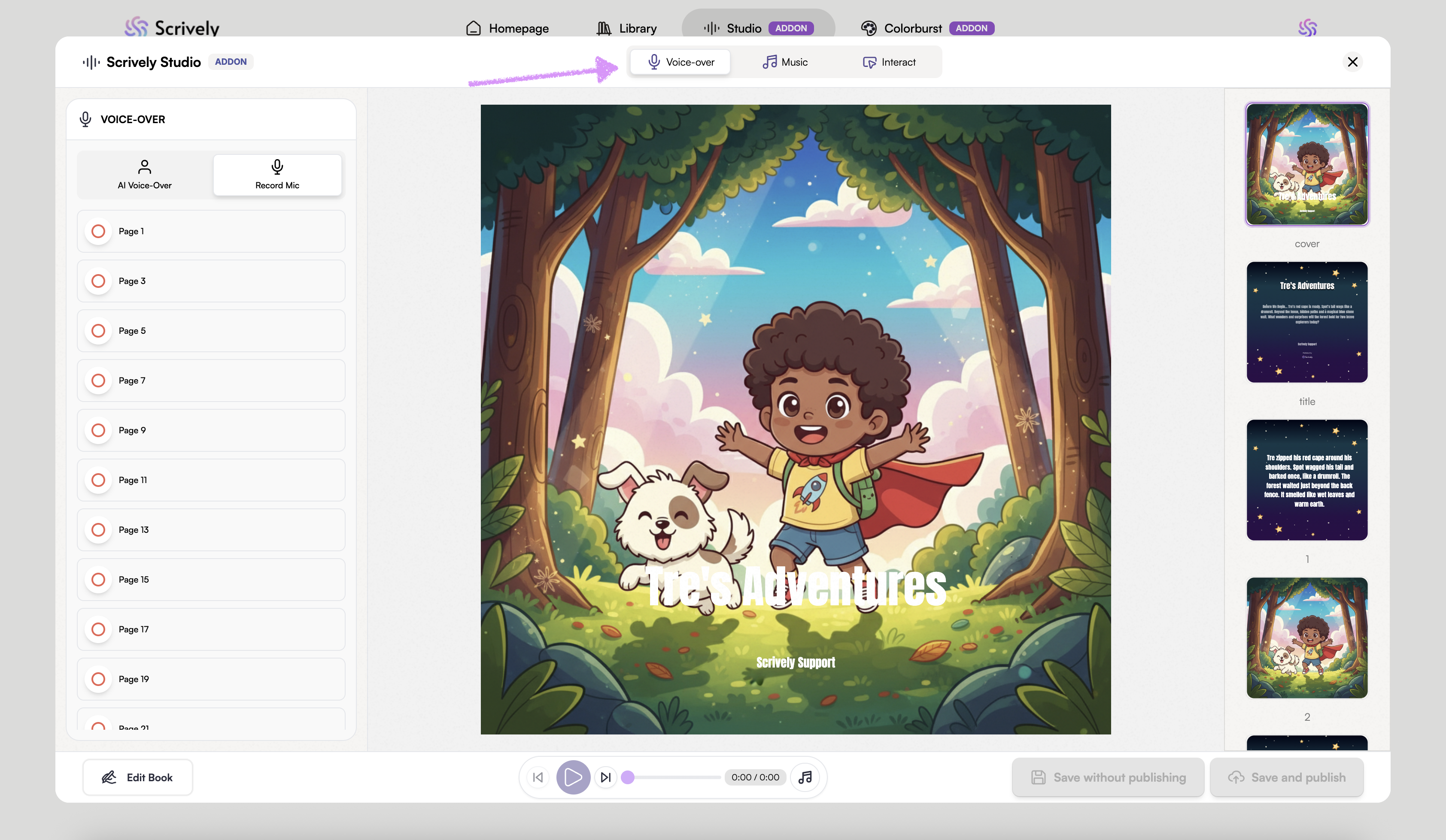 Scrively Studio will open directly to the "Voice-over" tab for the selected book