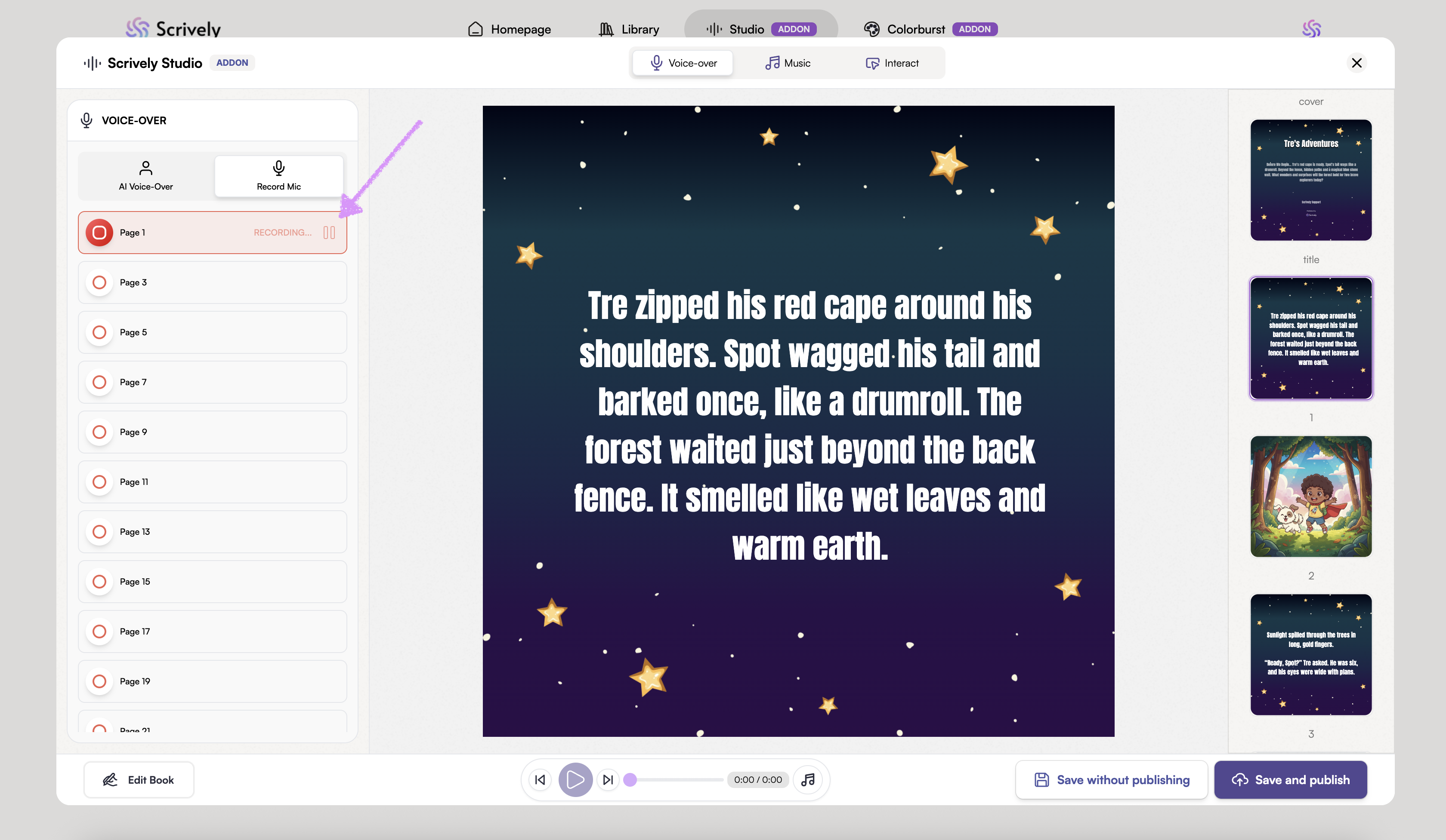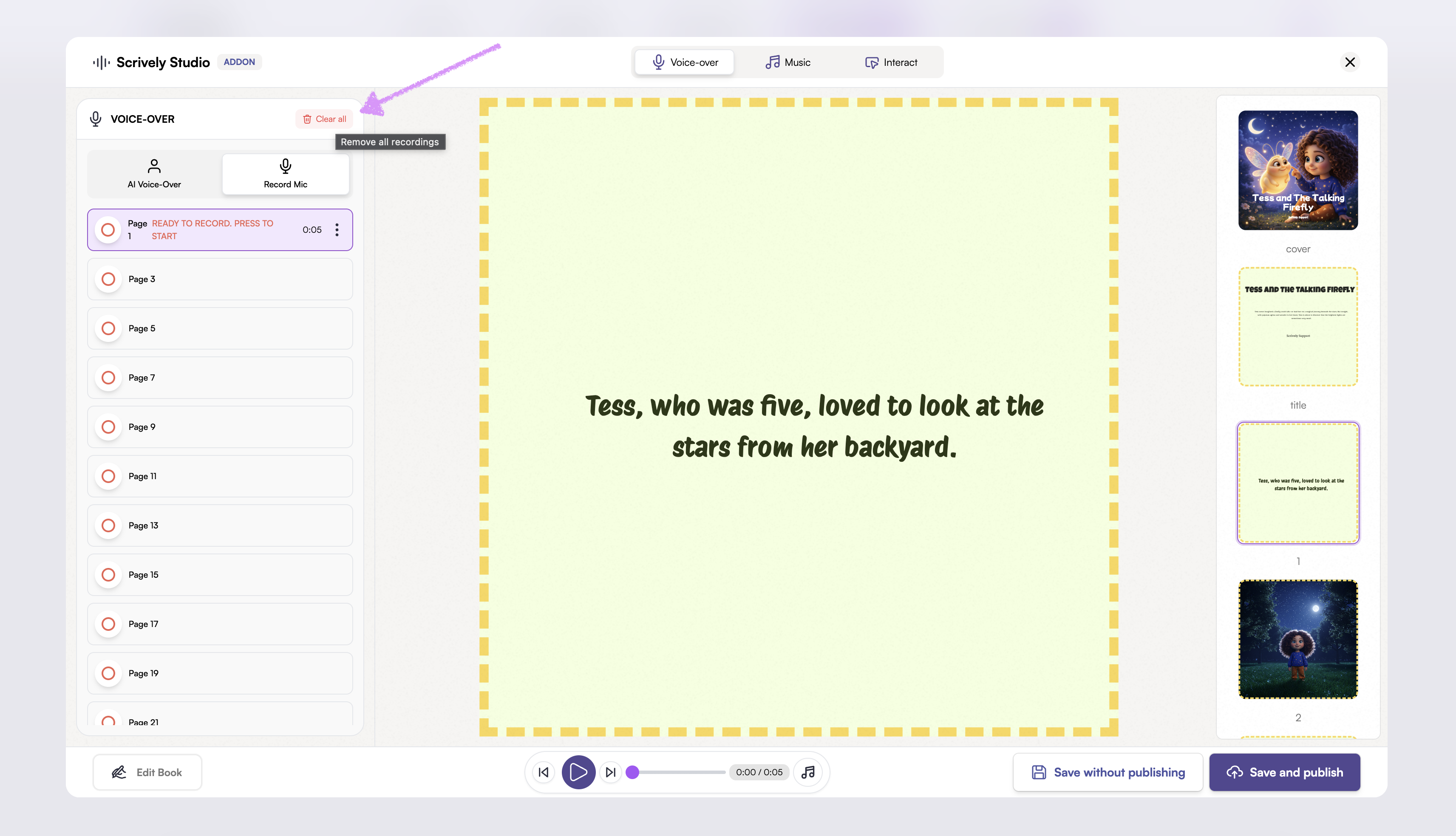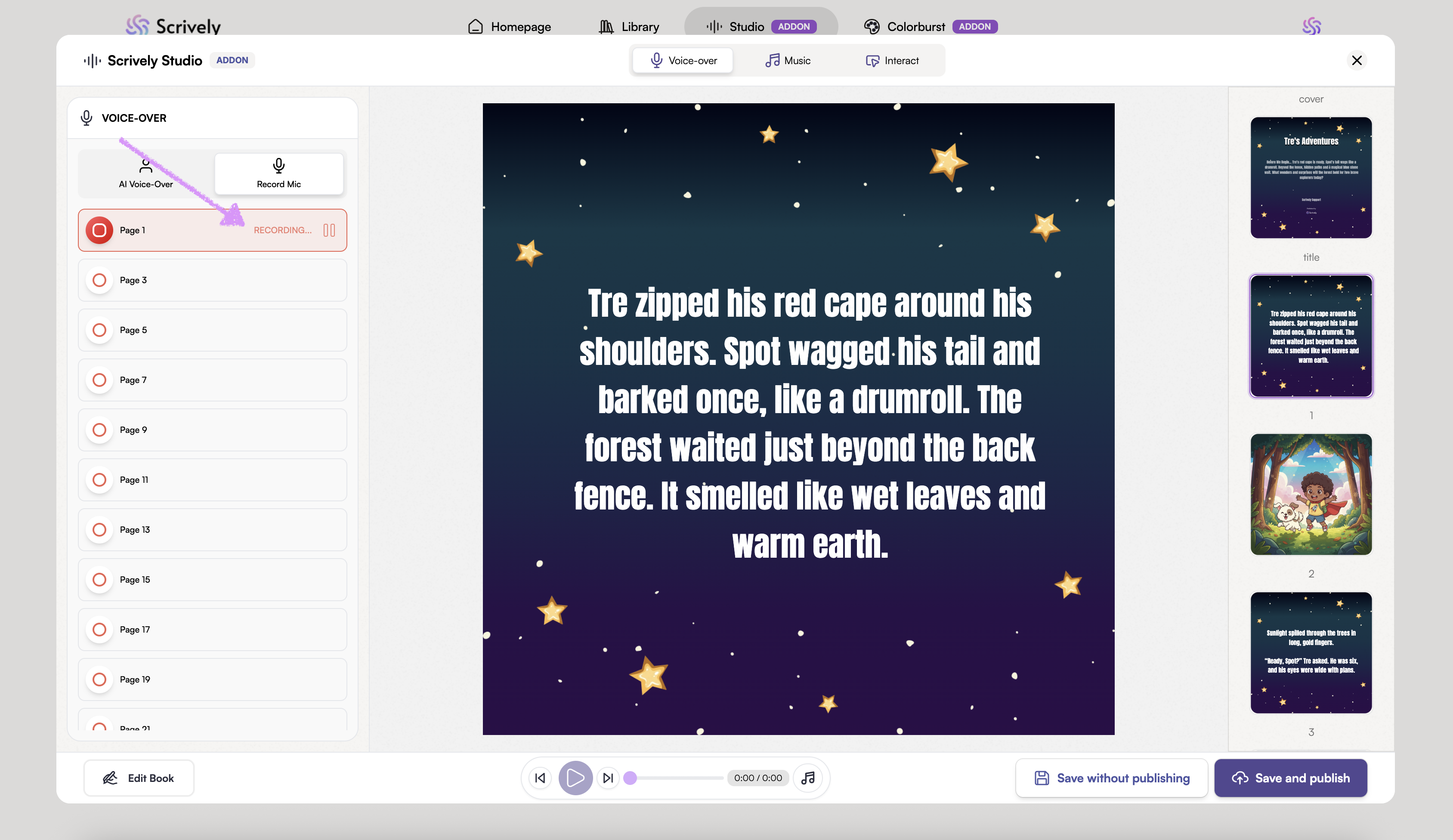 Scrively Studio will open directly to the "Voice-over" tab for the selected book