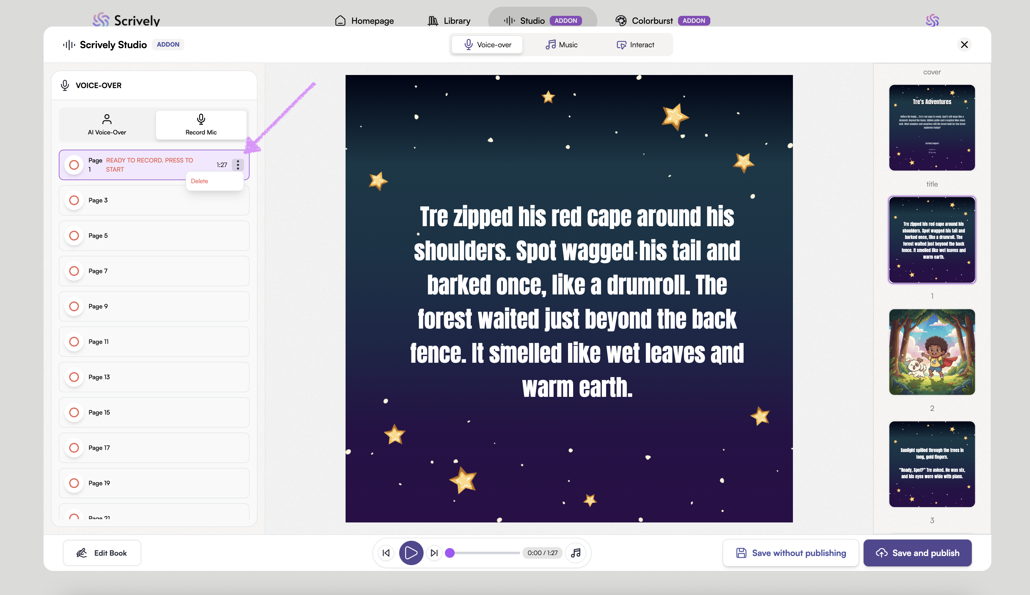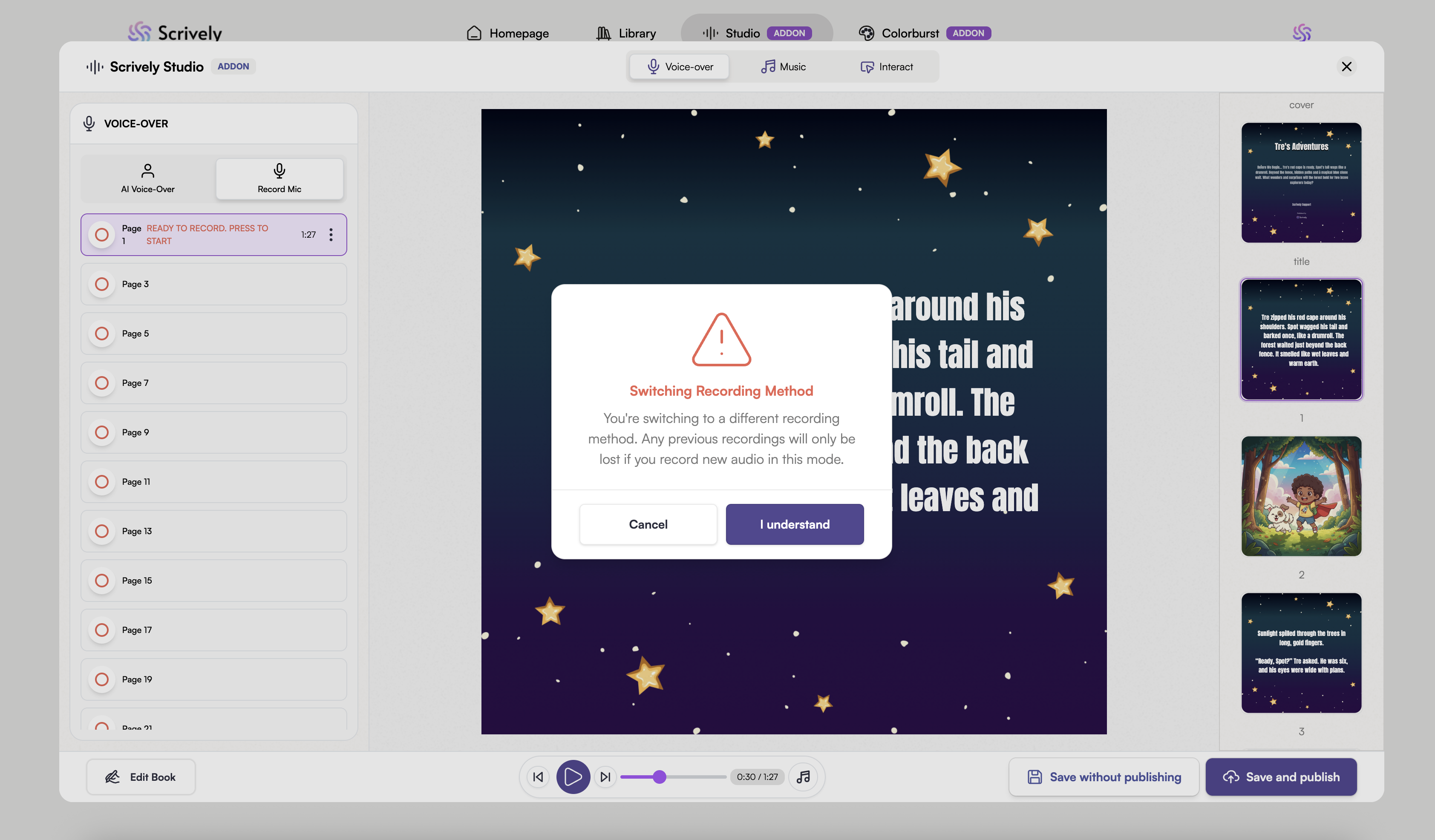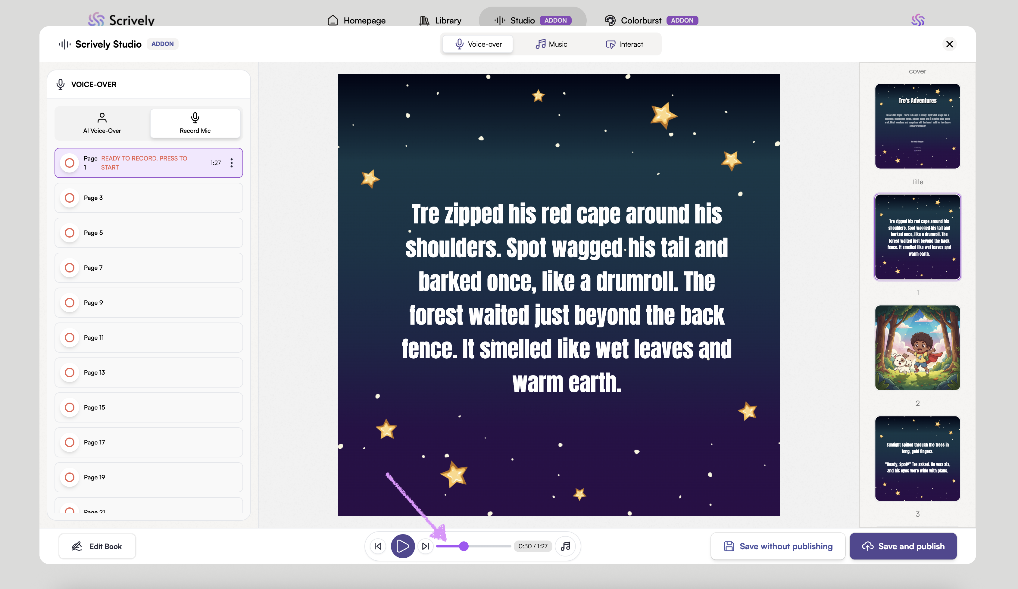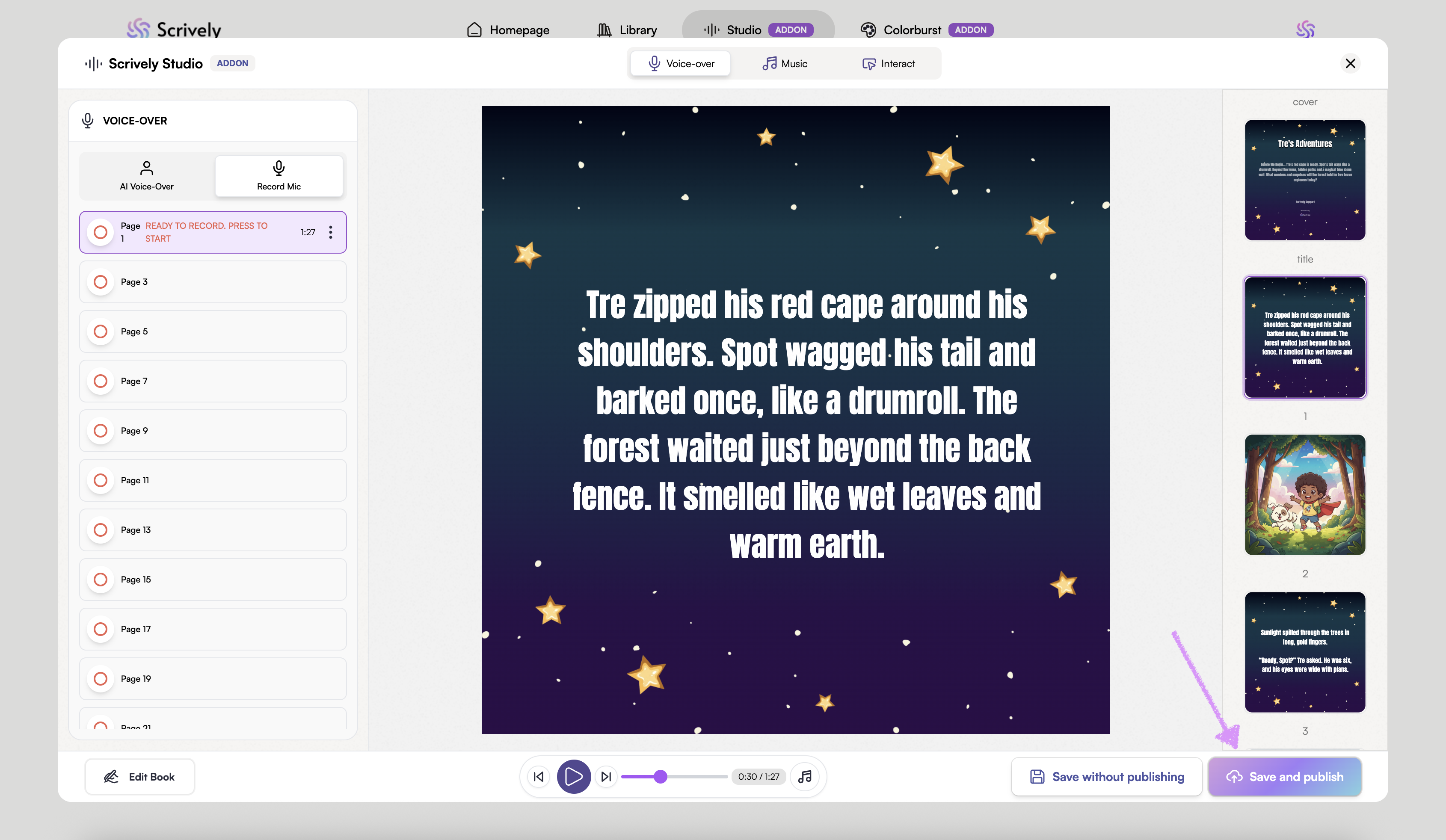 Scrively Studio will open directly to the "Voice-over" tab for the selected book