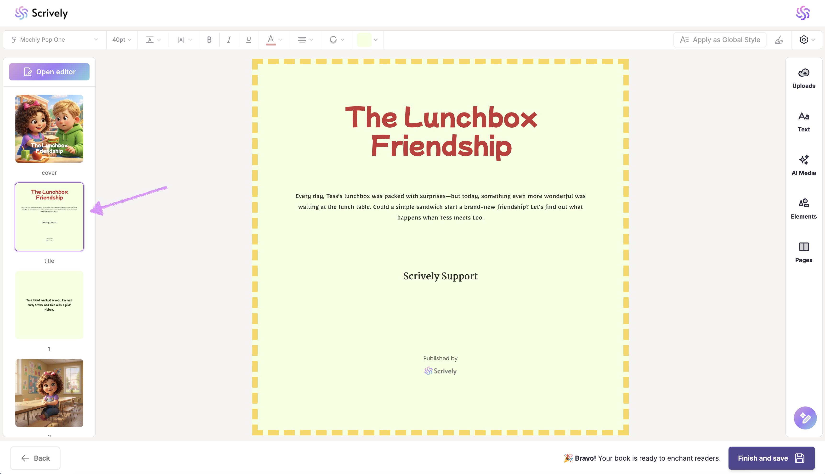 By default, Scrively automatically generates a title page for every book.
