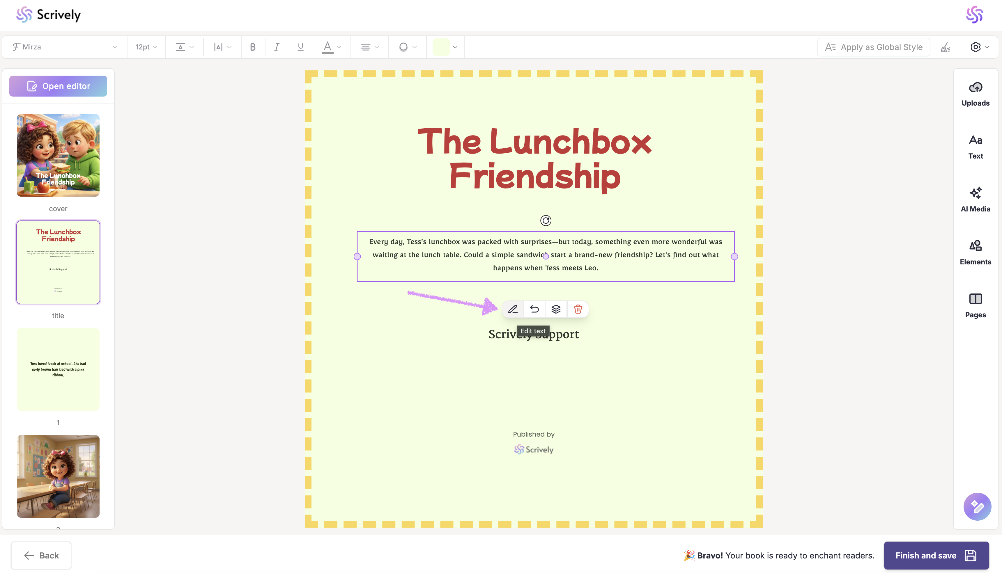 On the title page, you can edit the book's title, add a teaser (or use that space however you like), and update the author's name. For a full walkthrough, see our guide here on editing your book’s title and author.