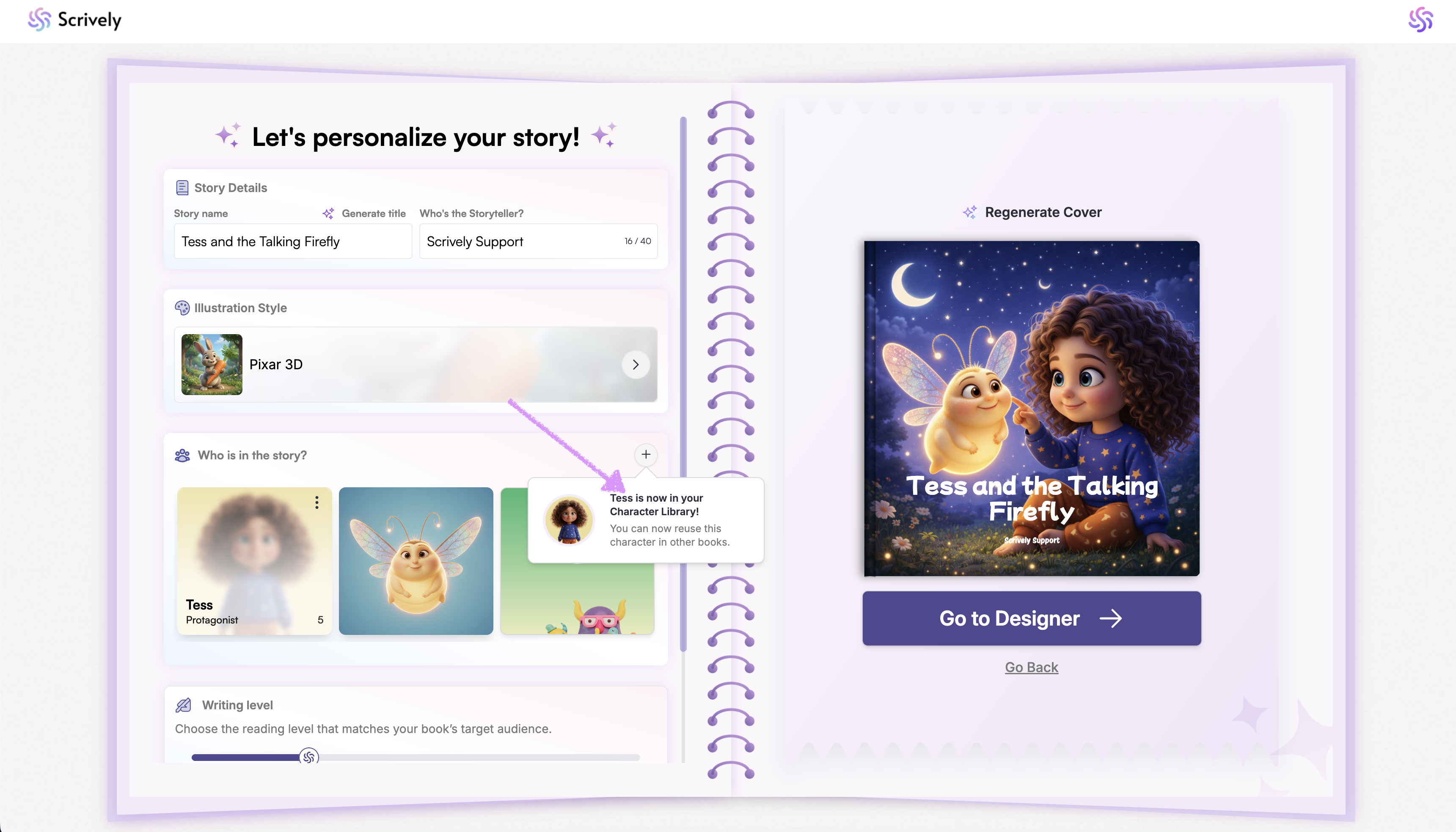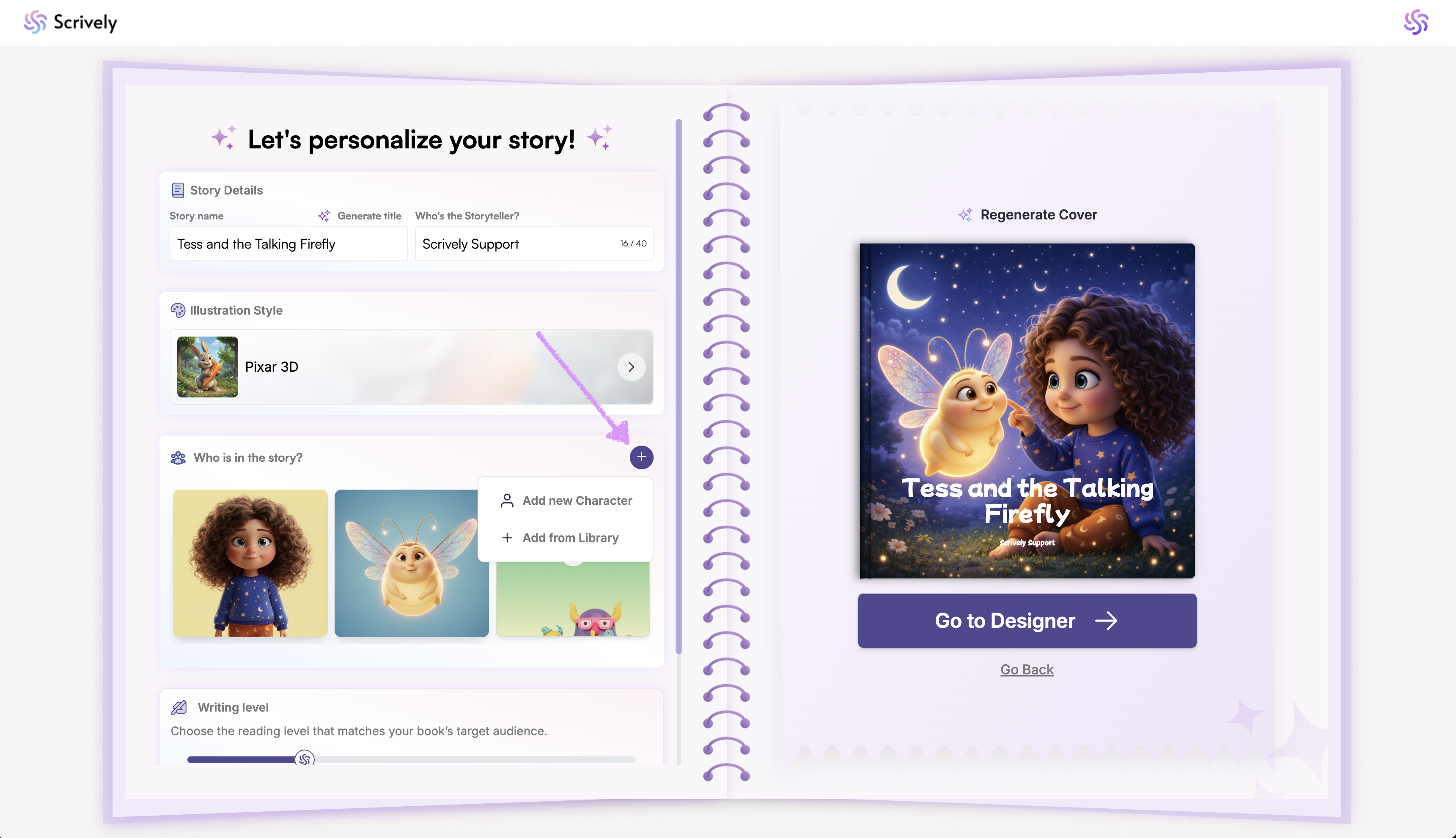 The character library lets you browse and use characters seamlessly when creating your books. With a centralized library, you can quickly find characters to use across your books, saving time and helping your stories come to life with ease.