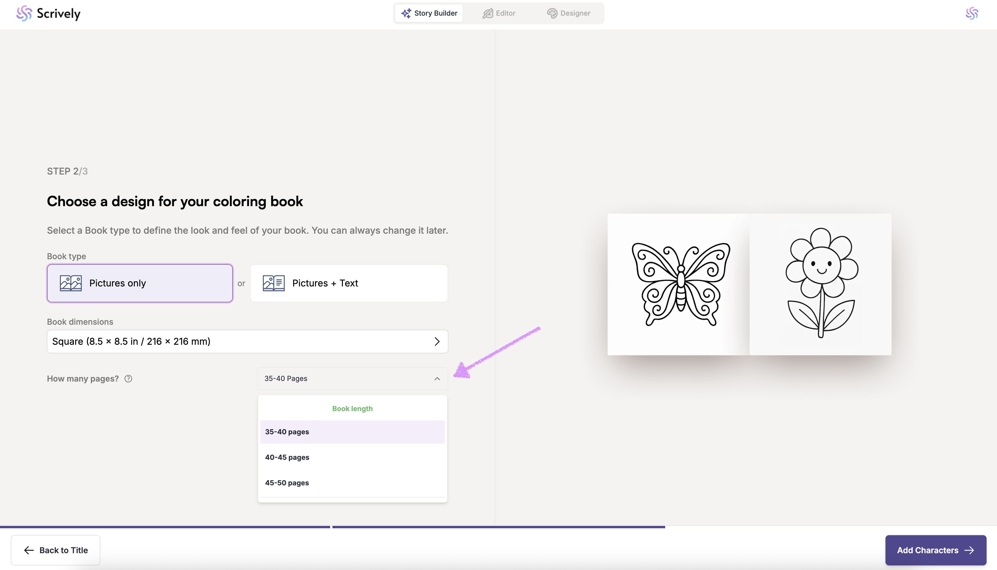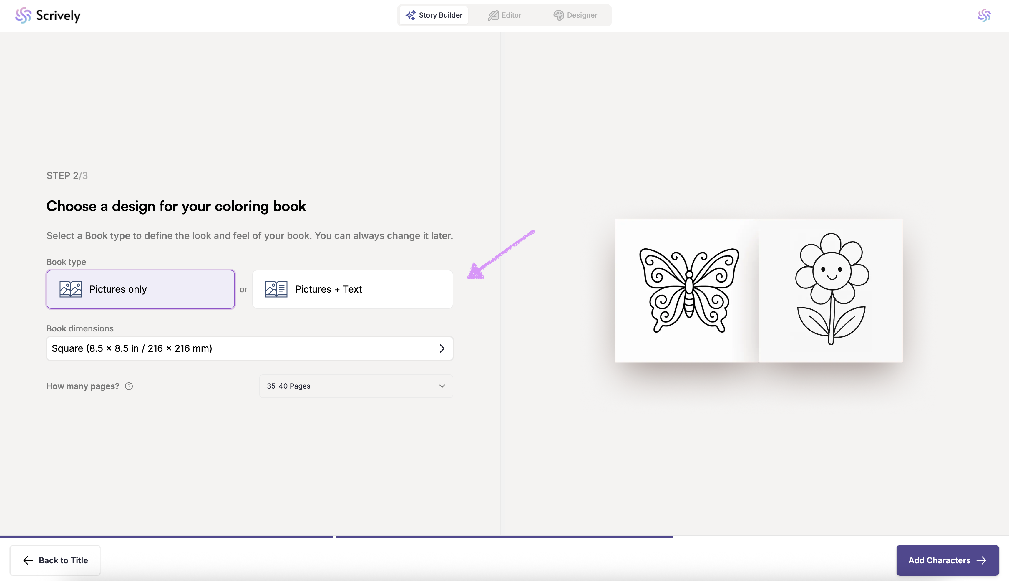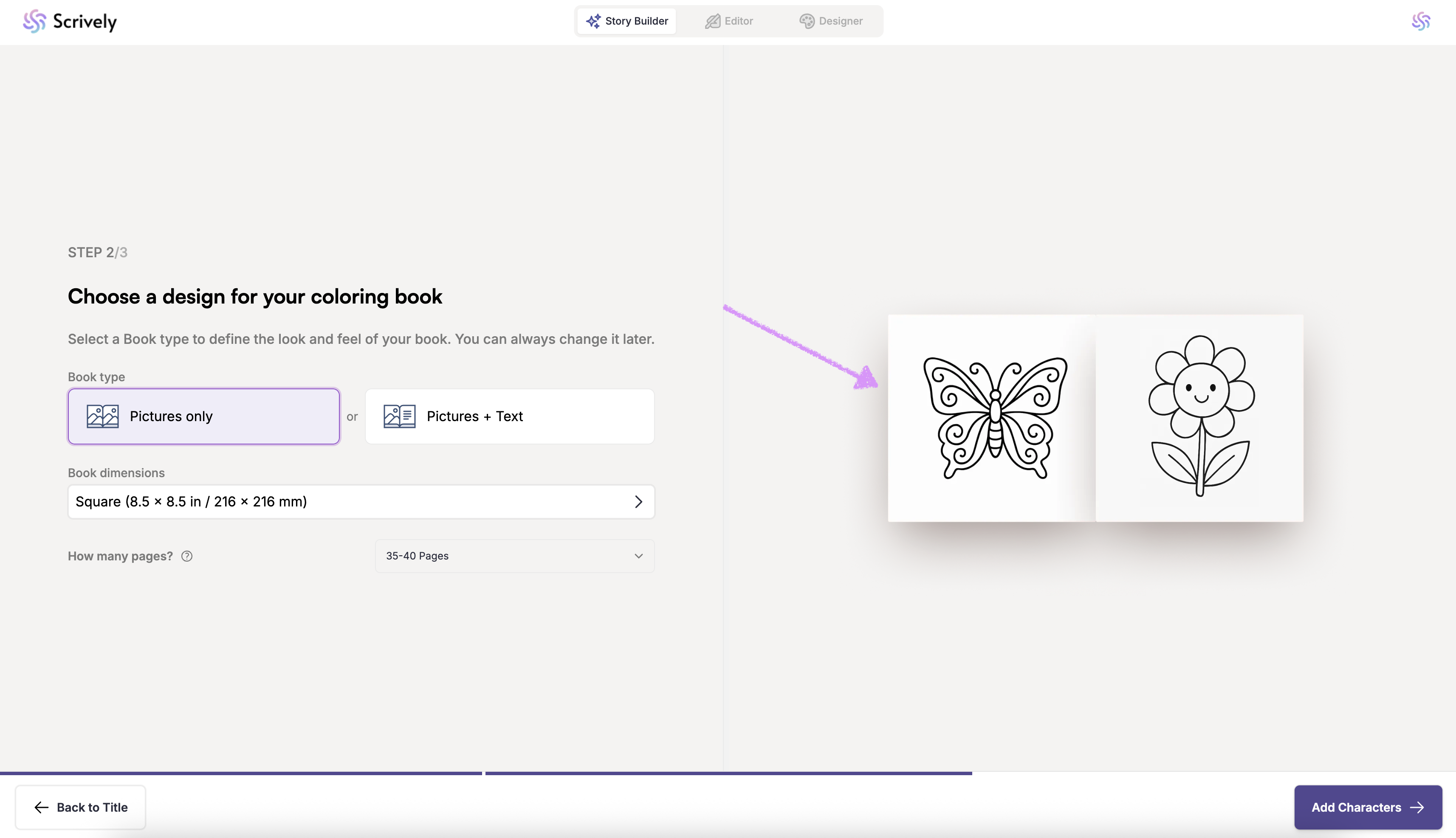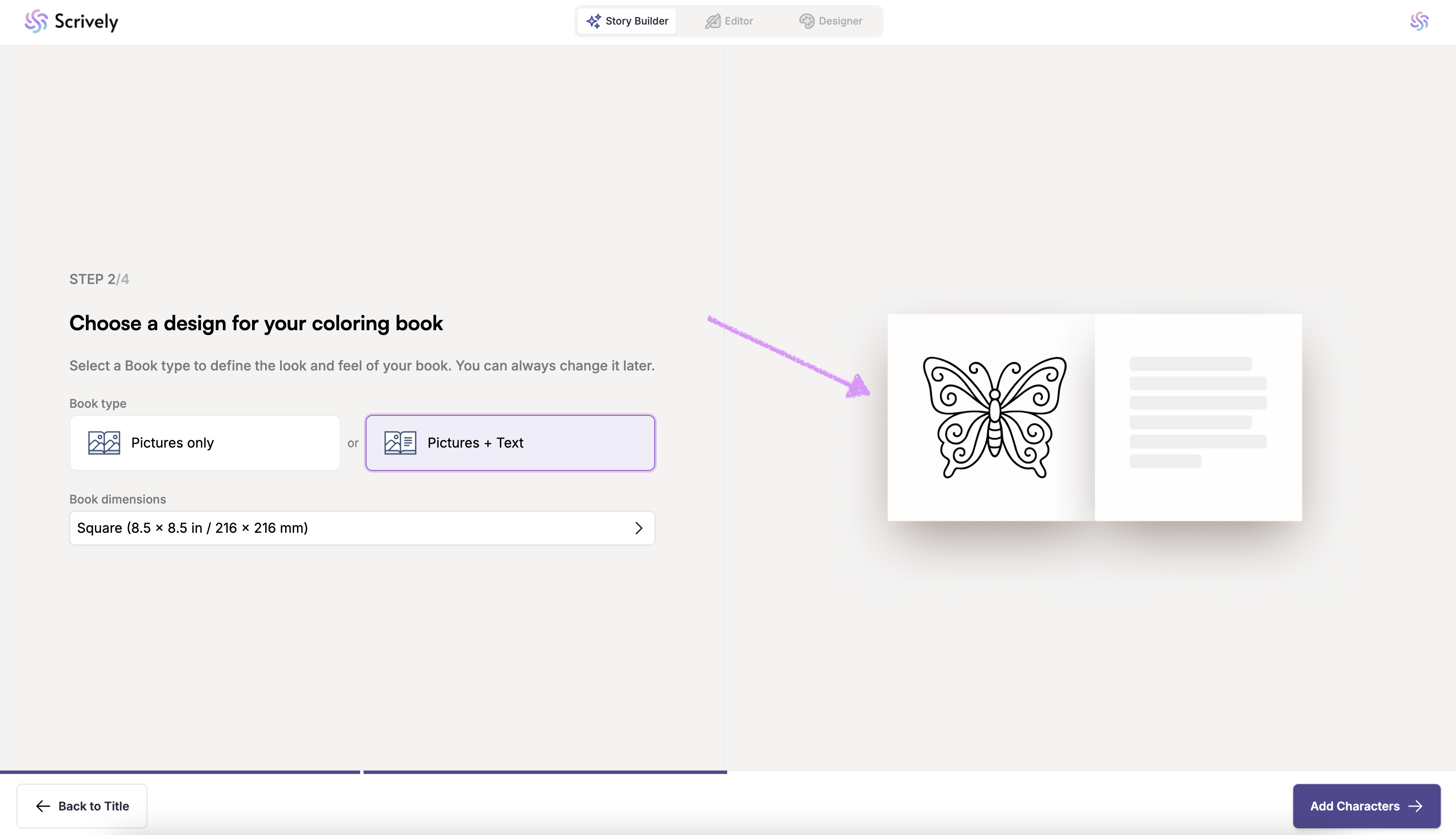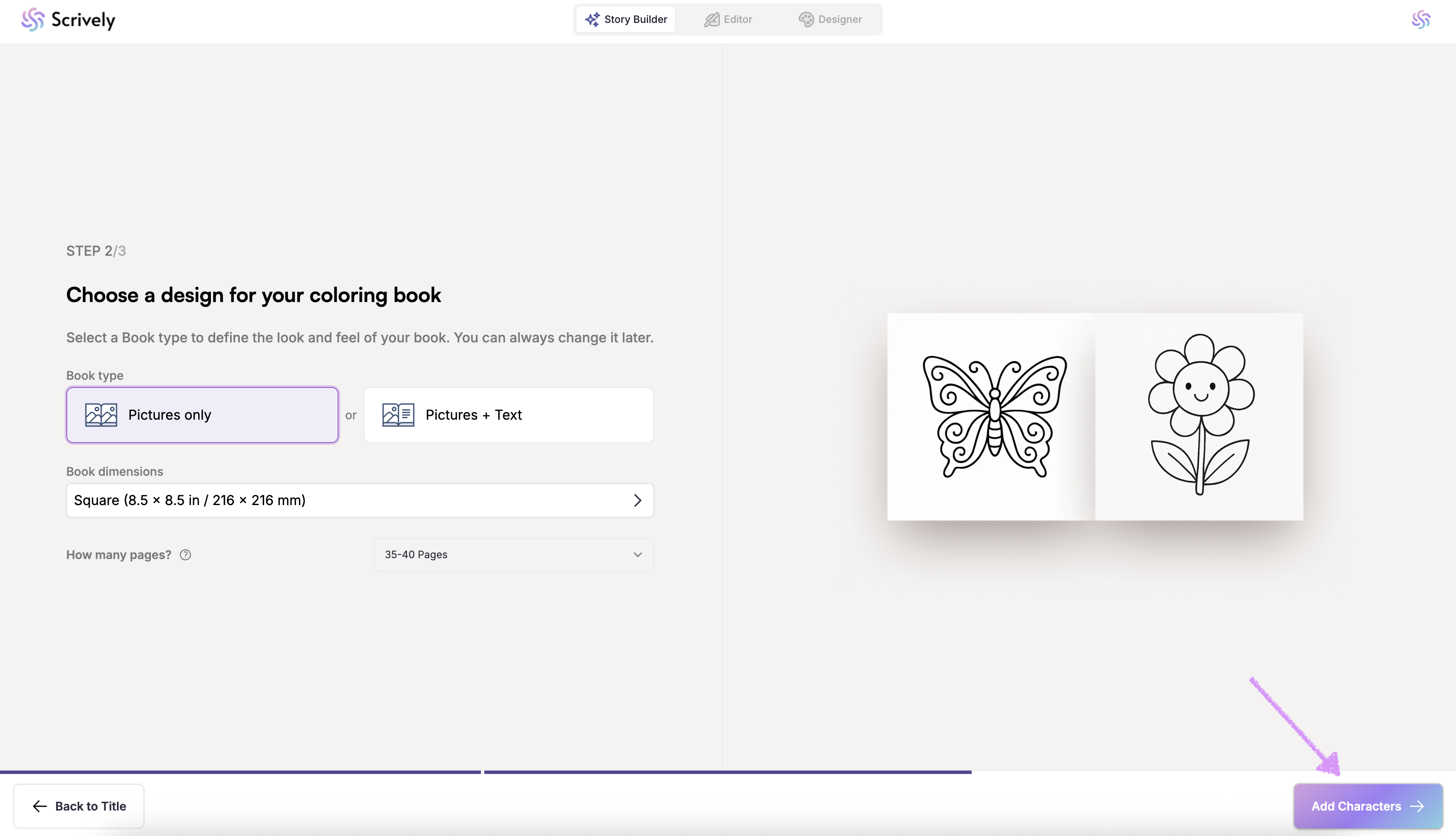 Next, "Add Characters" to your coloring book.