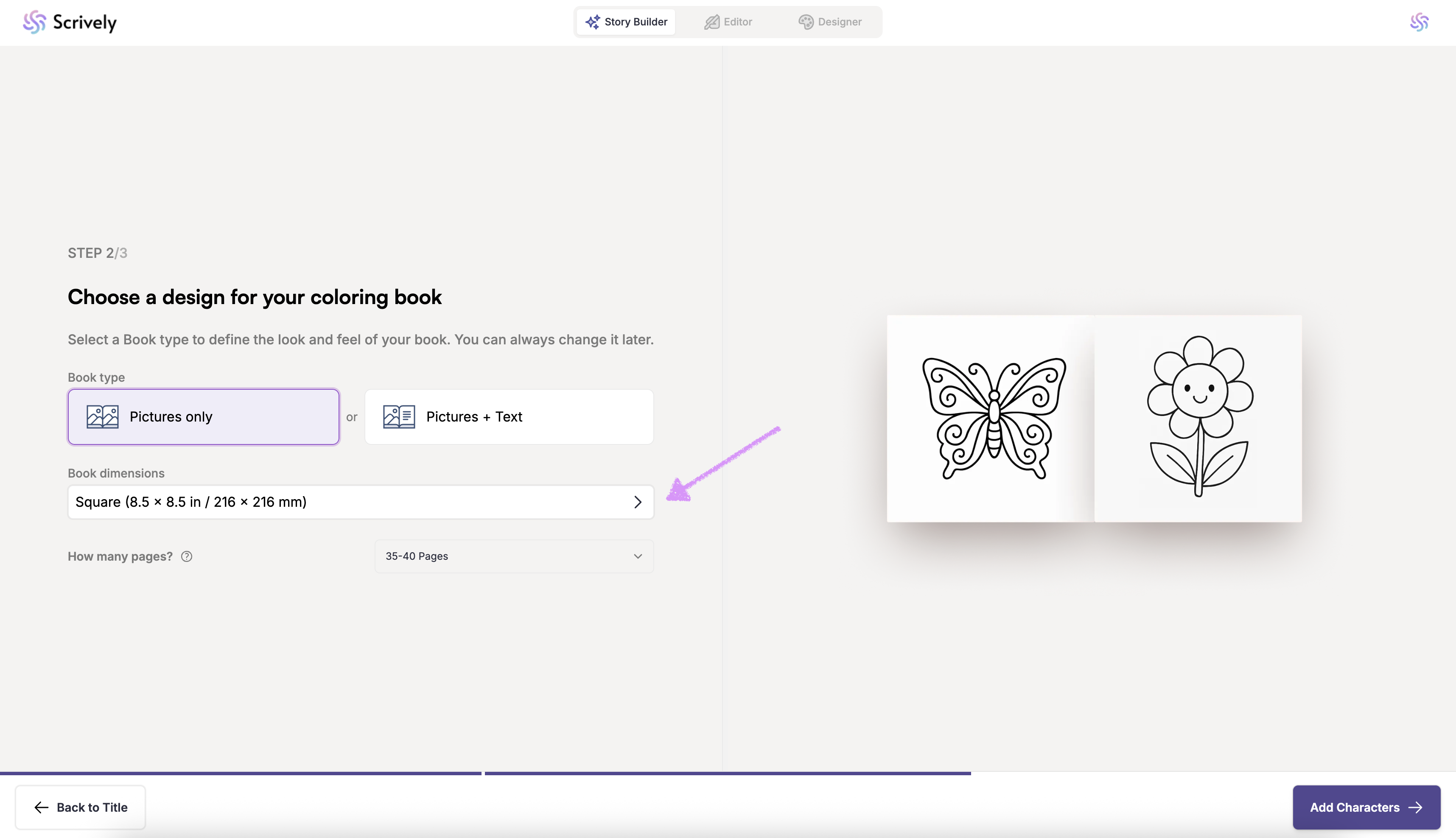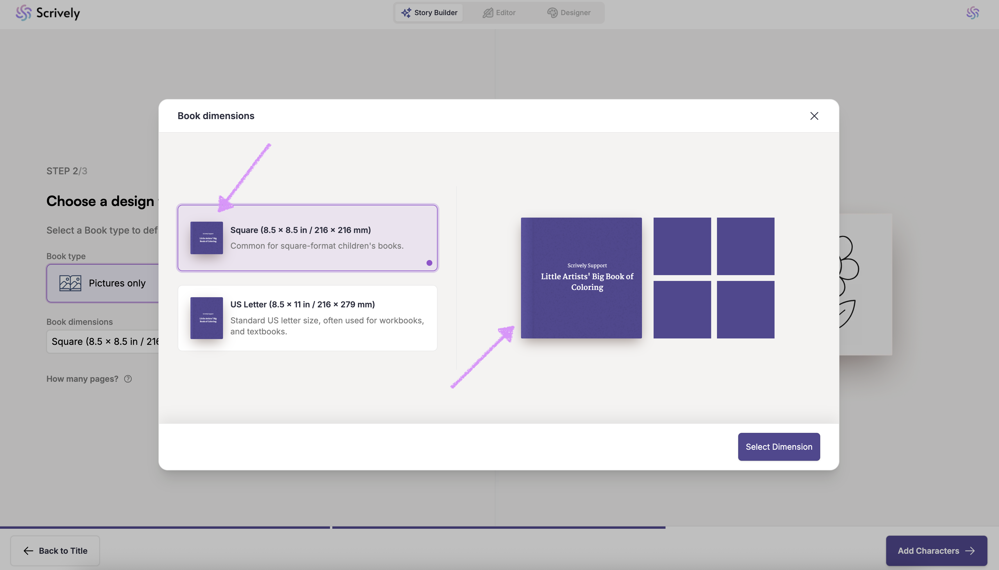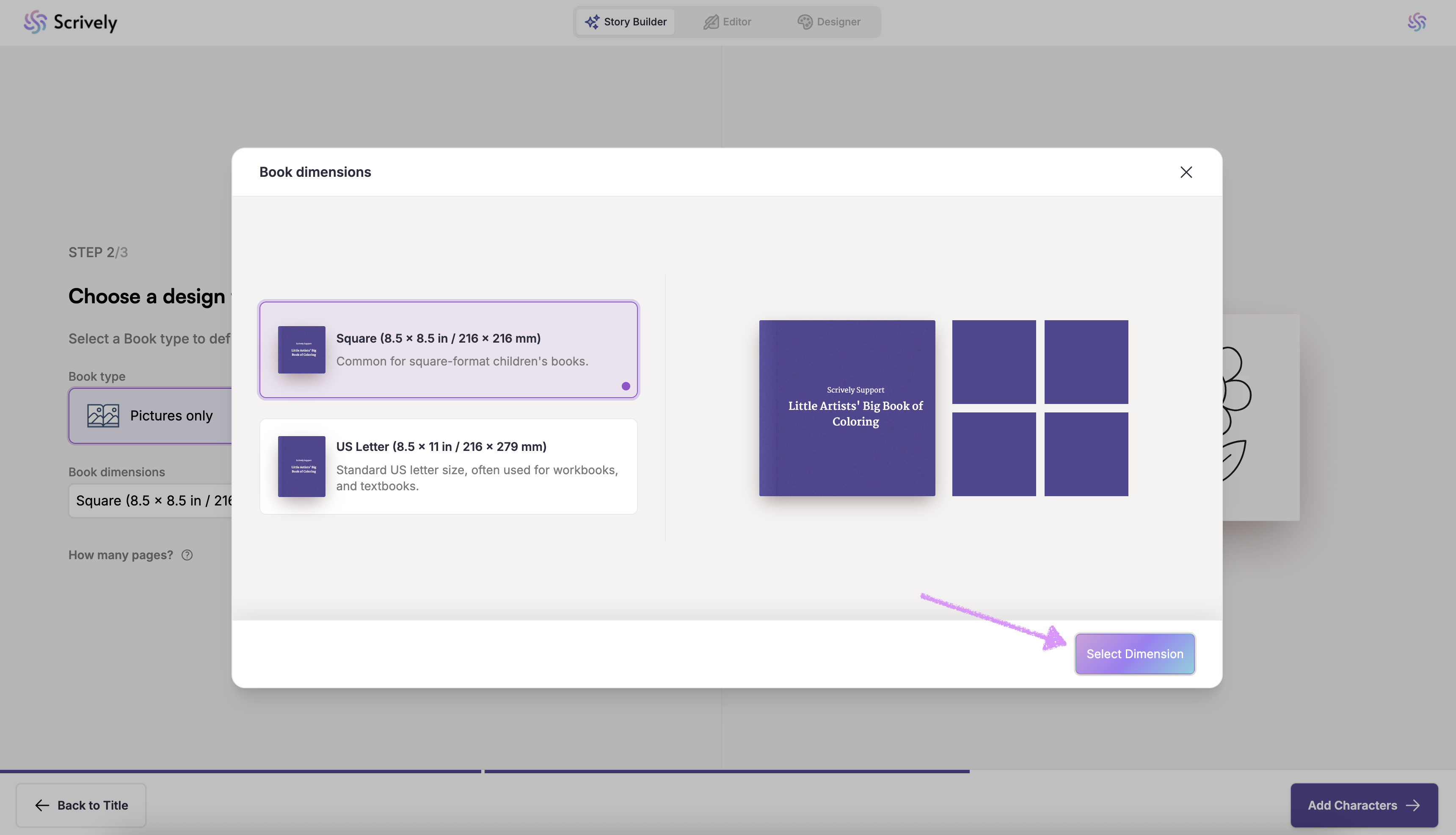 Next, choose your coloring book's dimension.