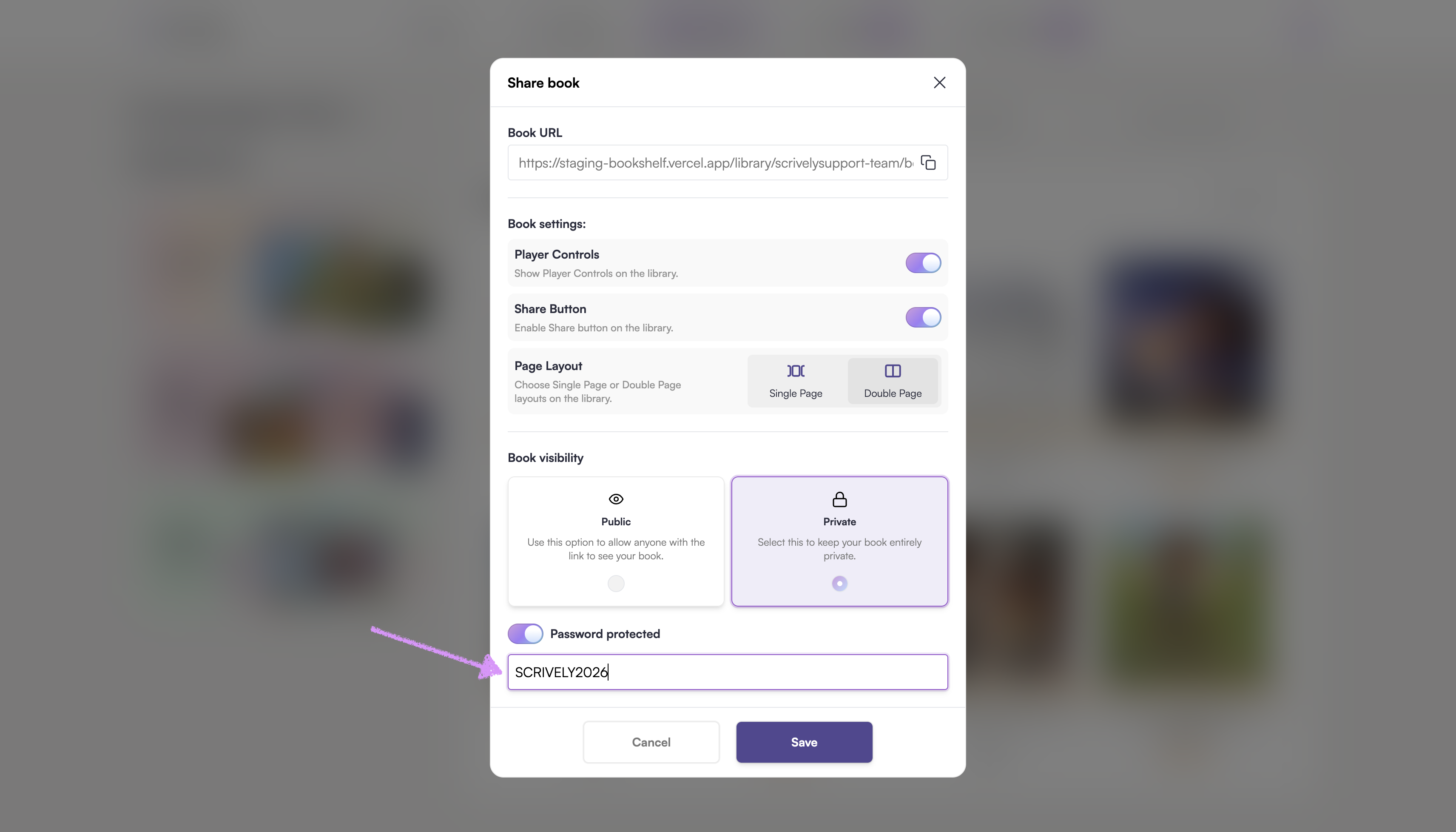 Readers will need to enter the password to view the shared book.
