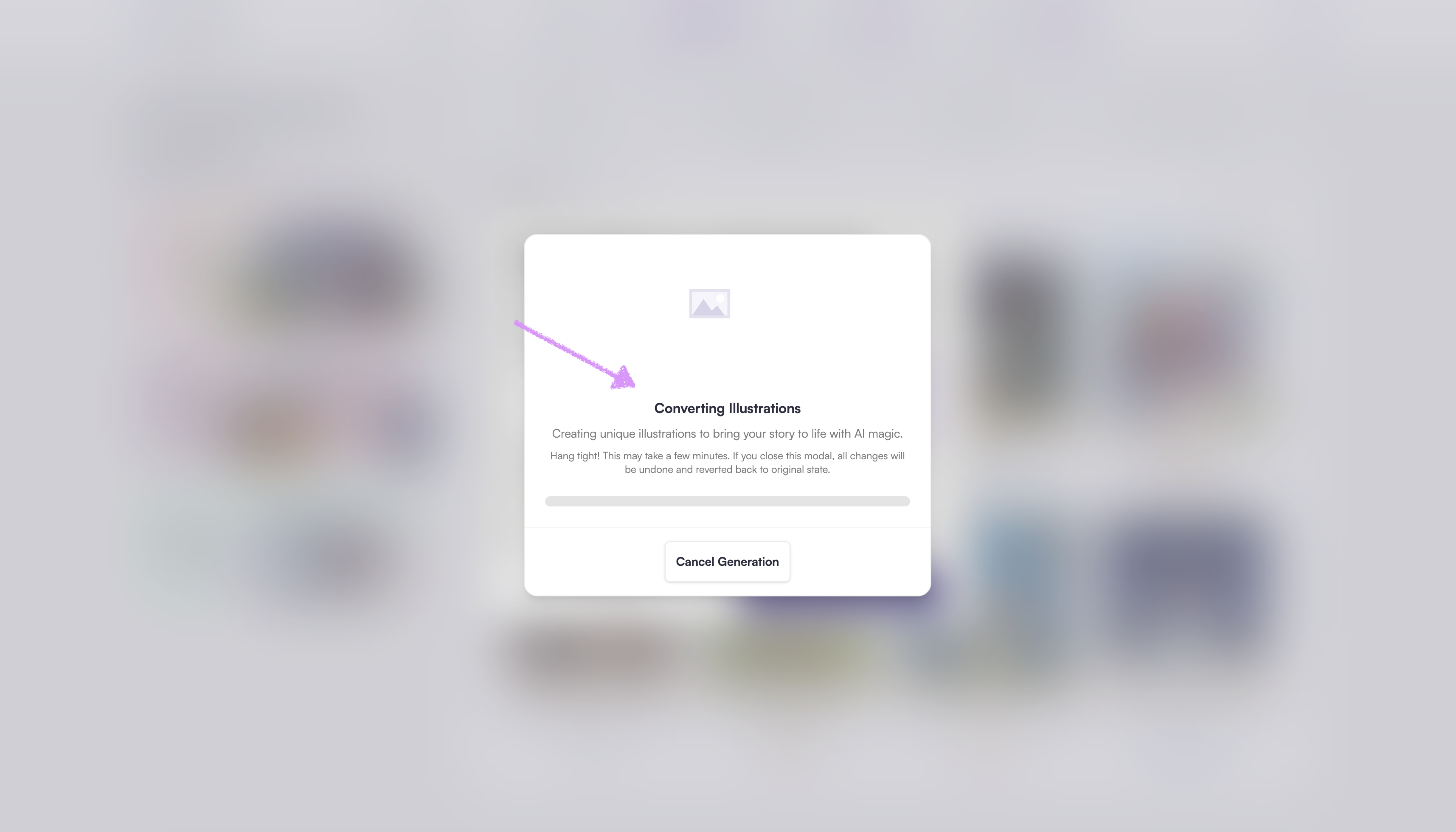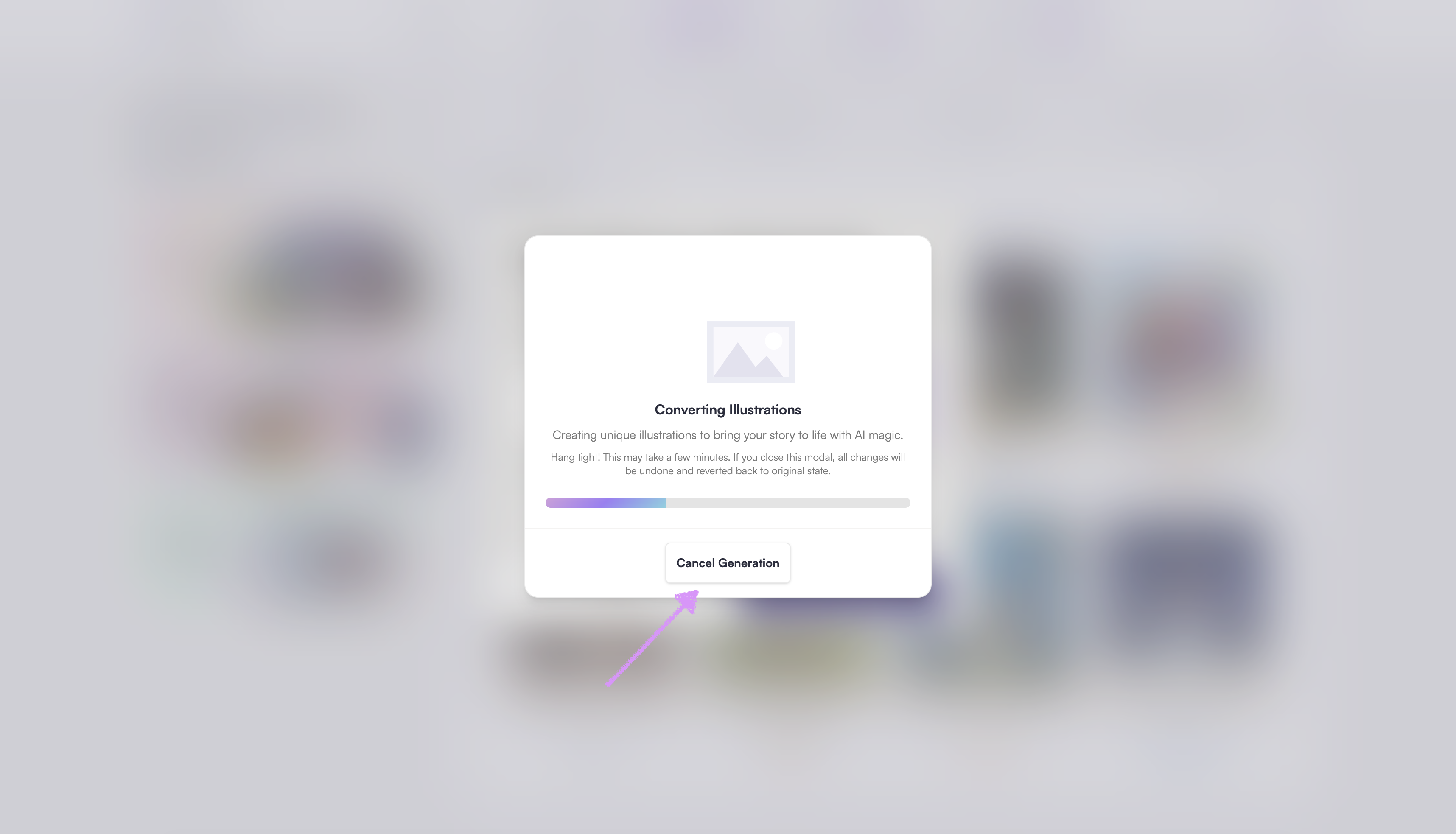 If you no longer want to convert the book click on "Cancel Generation."
